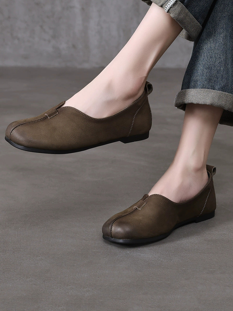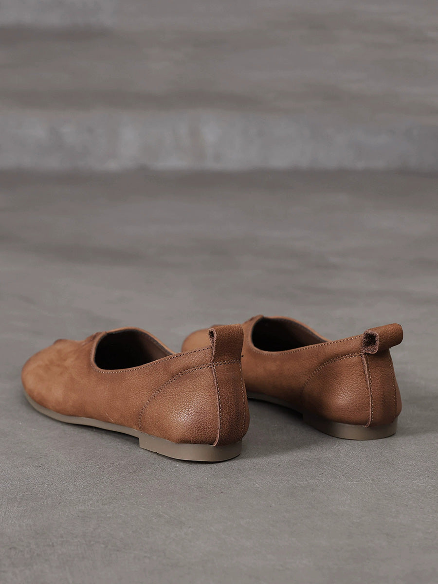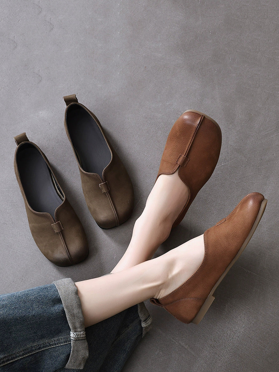 Women Retro Genuine Leather Spliced Soft Shoes