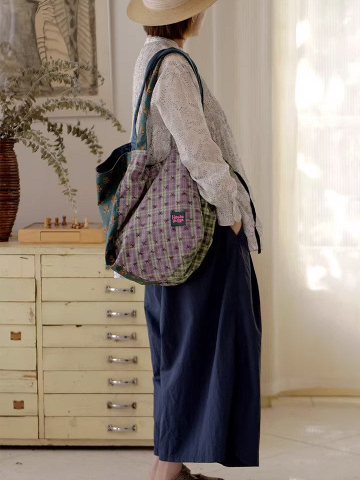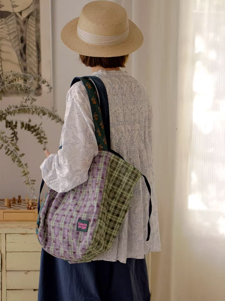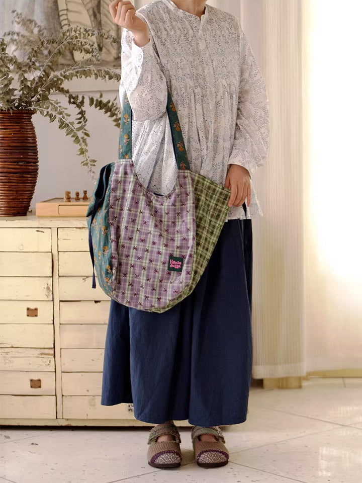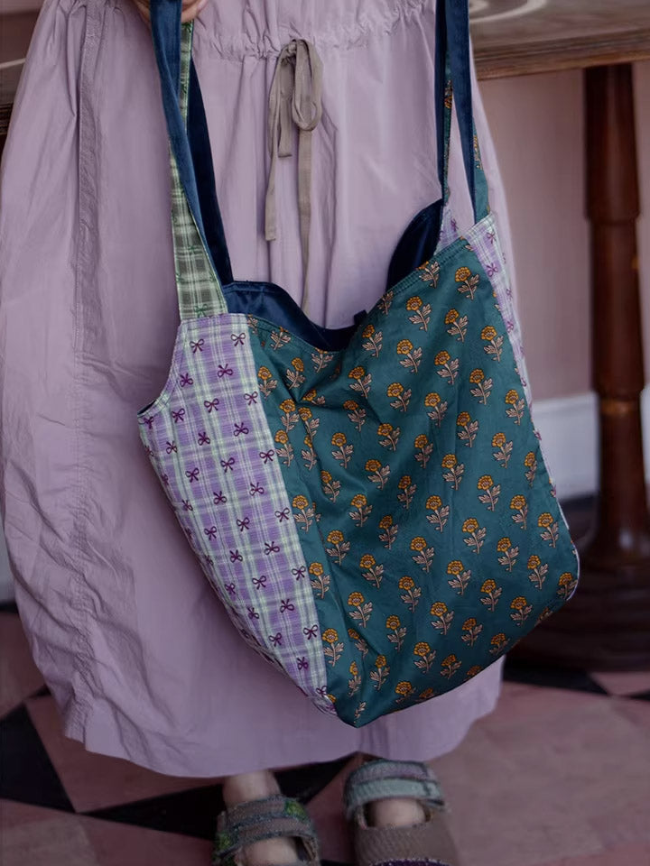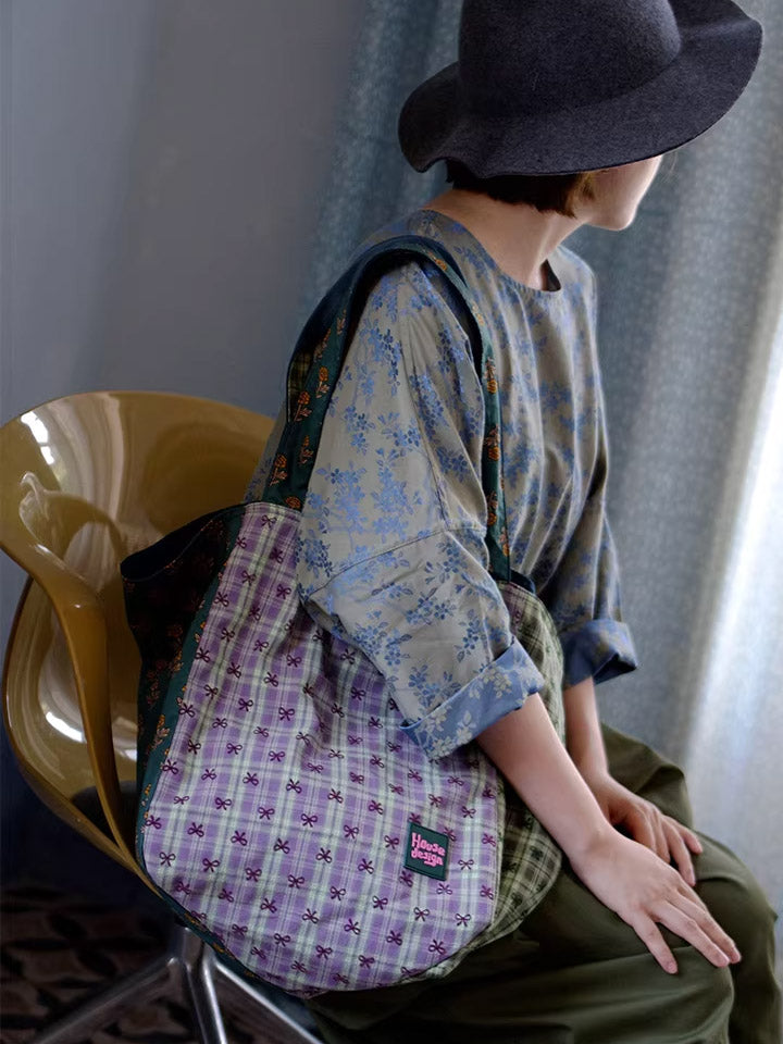 Women Retro Jacquard Spliced Large Capacity Shoulder Bag