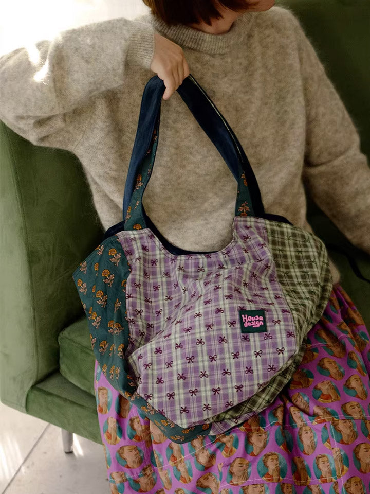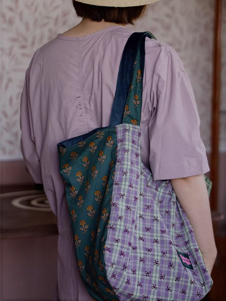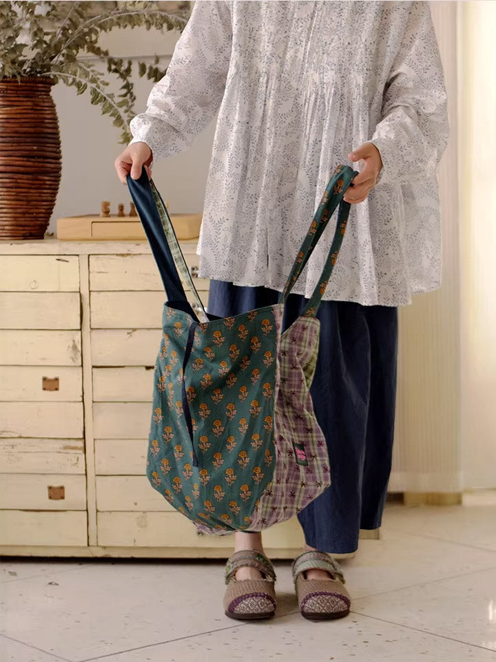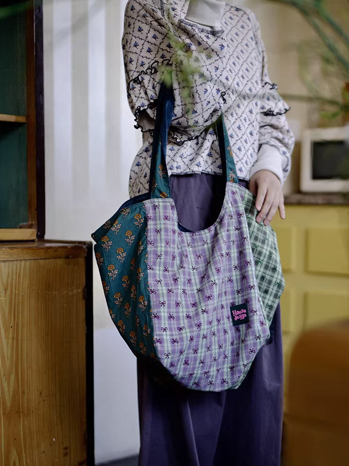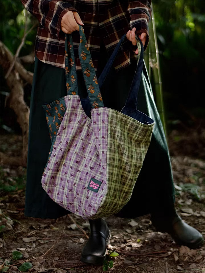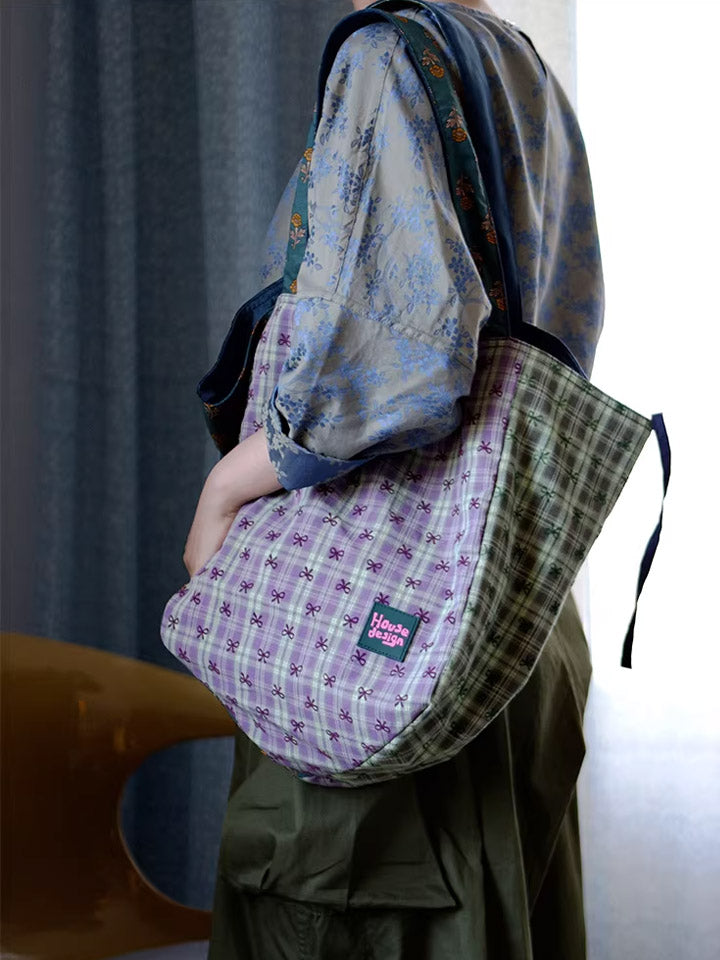 Women Retro Jacquard Spliced Large Capacity Shoulder Bag