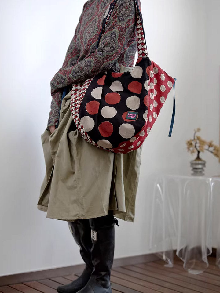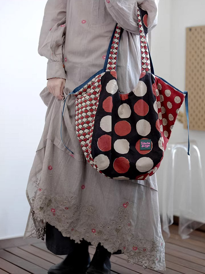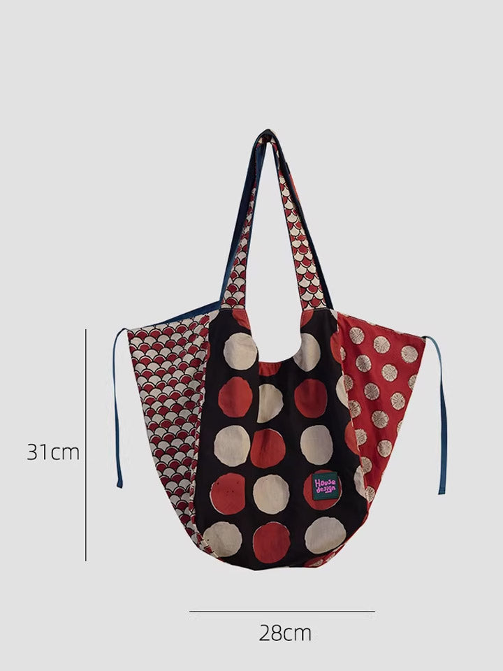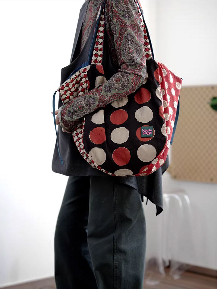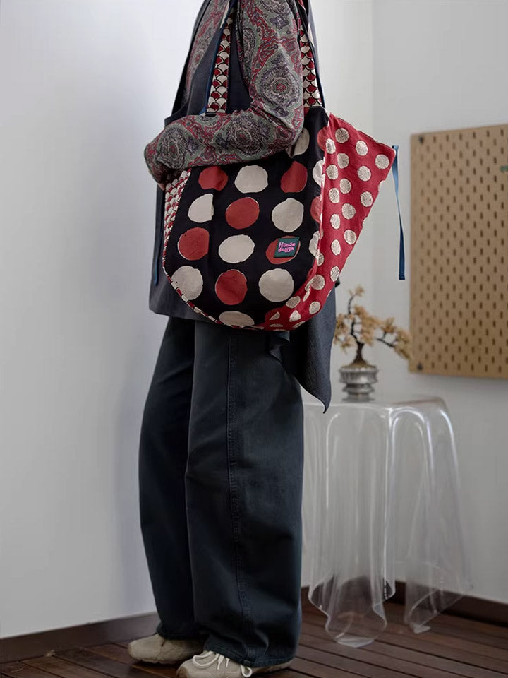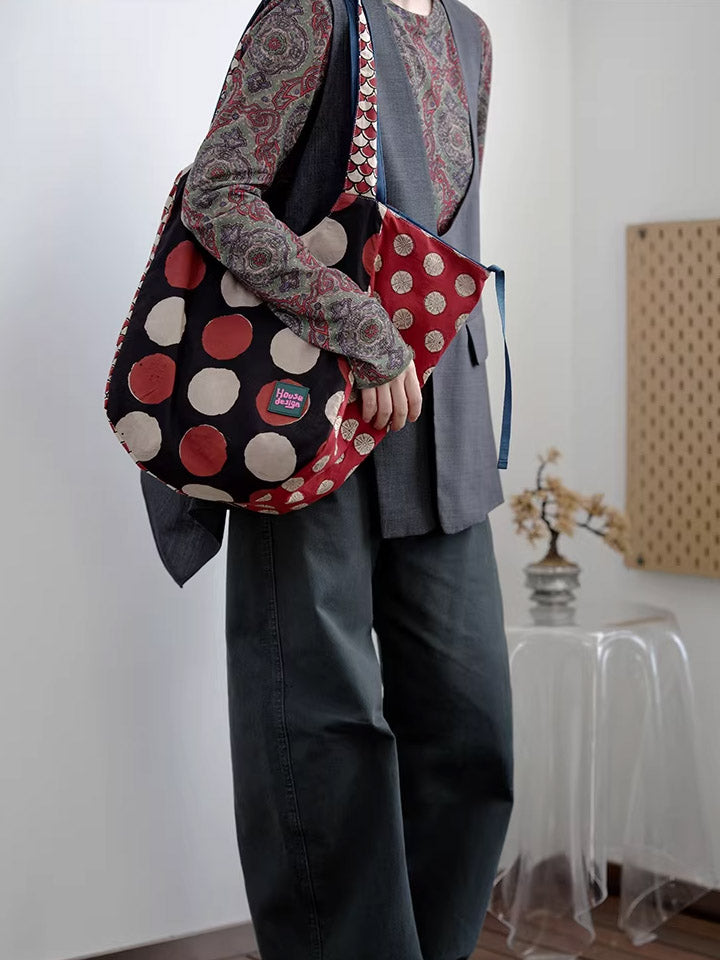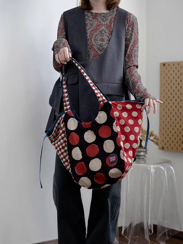 Women Retro Spliced Polka Dot Shoulder Bag