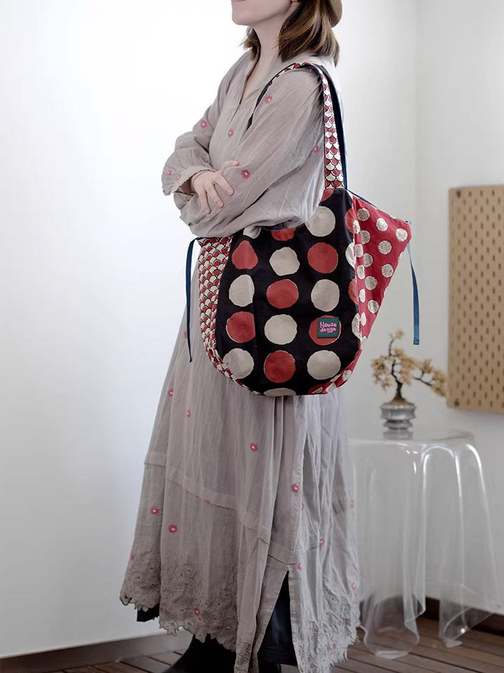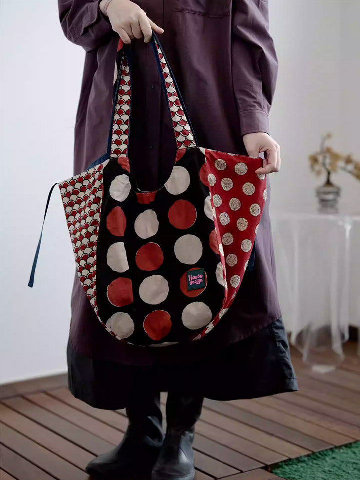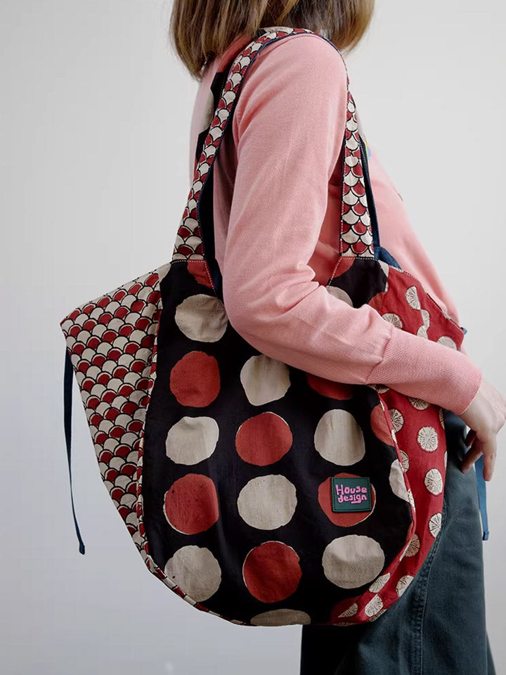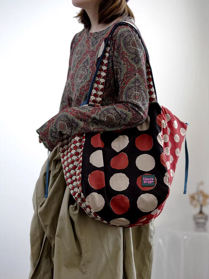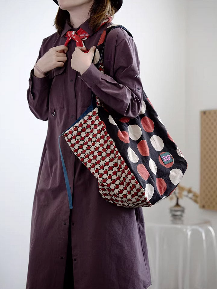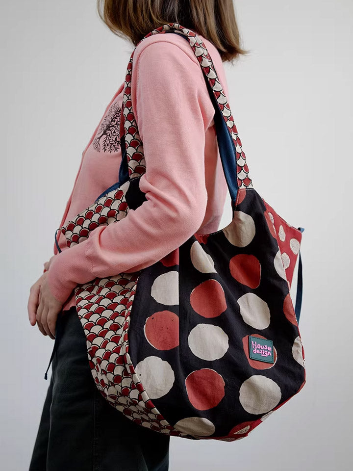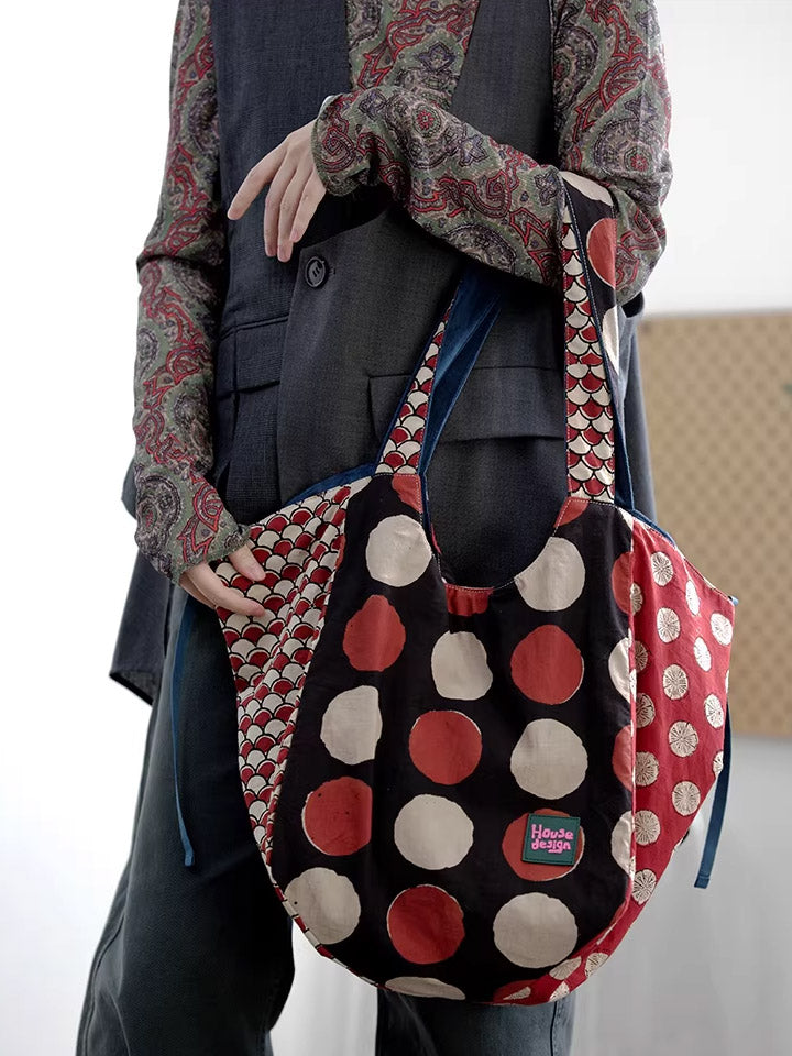 Women Retro Spliced Polka Dot Shoulder Bag