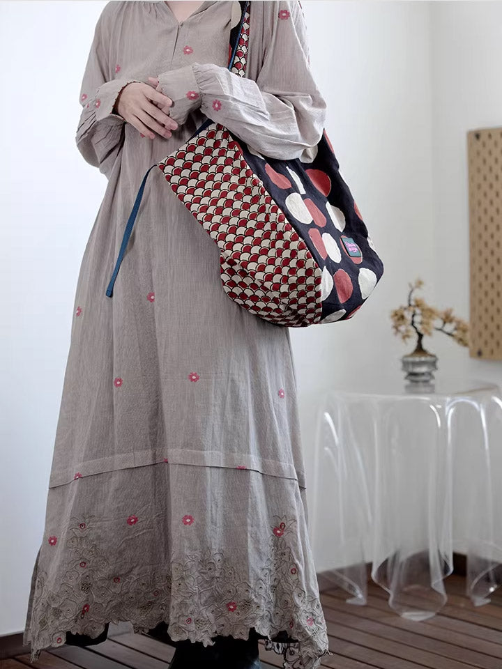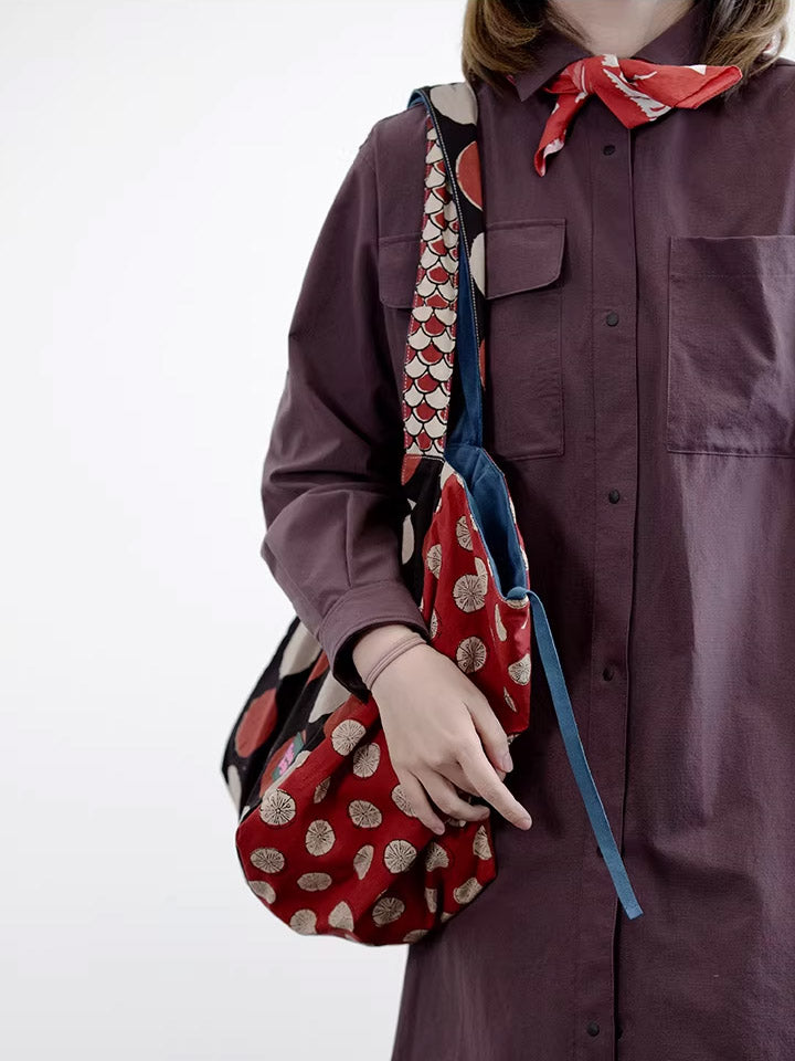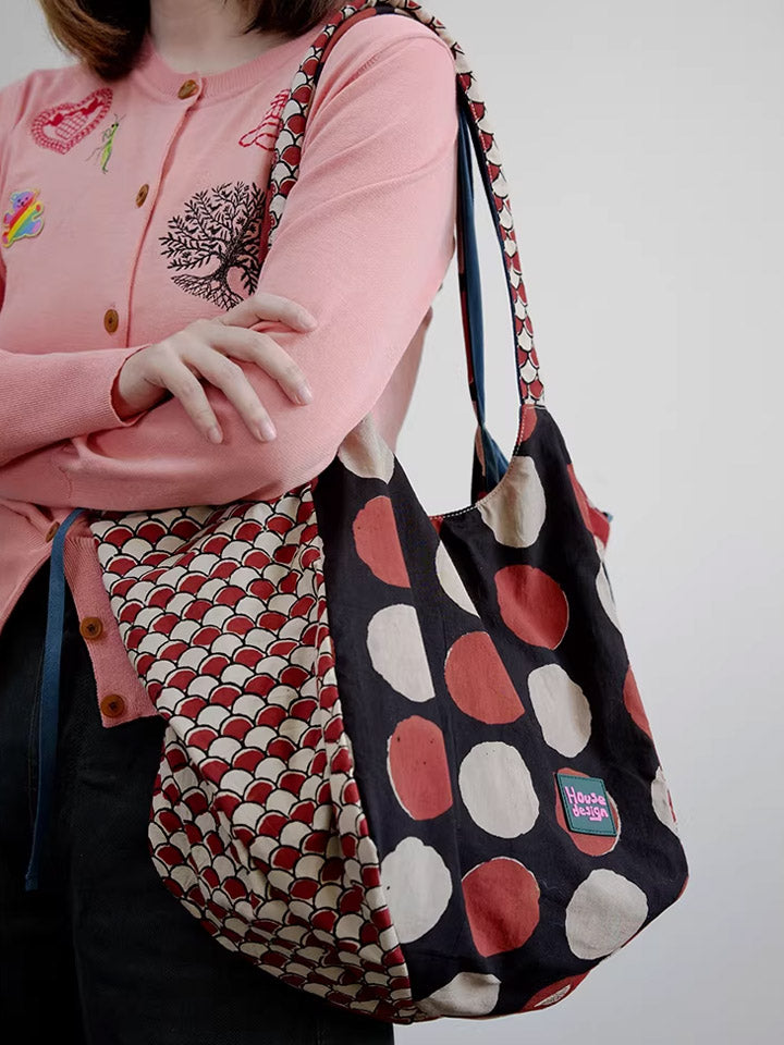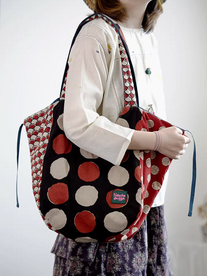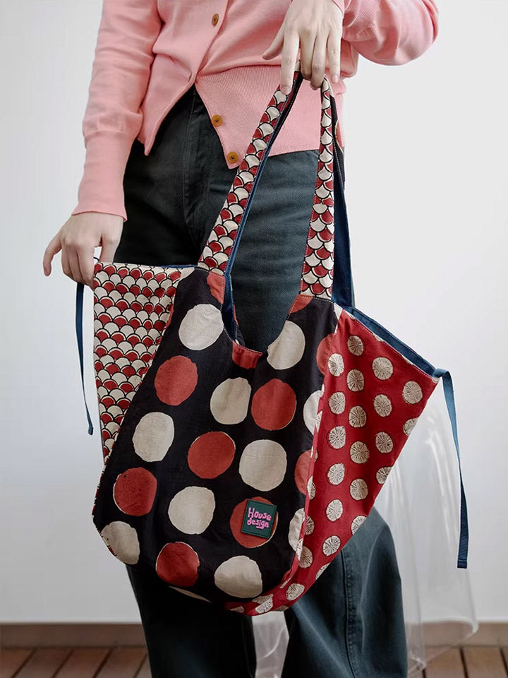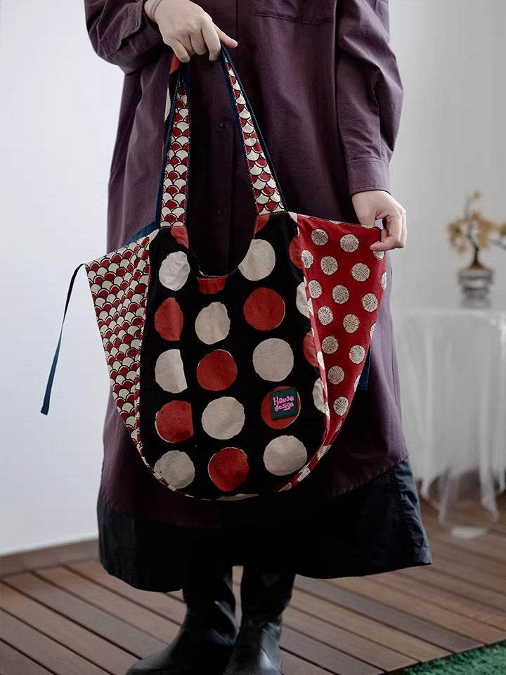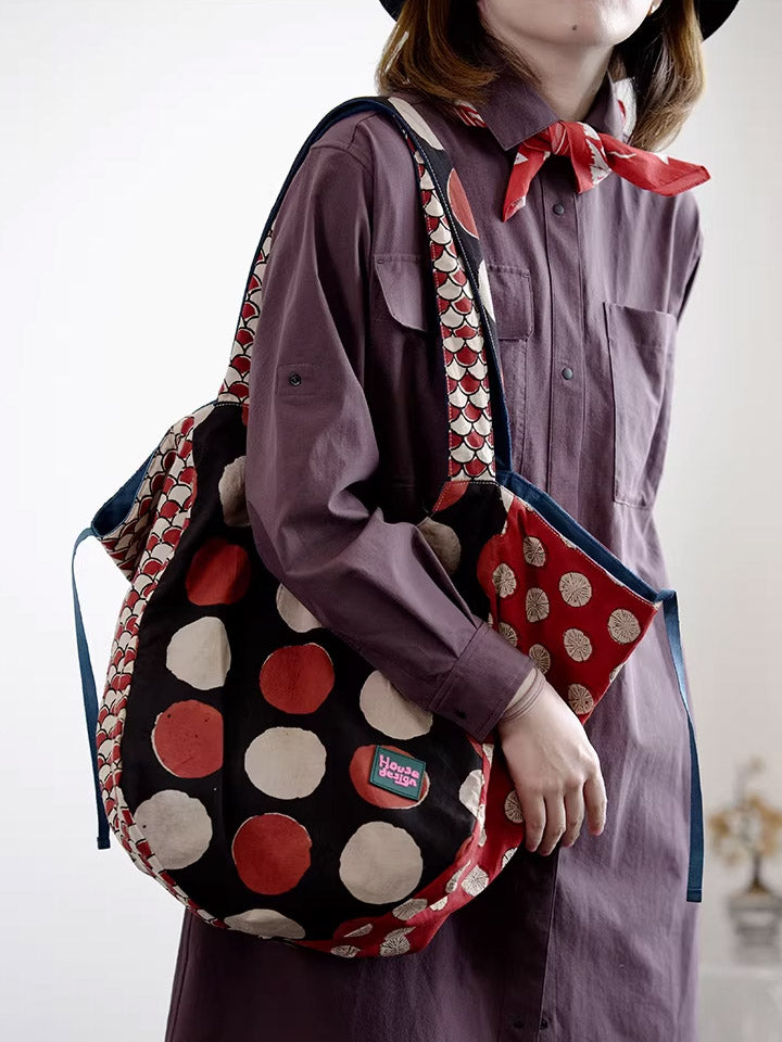 Women Retro Spliced Polka Dot Shoulder Bag