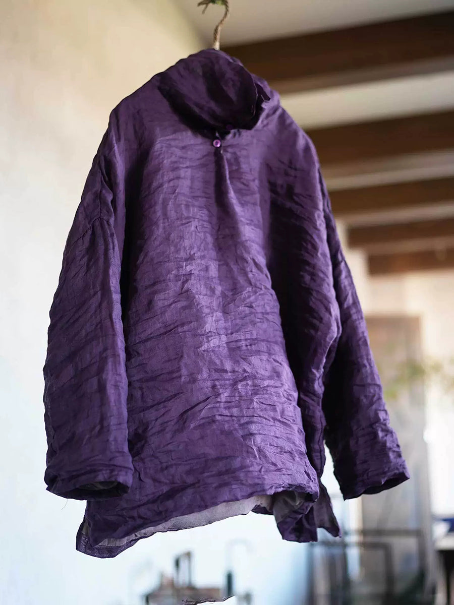 Women Retro Spring Pure Color Ramie Turtleneck Blouse