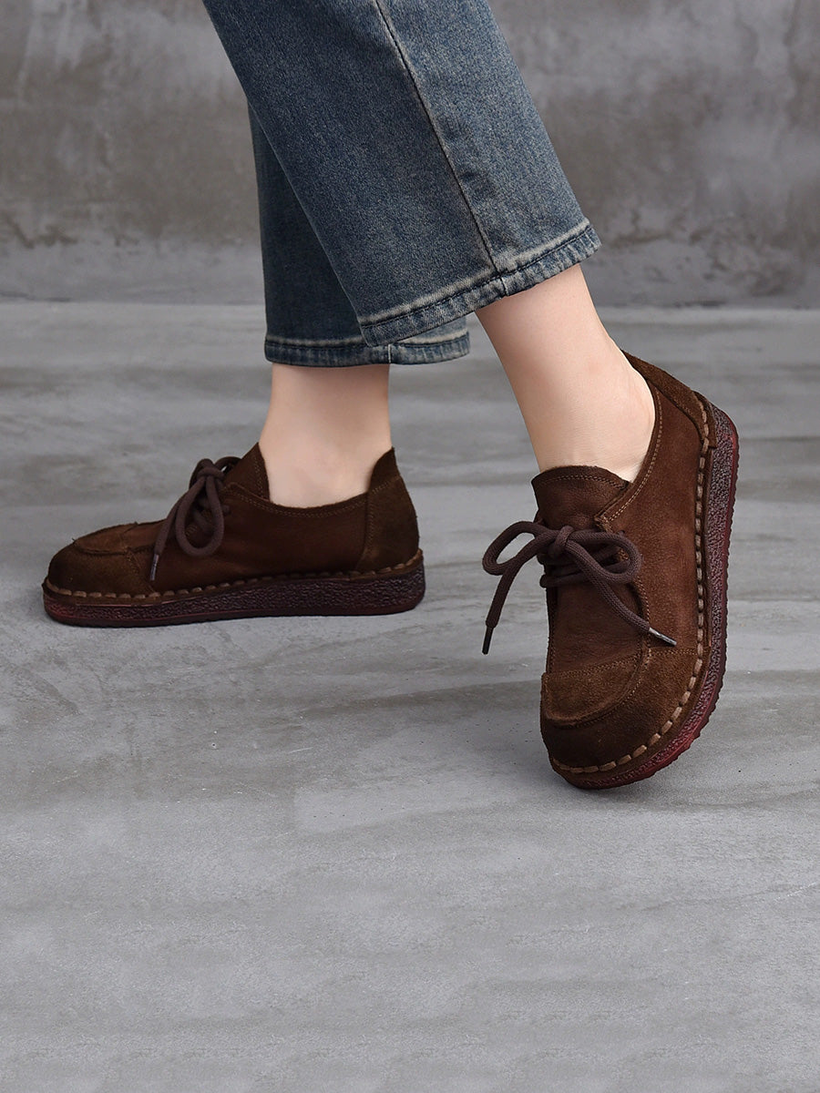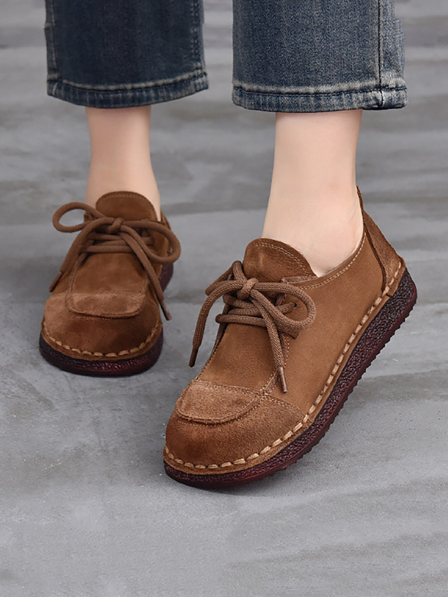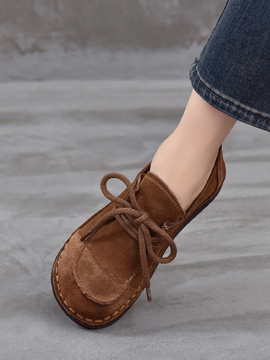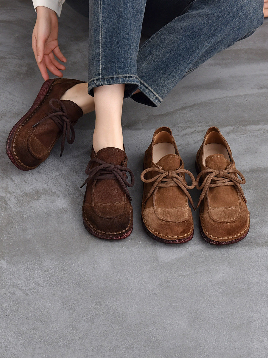 Women Retro Suded Genuine Leather Flat Shoes