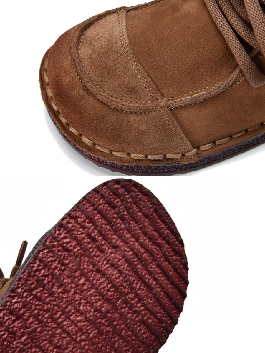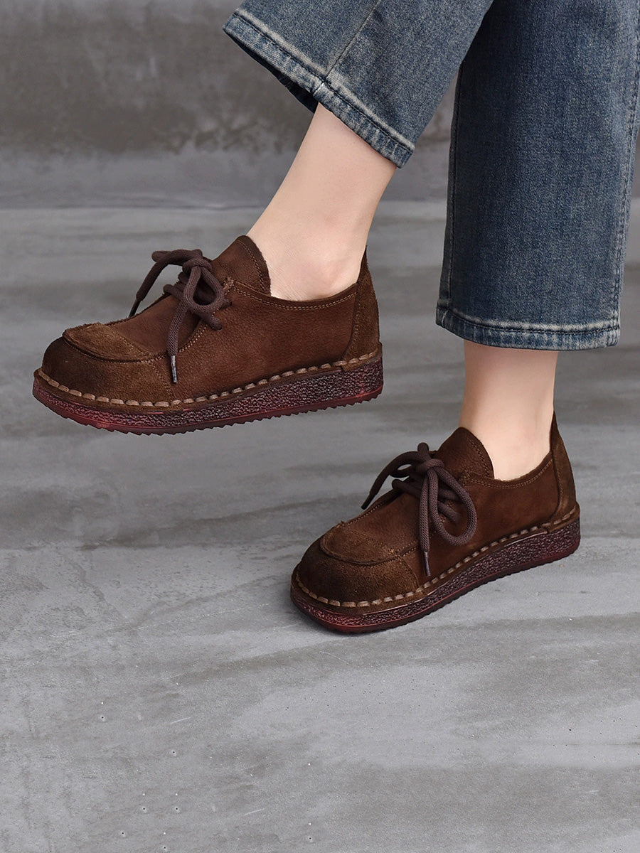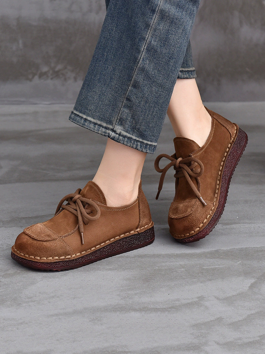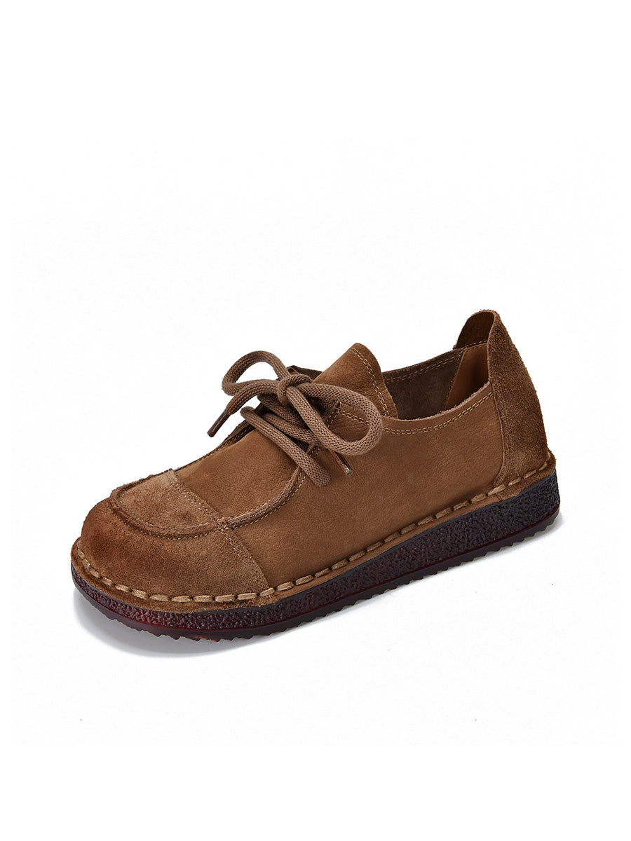 Women Retro Suded Genuine Leather Flat Shoes