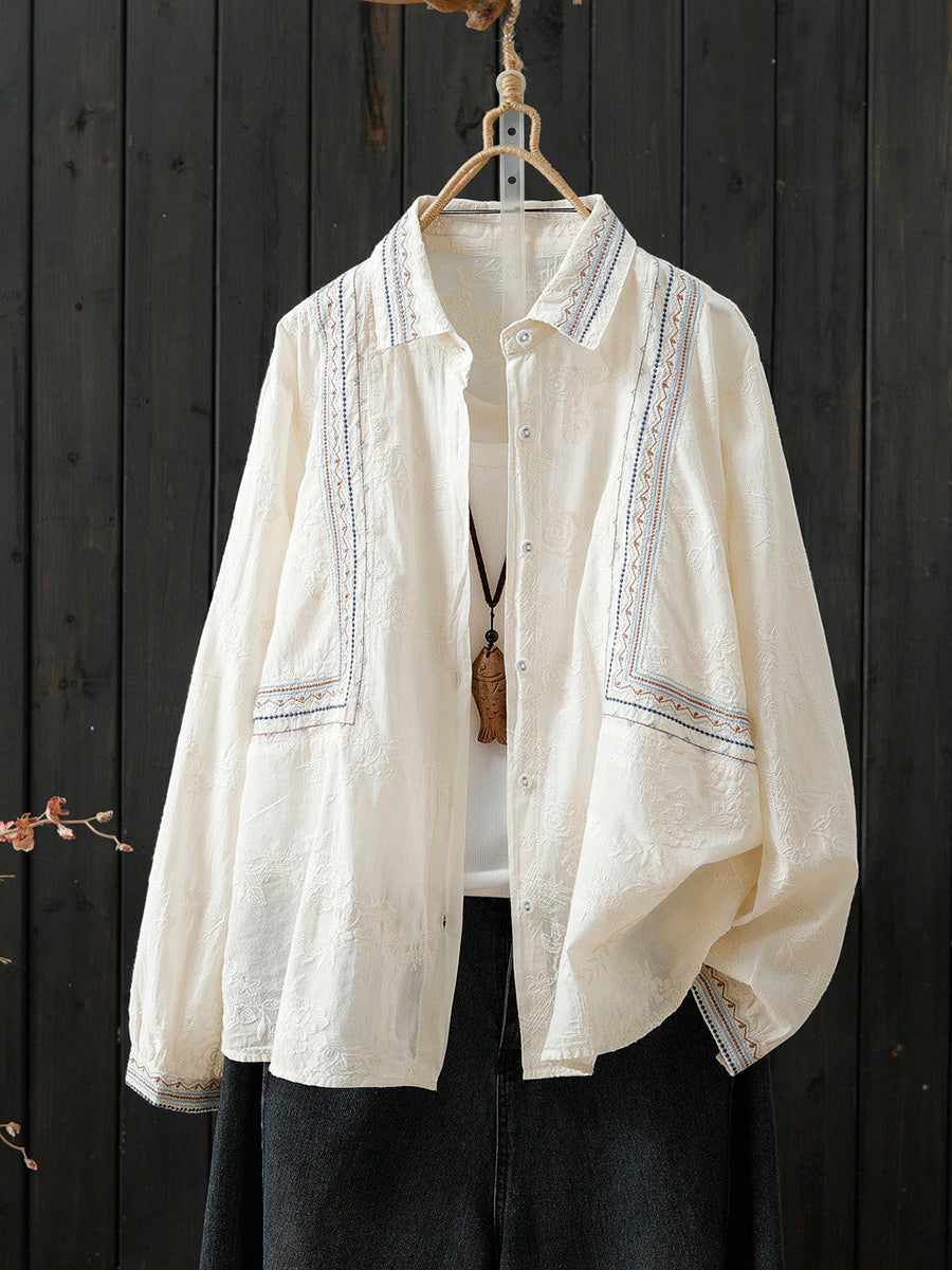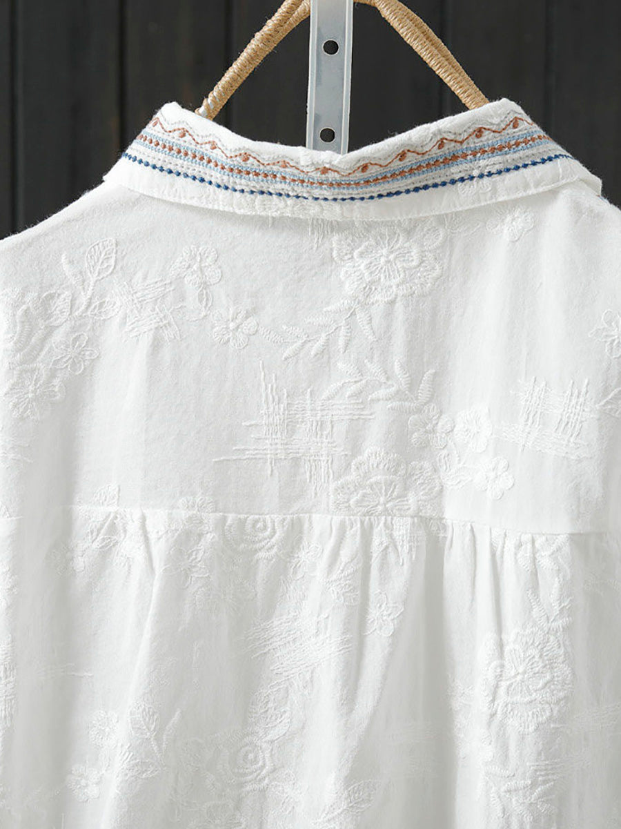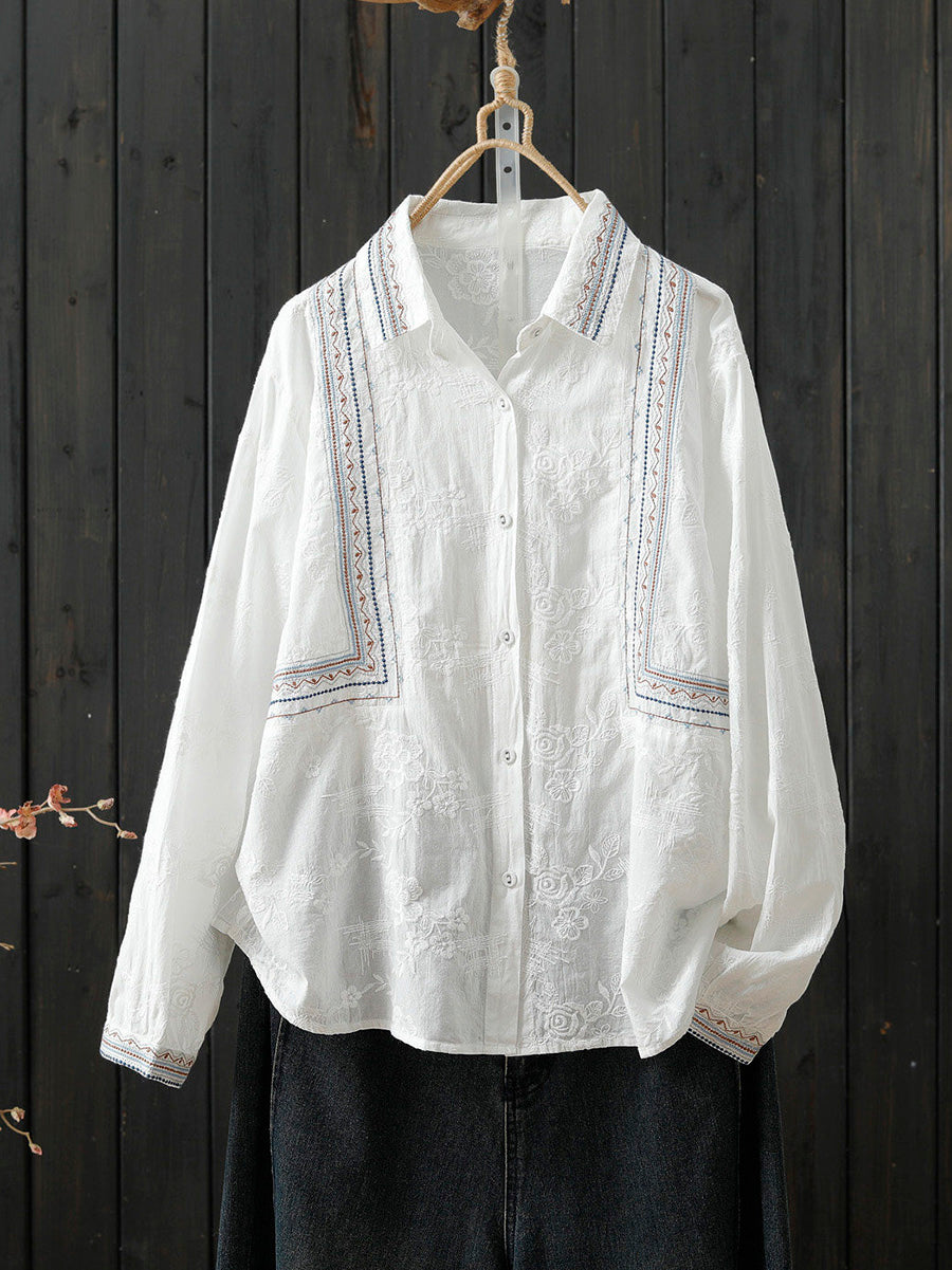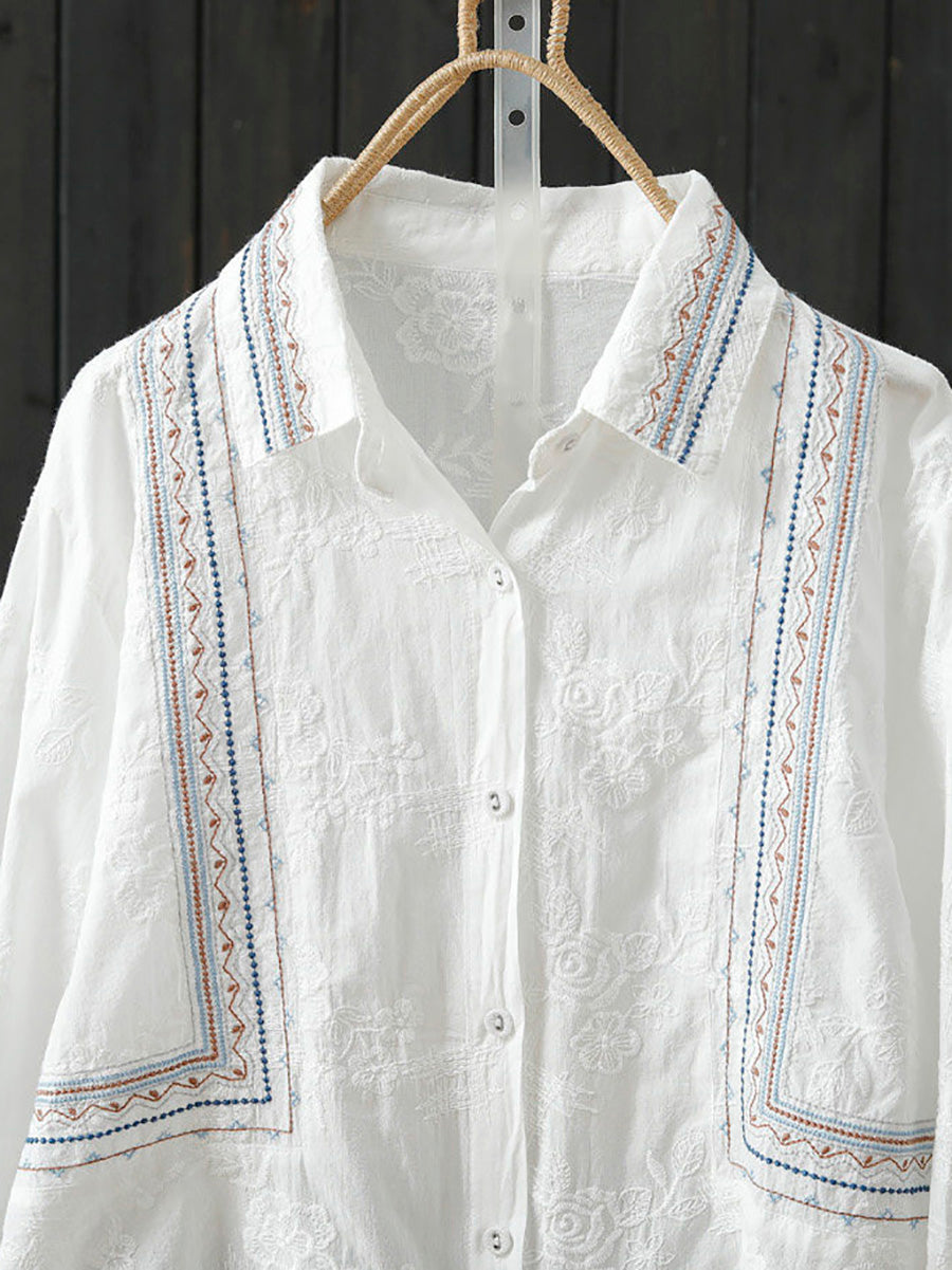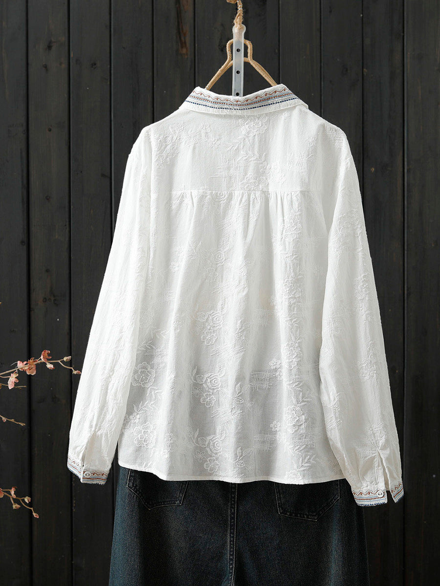 Women Spring Artsy Embroidery 100%Cotton Shirt