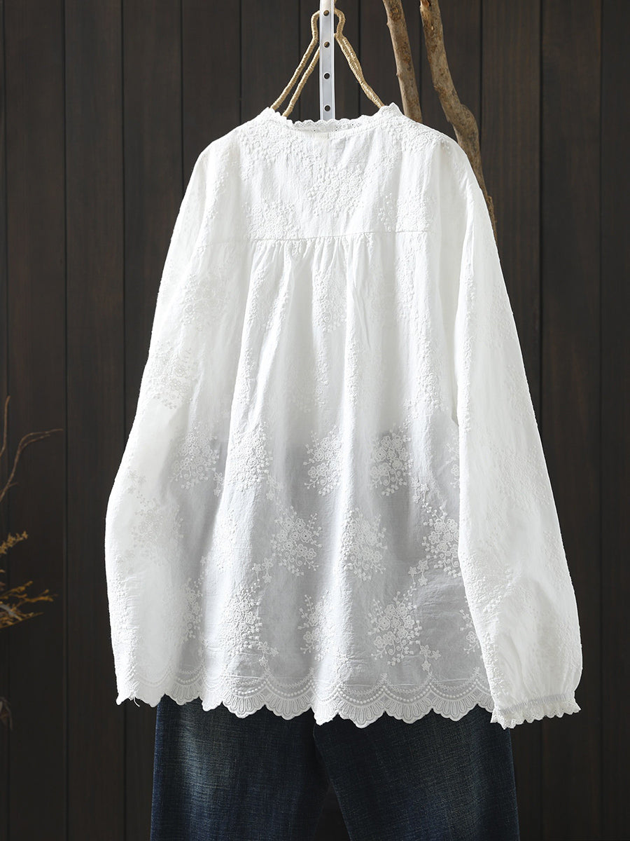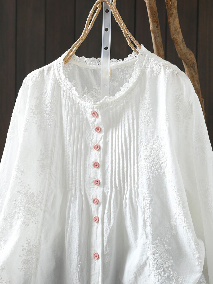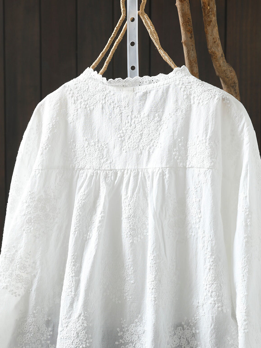 Women Spring Artsy Embroidery 100%Cotton Shirt