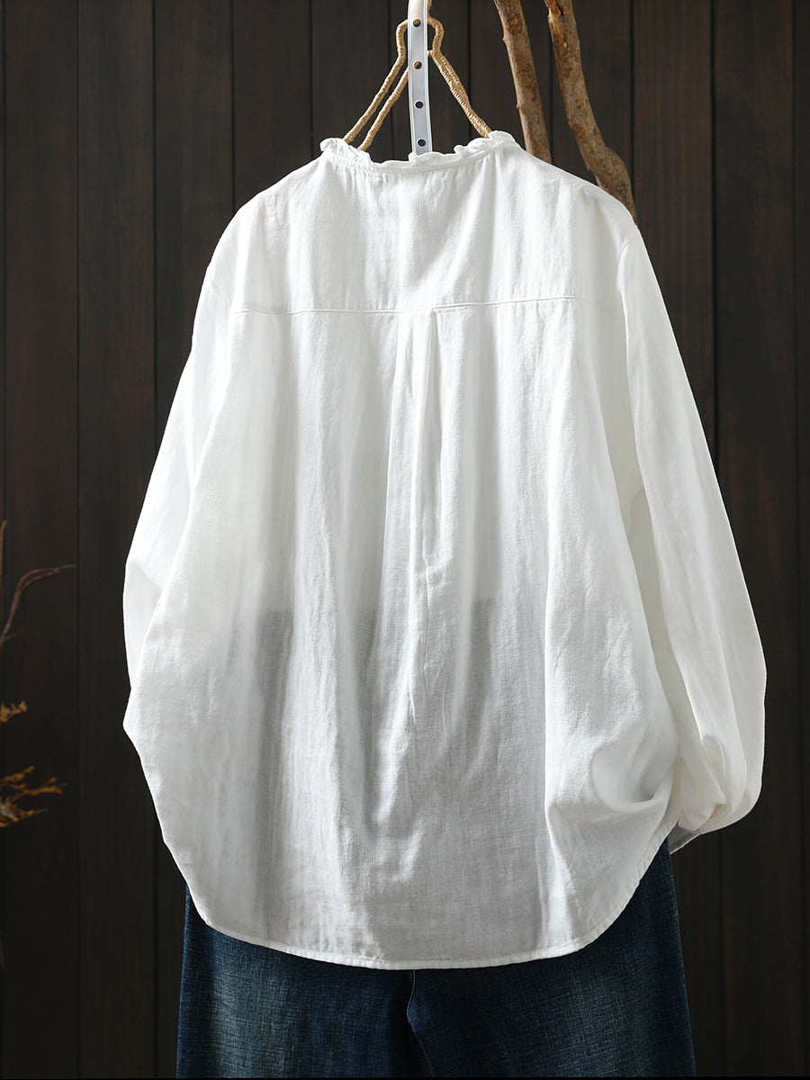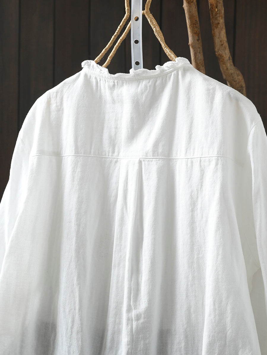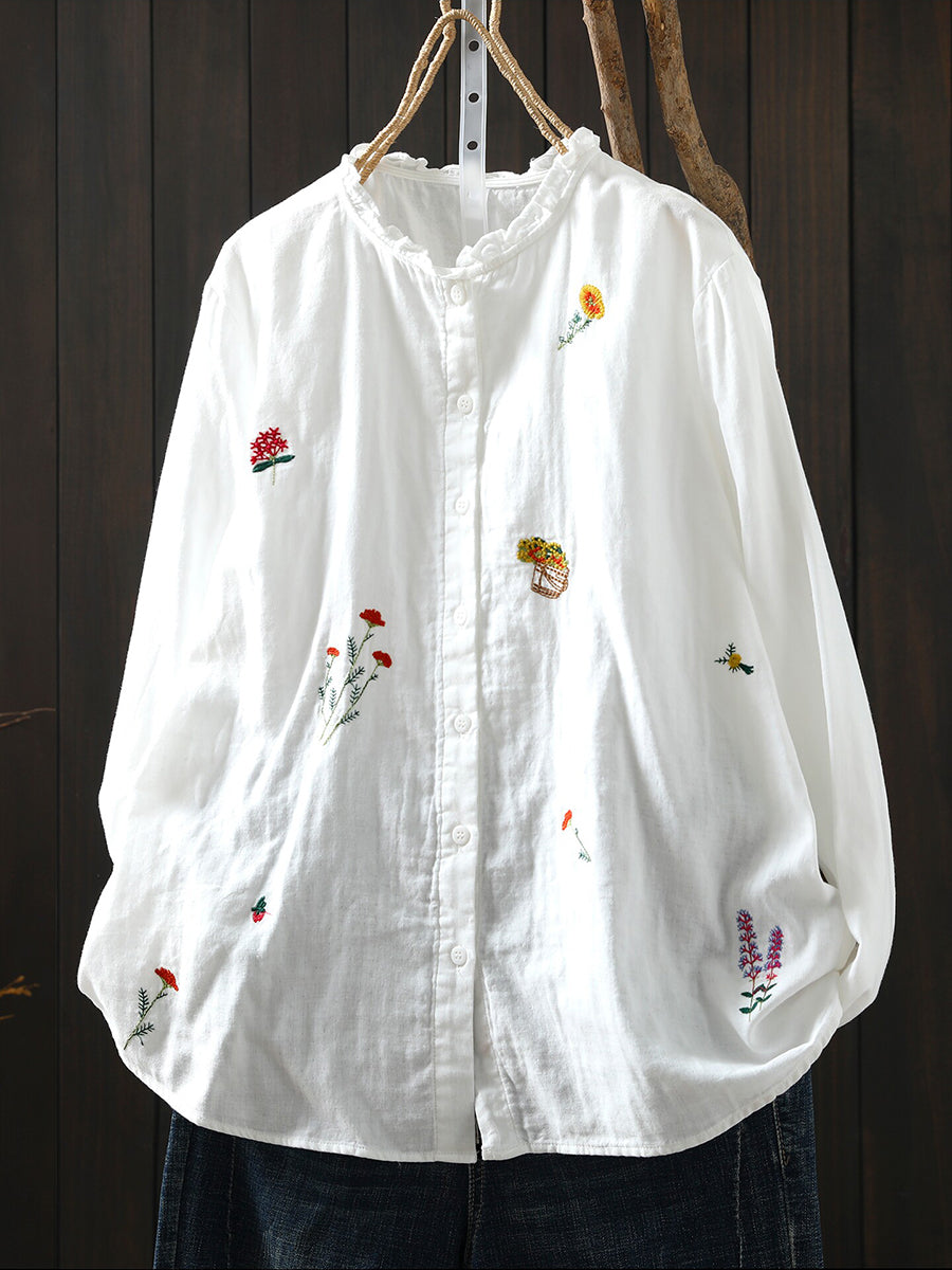 Women Spring Artsy Flower Embroidery 100%Cotton Shirt
