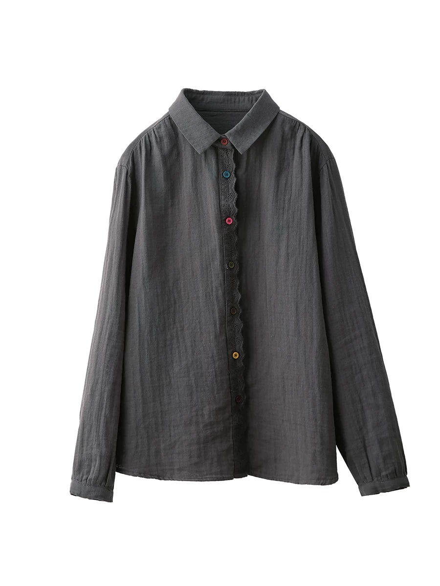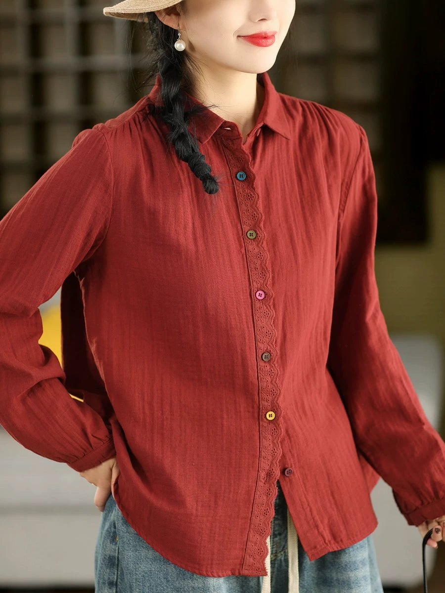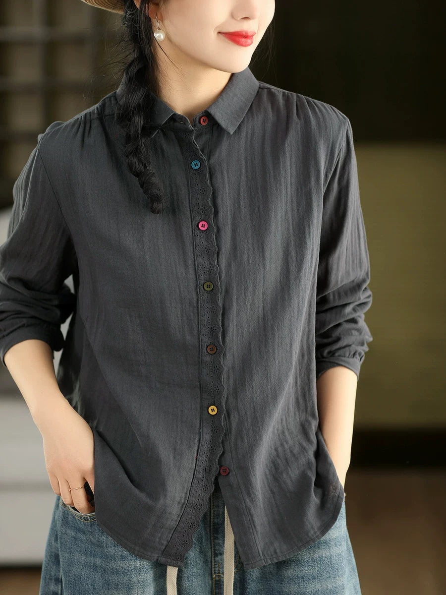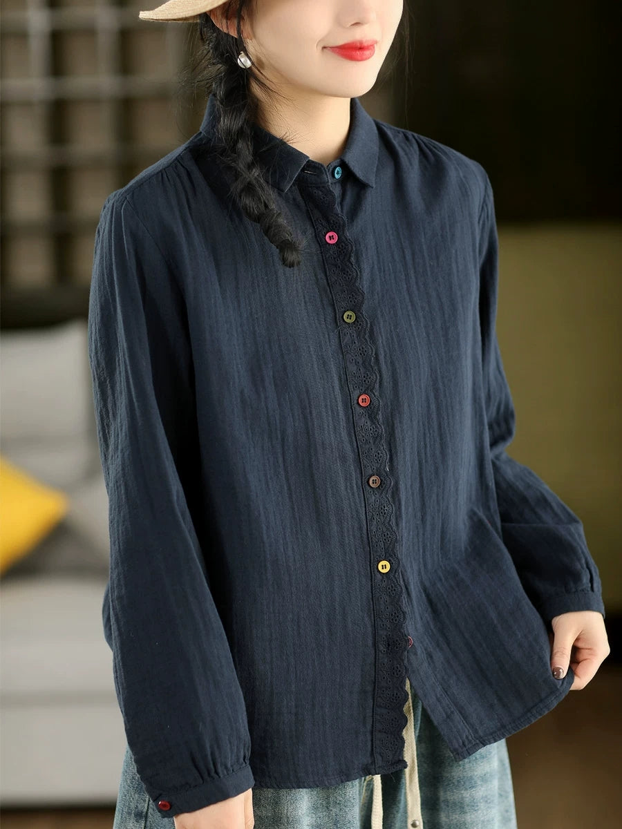 Women Spring Artsy Spliced 100%Cotton Shirt