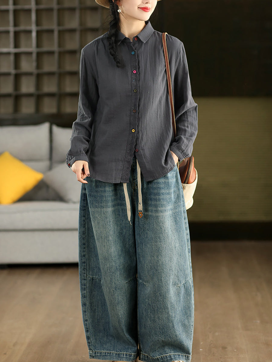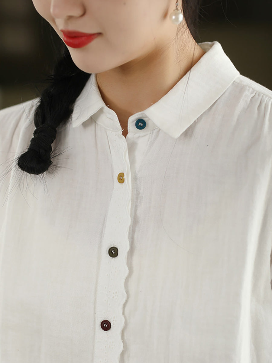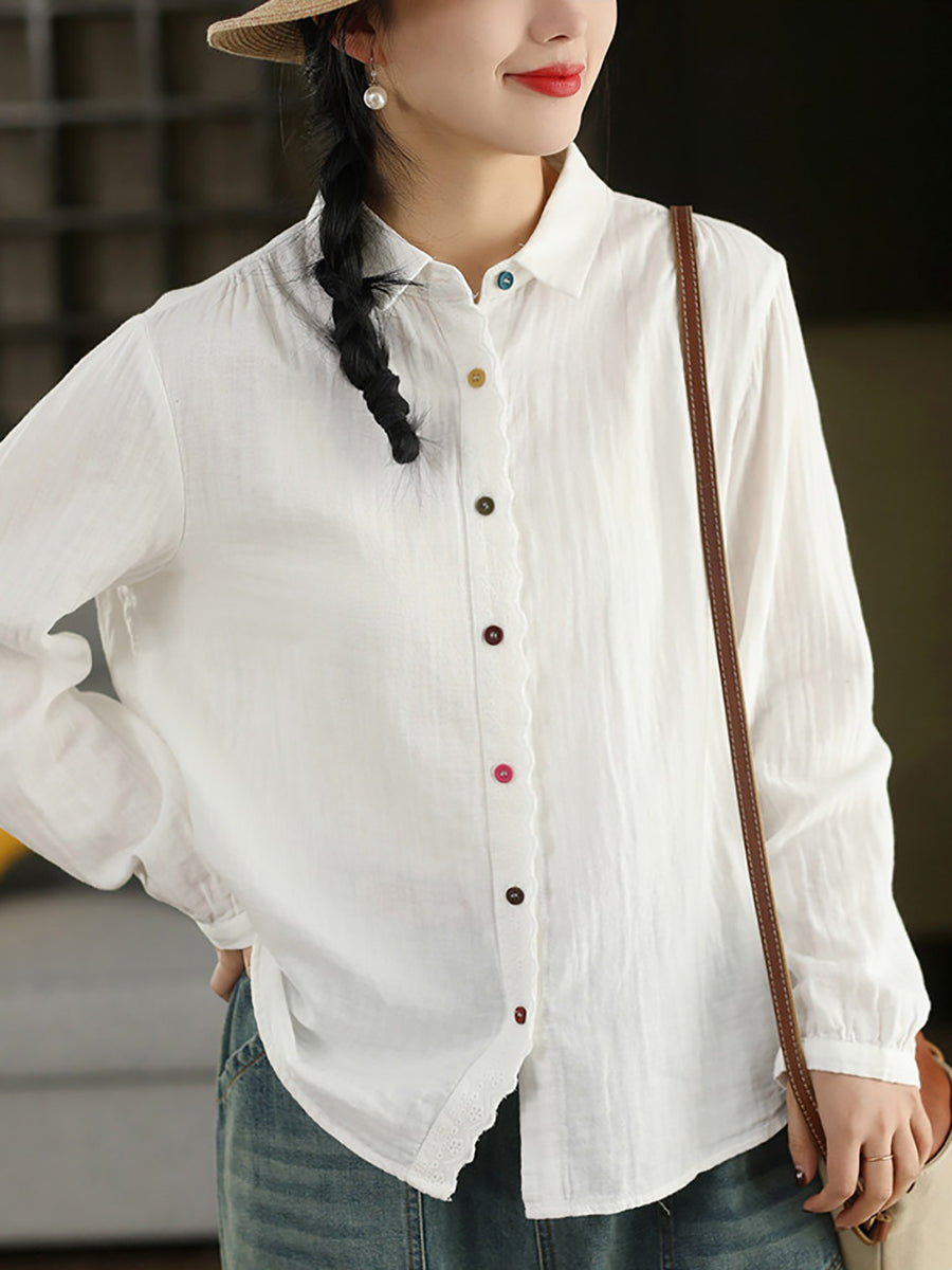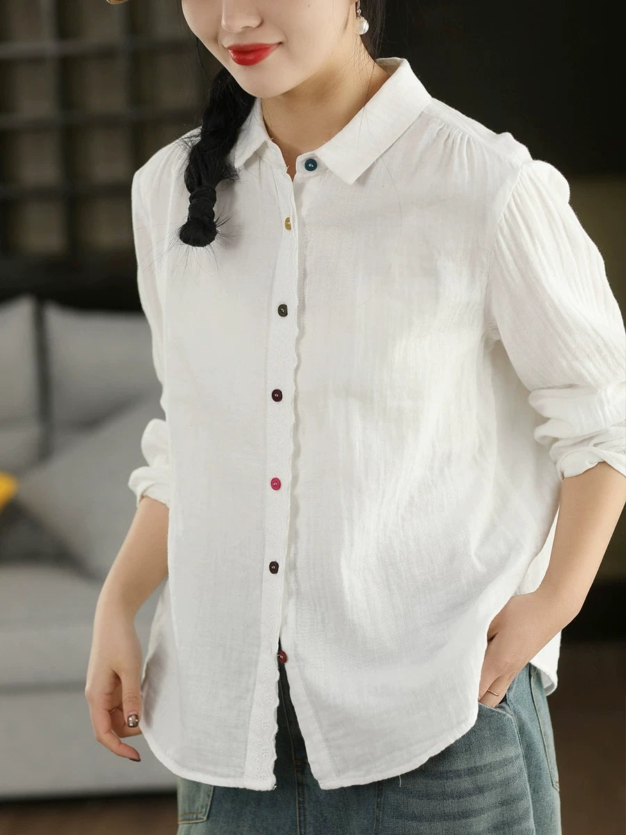 Women Spring Artsy Spliced 100%Cotton Shirt