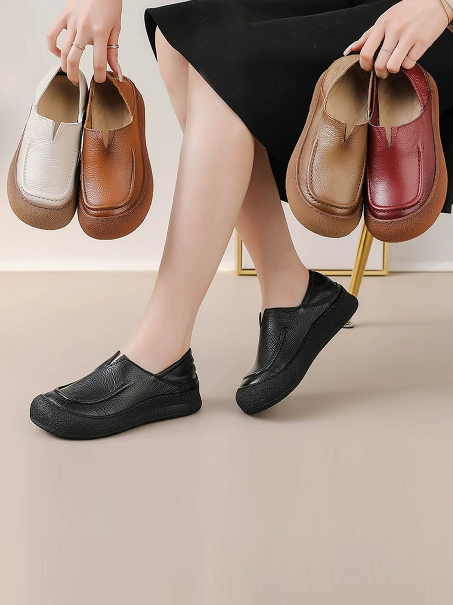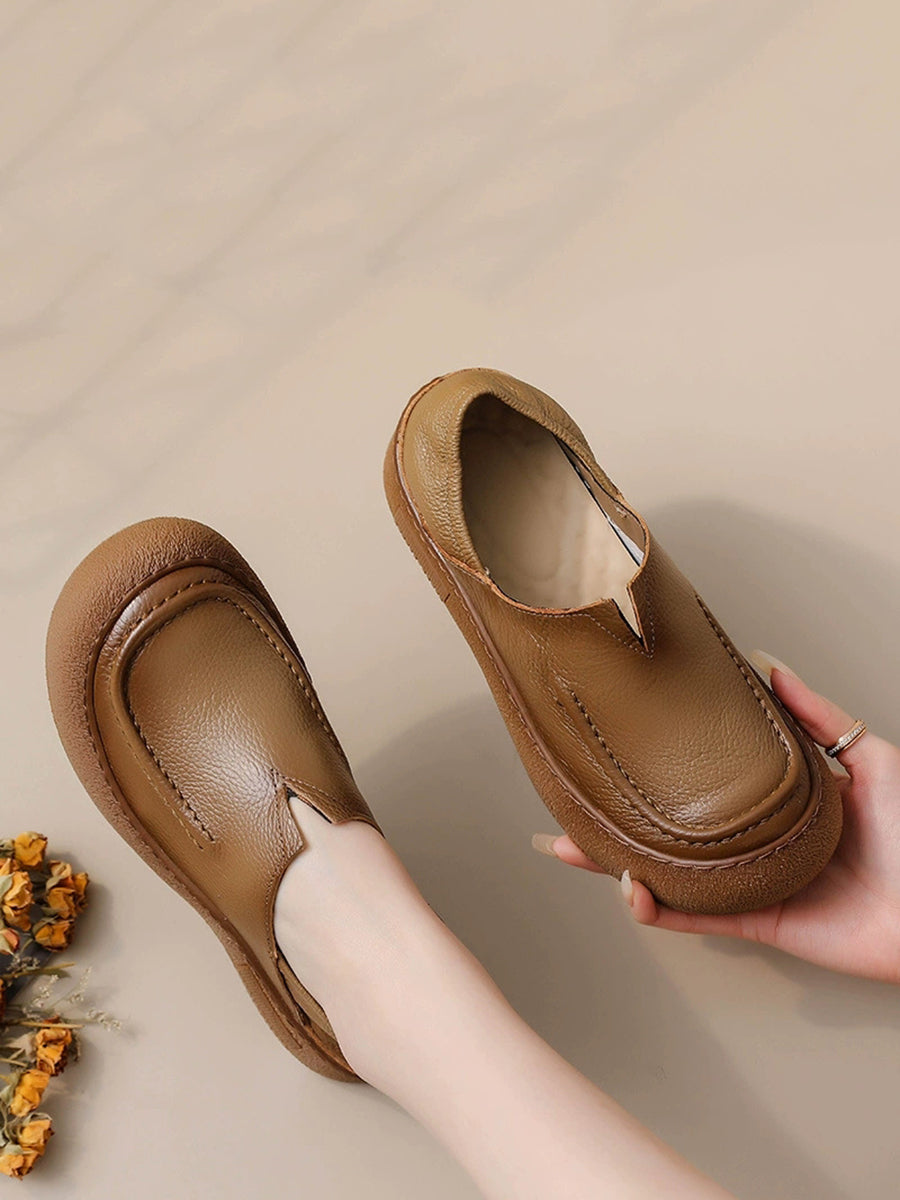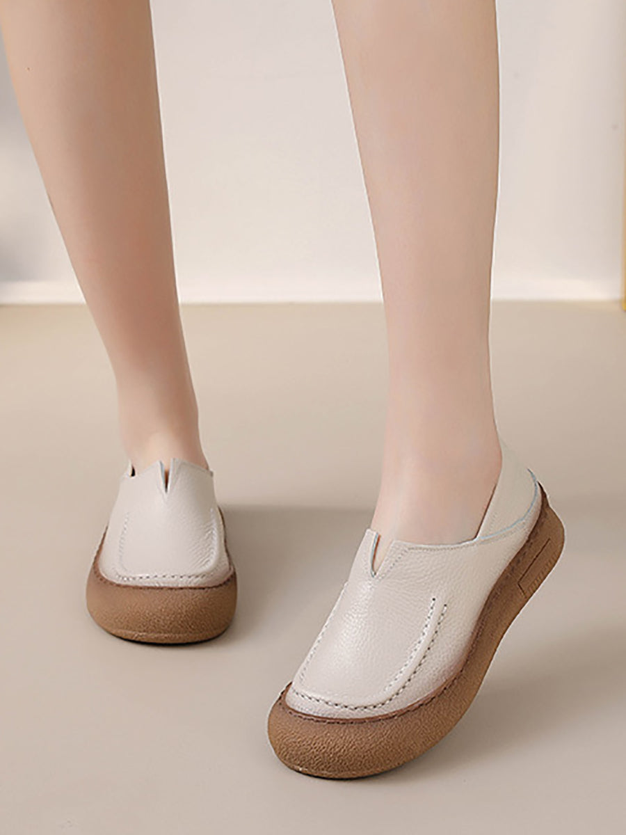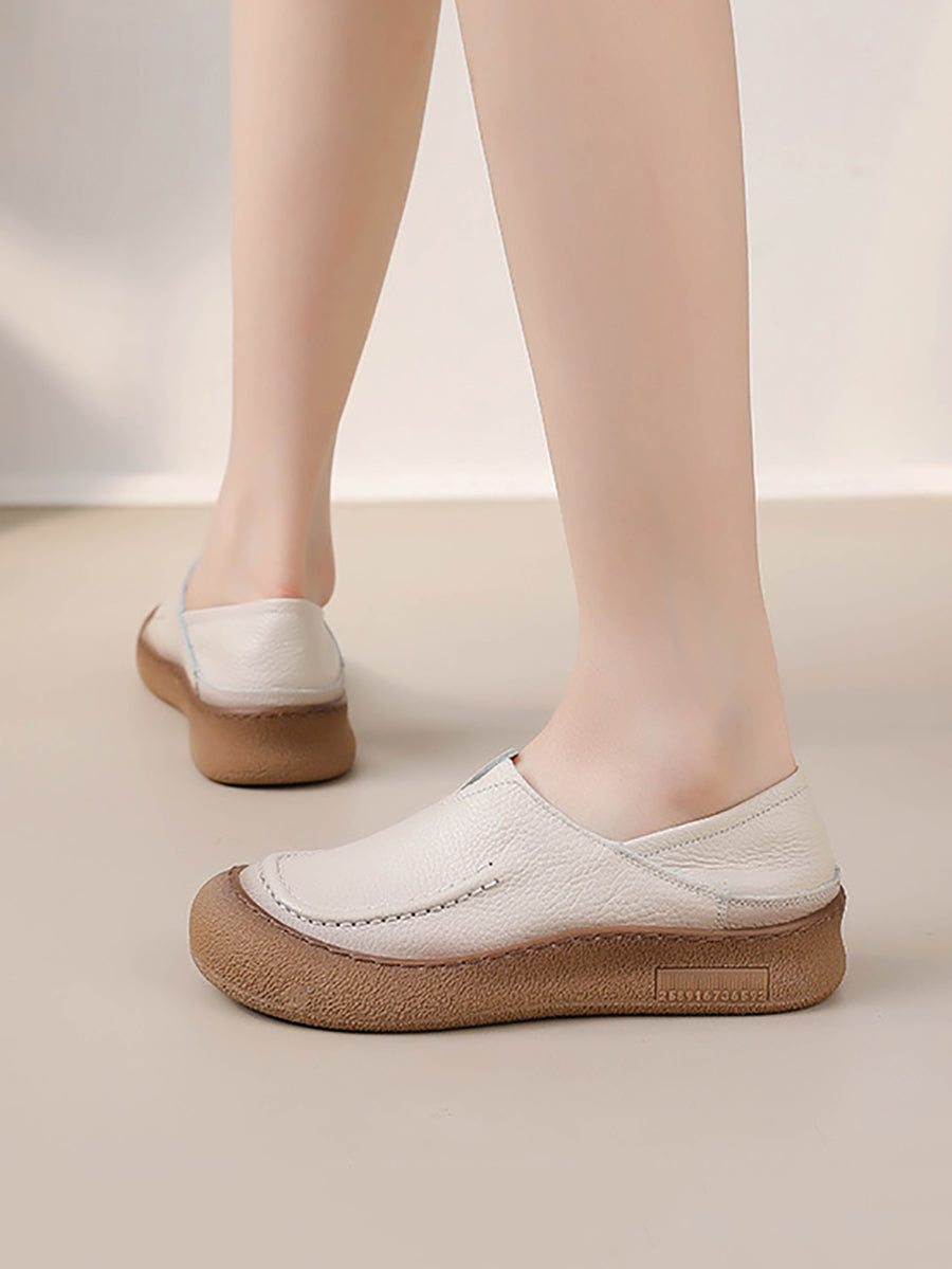 Women Spring Retro Genuine Leather Flat Shoes