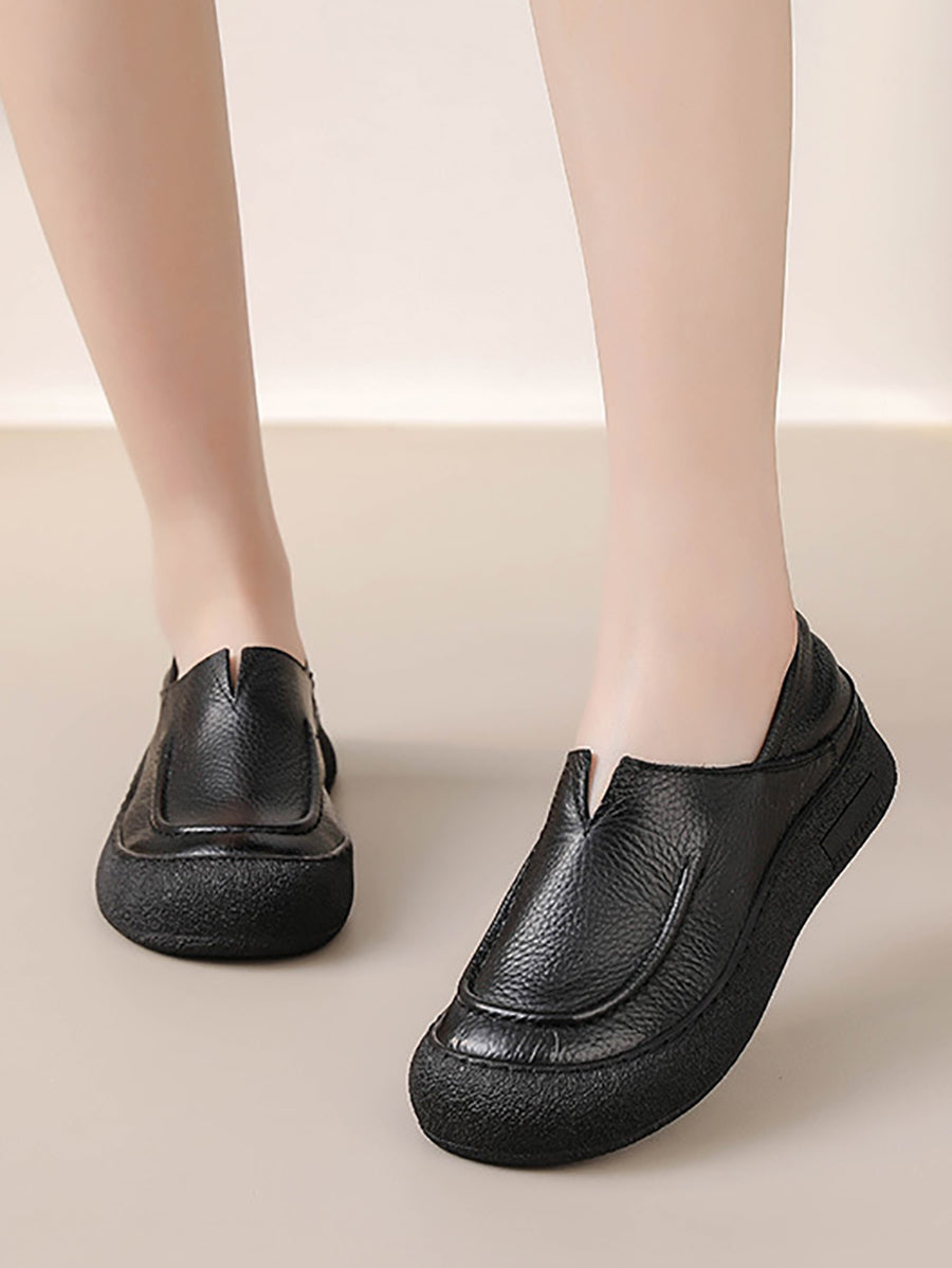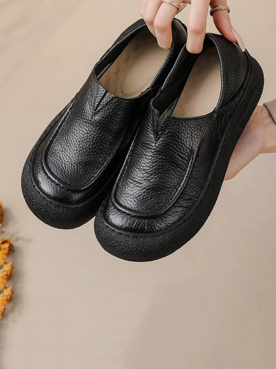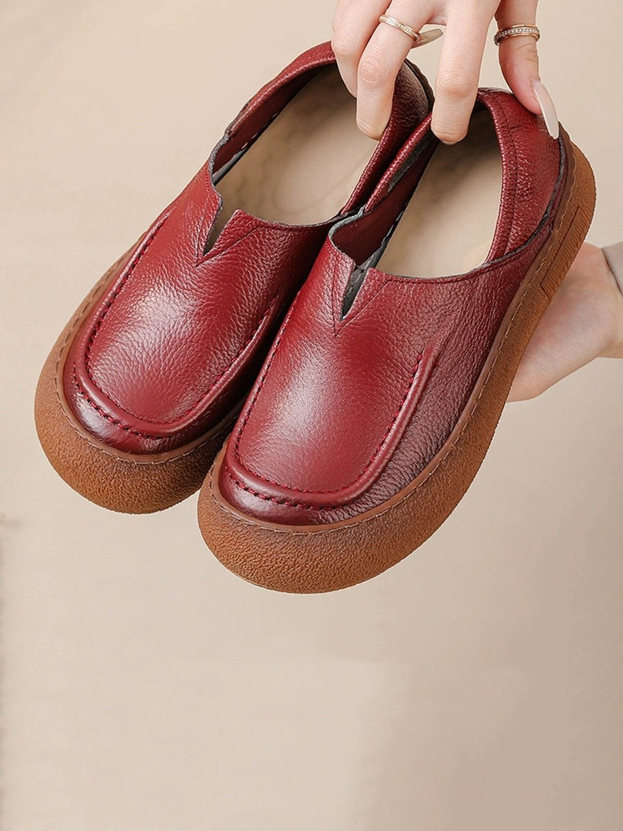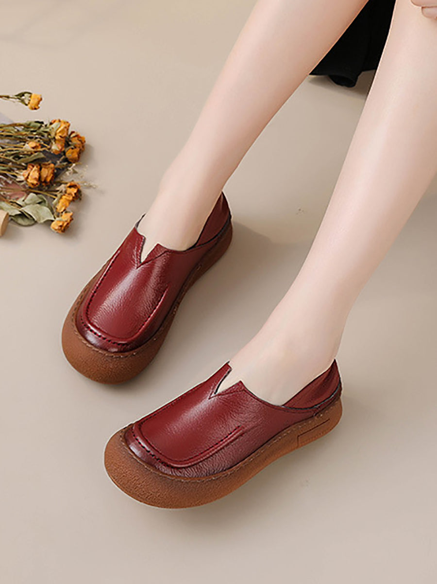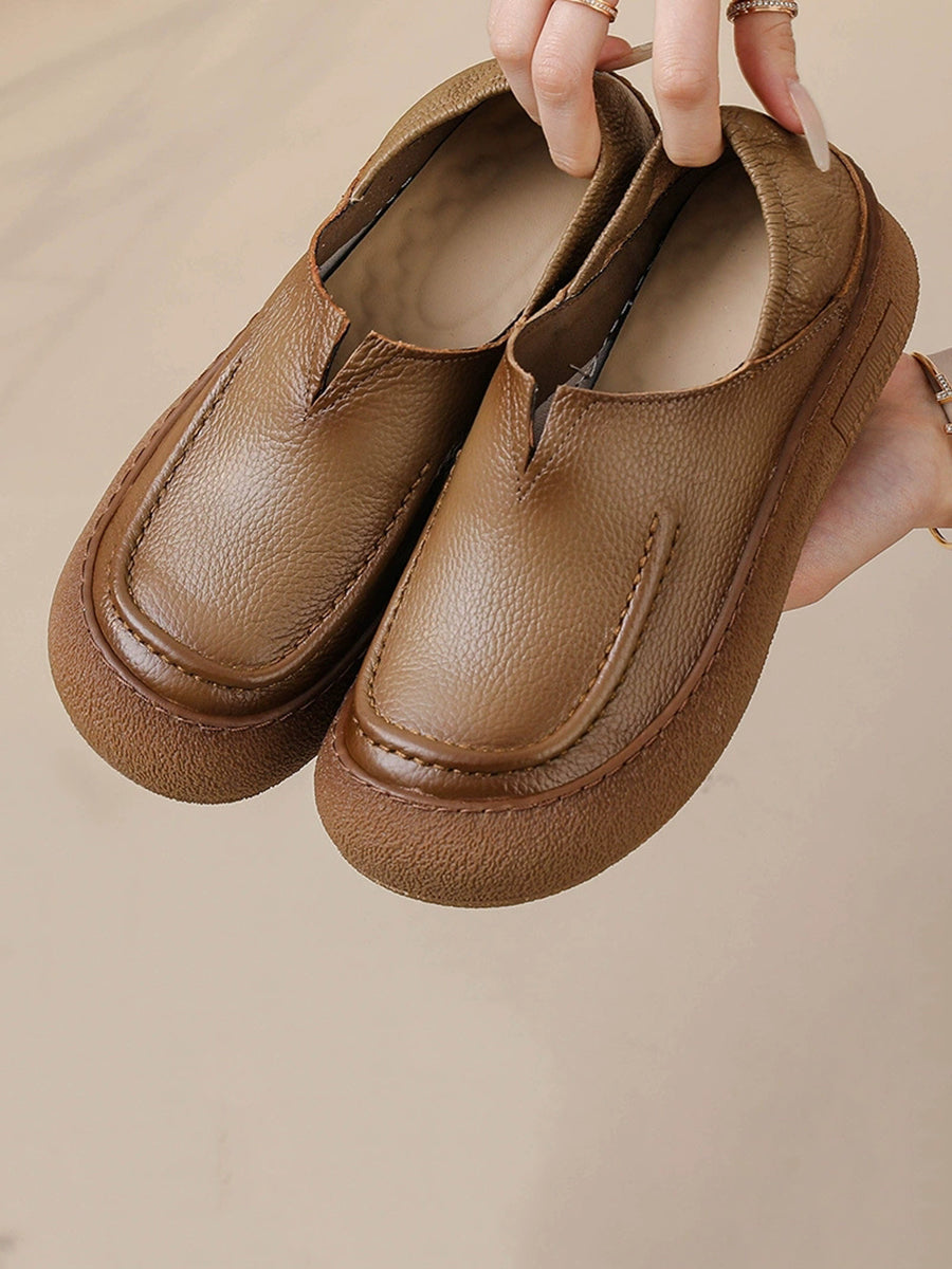 Women Spring Retro Genuine Leather Flat Shoes