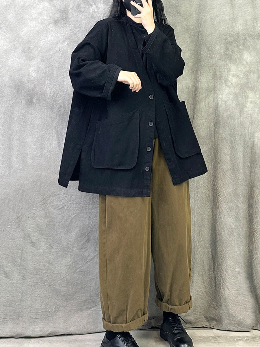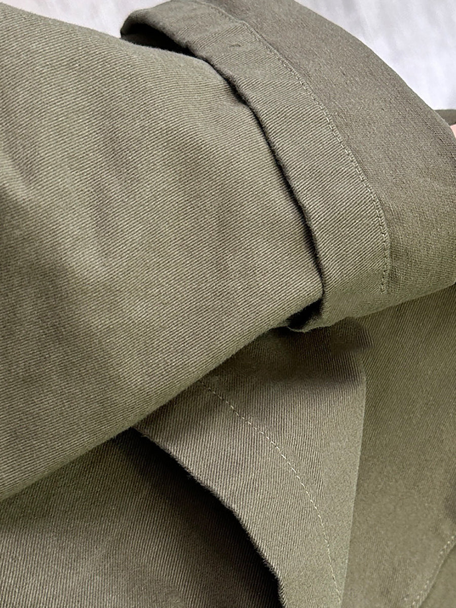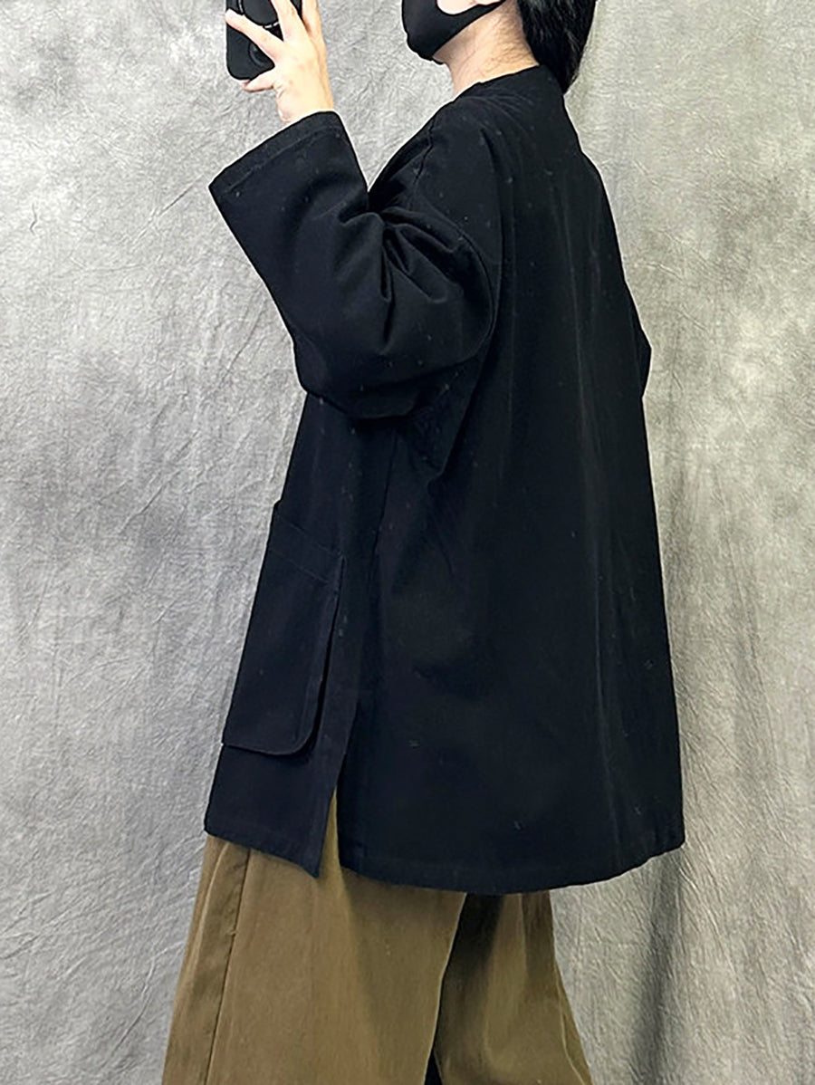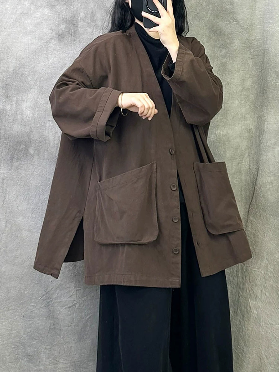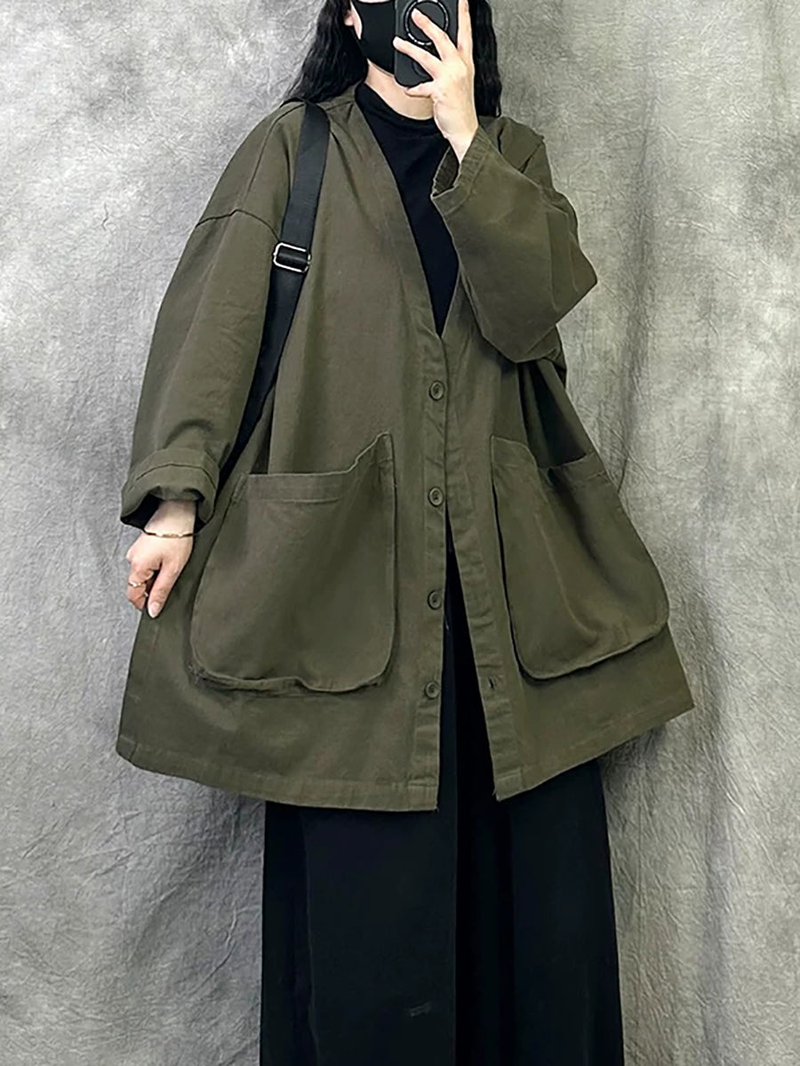 Women Spring Retro Pure Color V-Neck Trench Coat