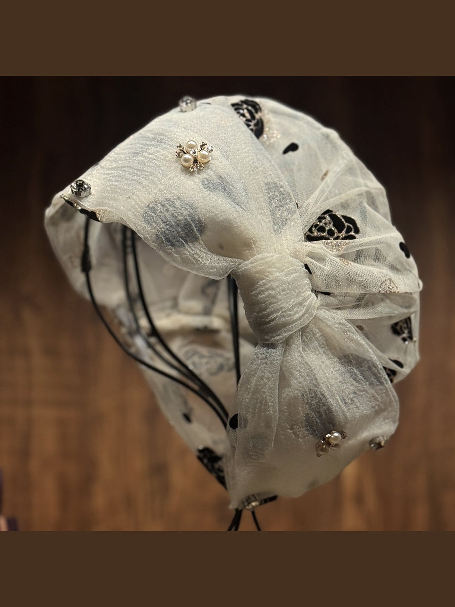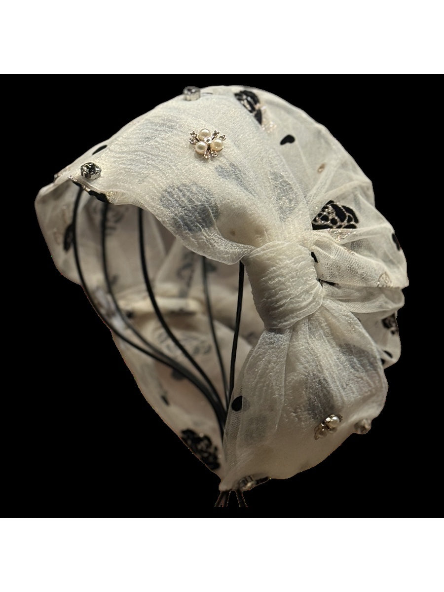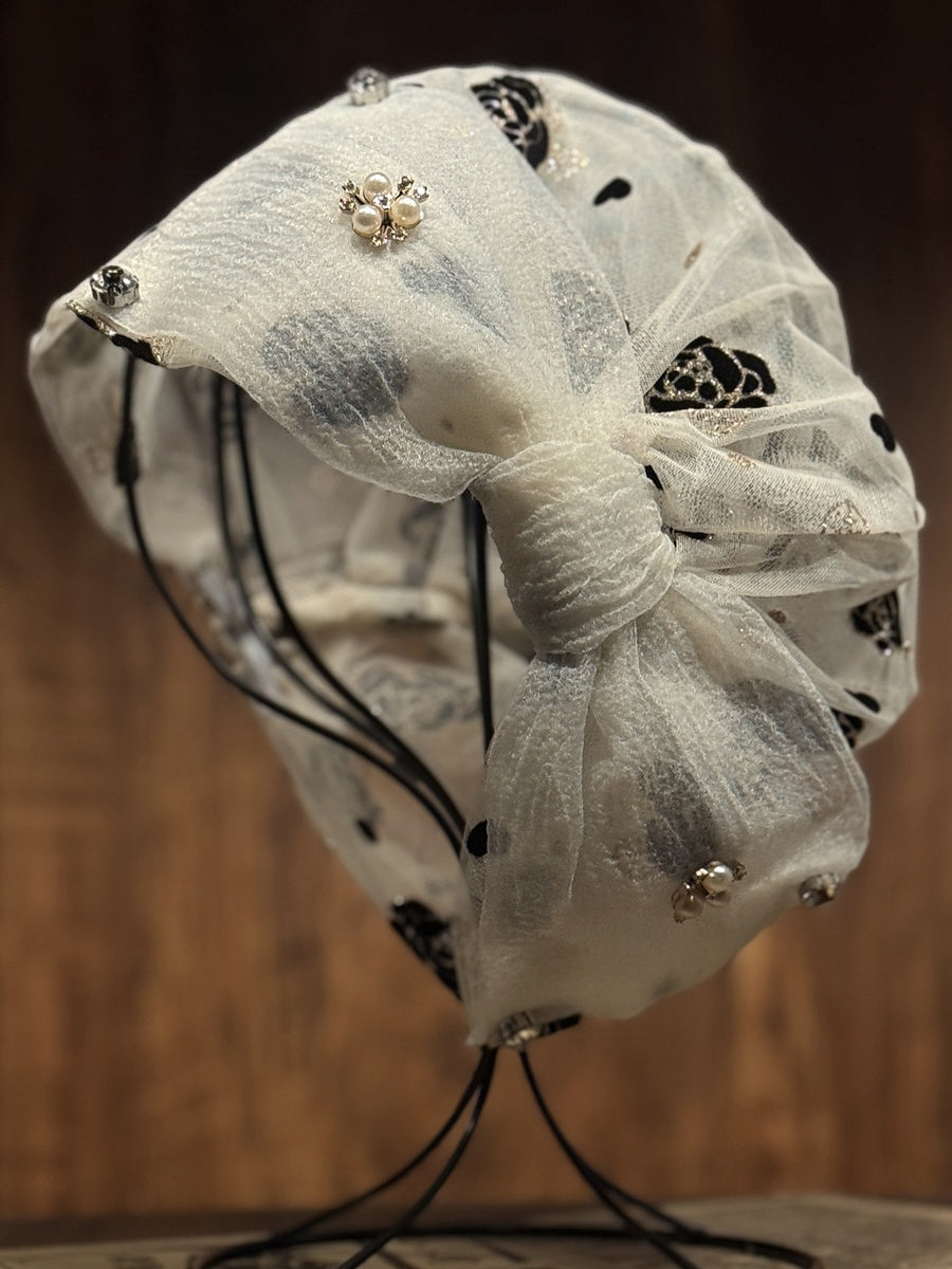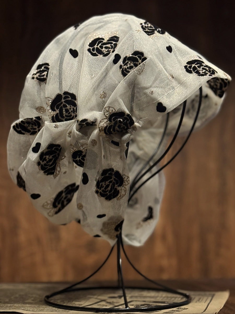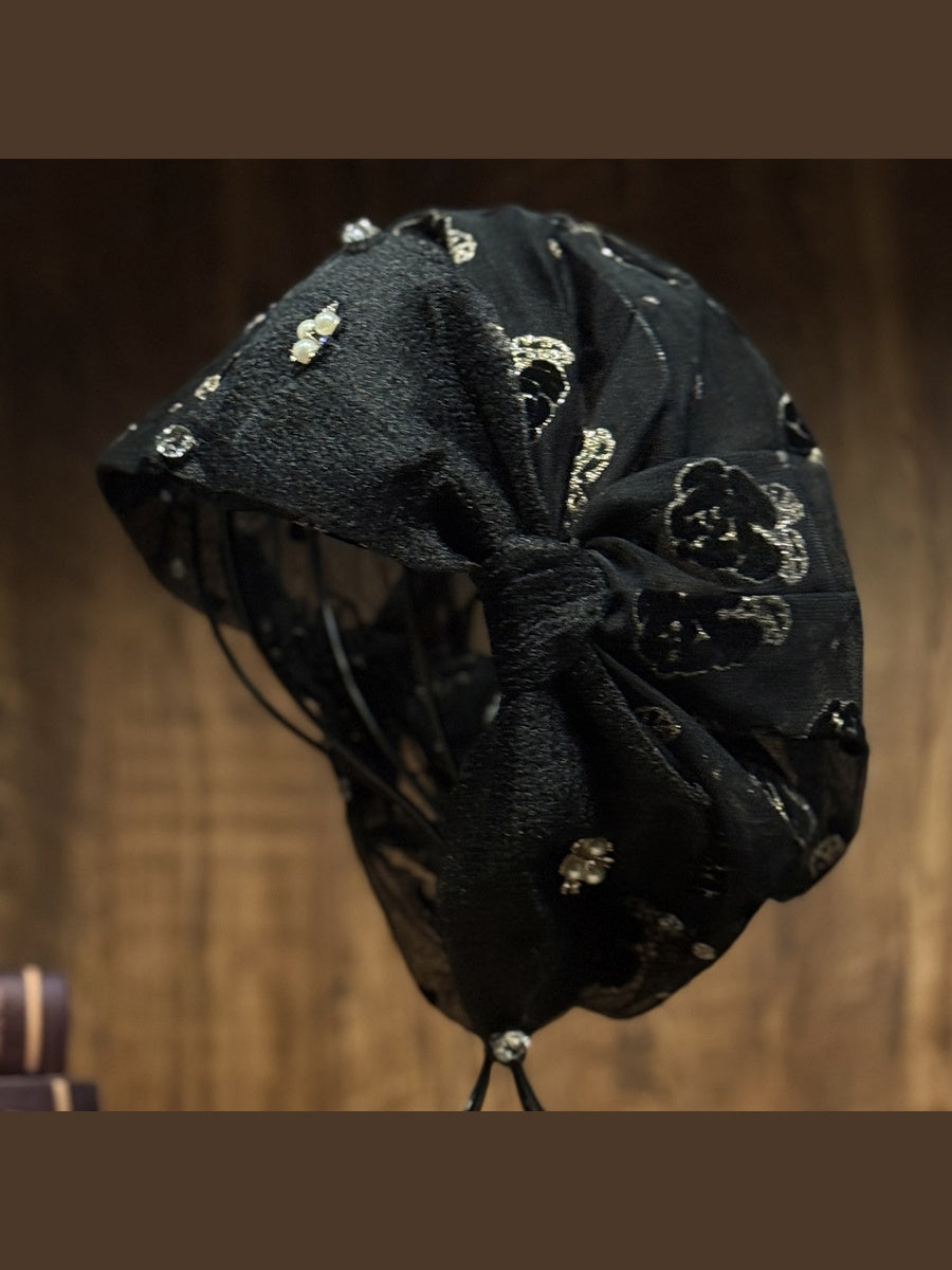 Women Spring Summer Rhinestone Floral Beaded Mesh Beanie Cap