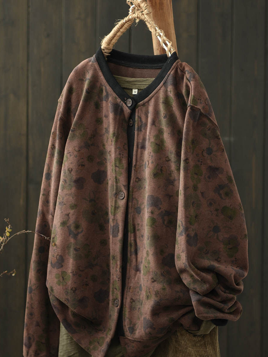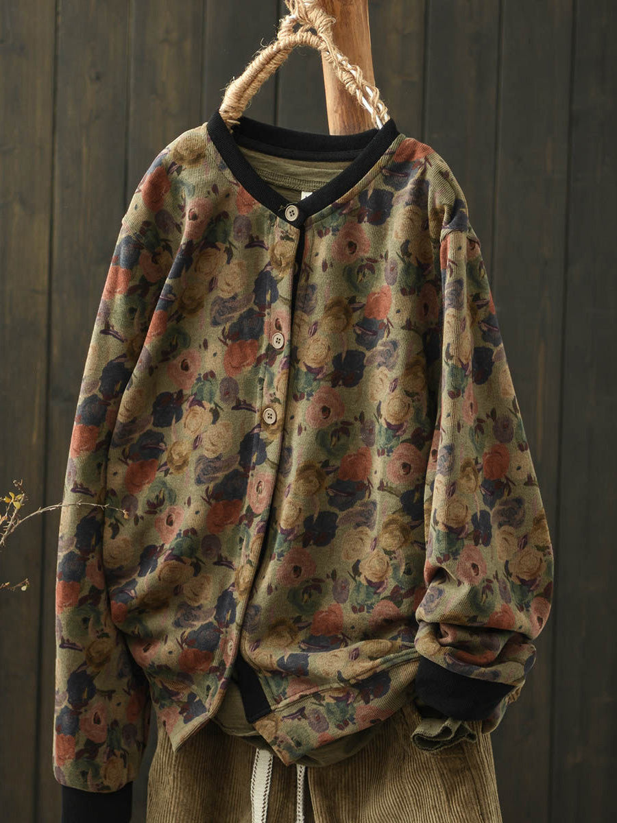 Women Spring Vintage Flower O-Neck Cotton Coat