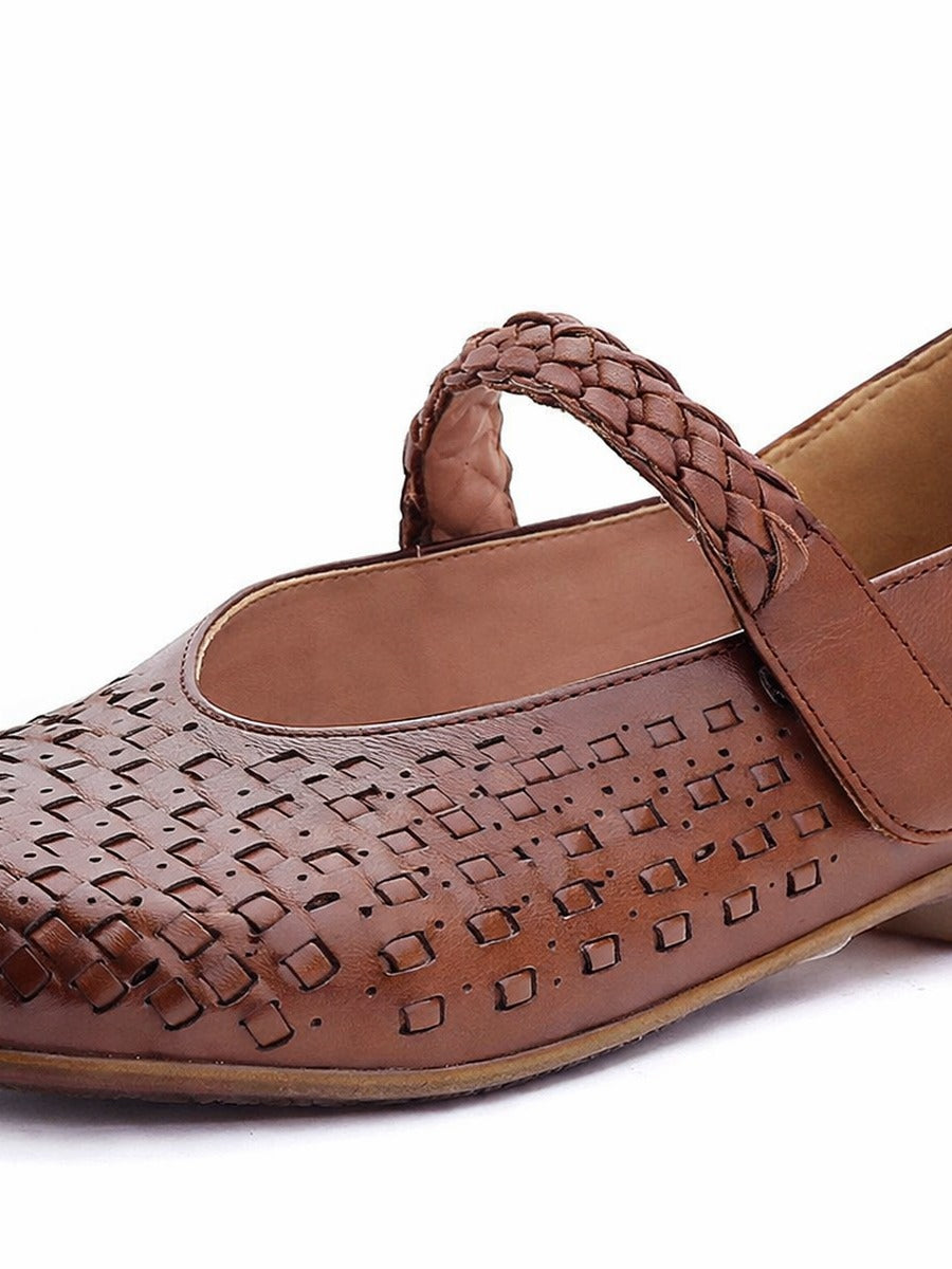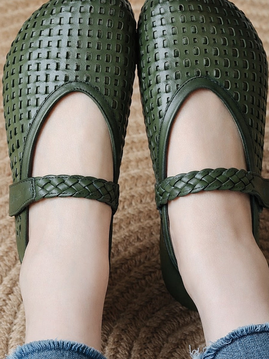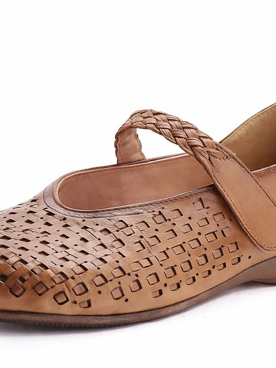 Women Spring Vintage Genuine Leather Cutout Mary Jane Flats