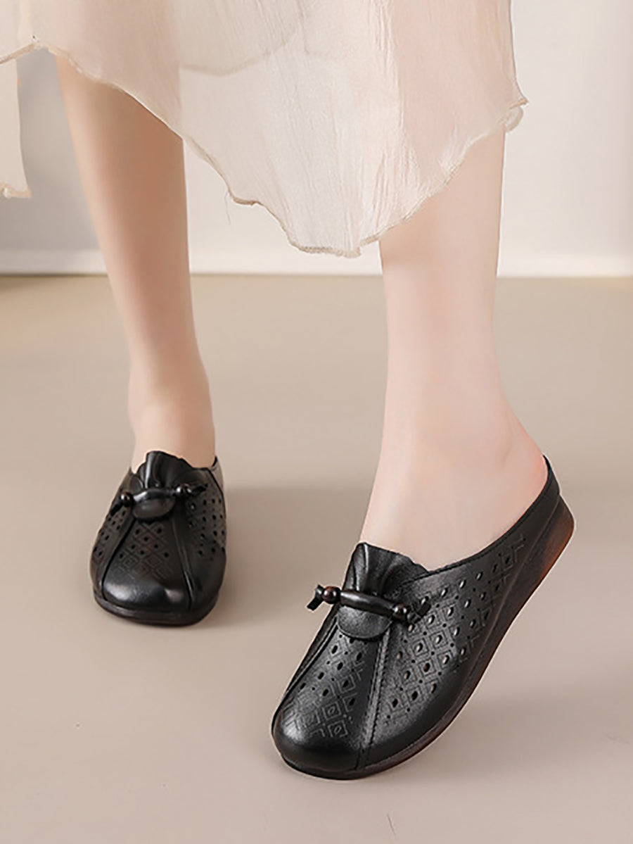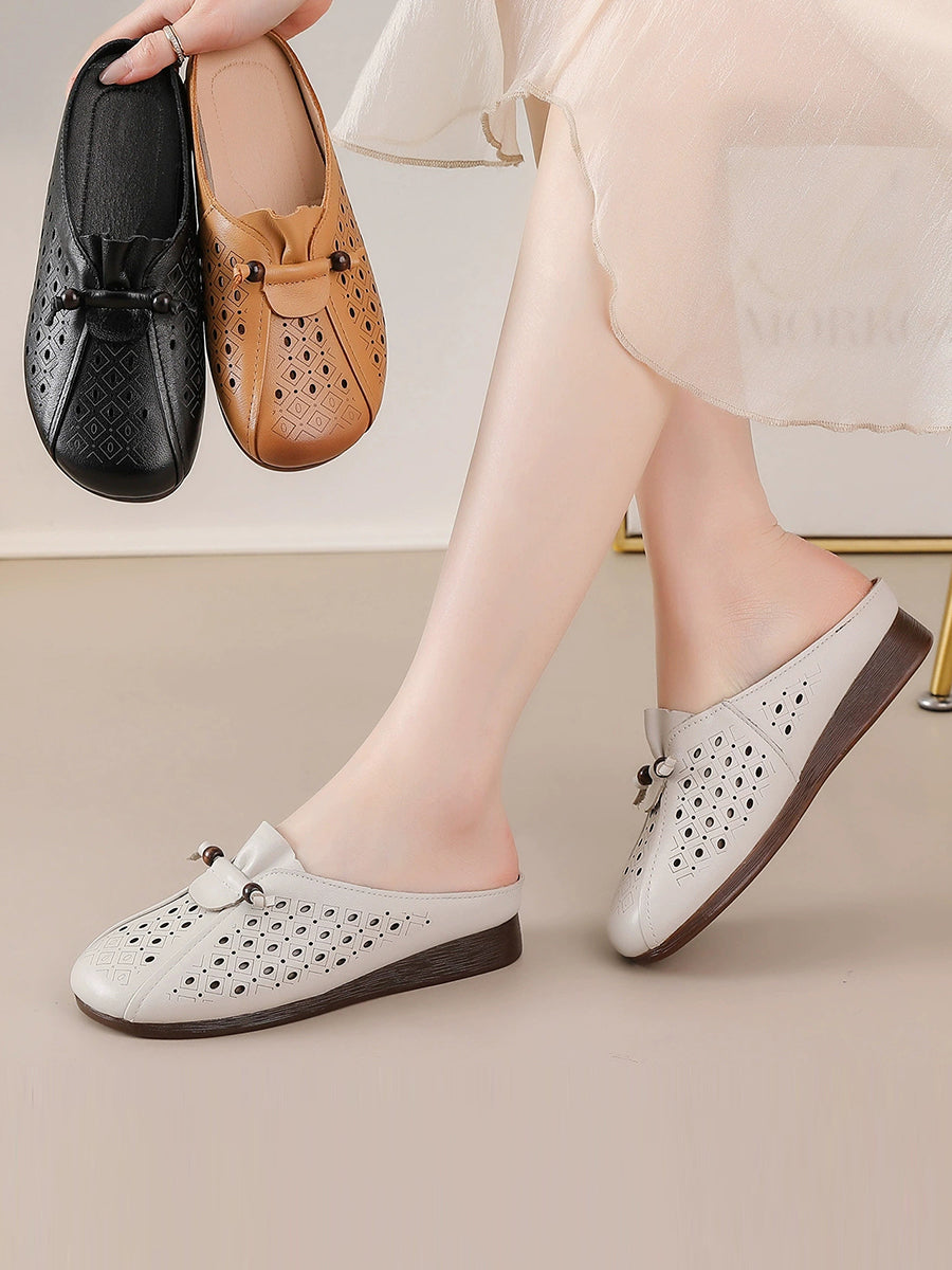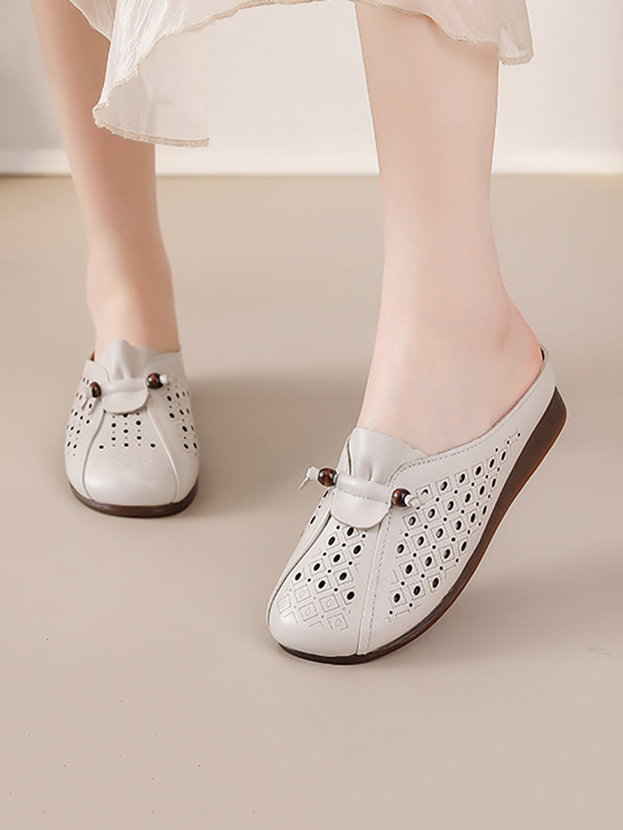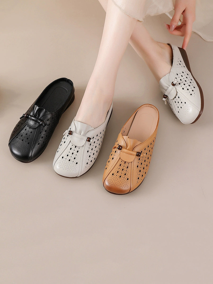 Women Summe Retro Genuine Leather Slippers
