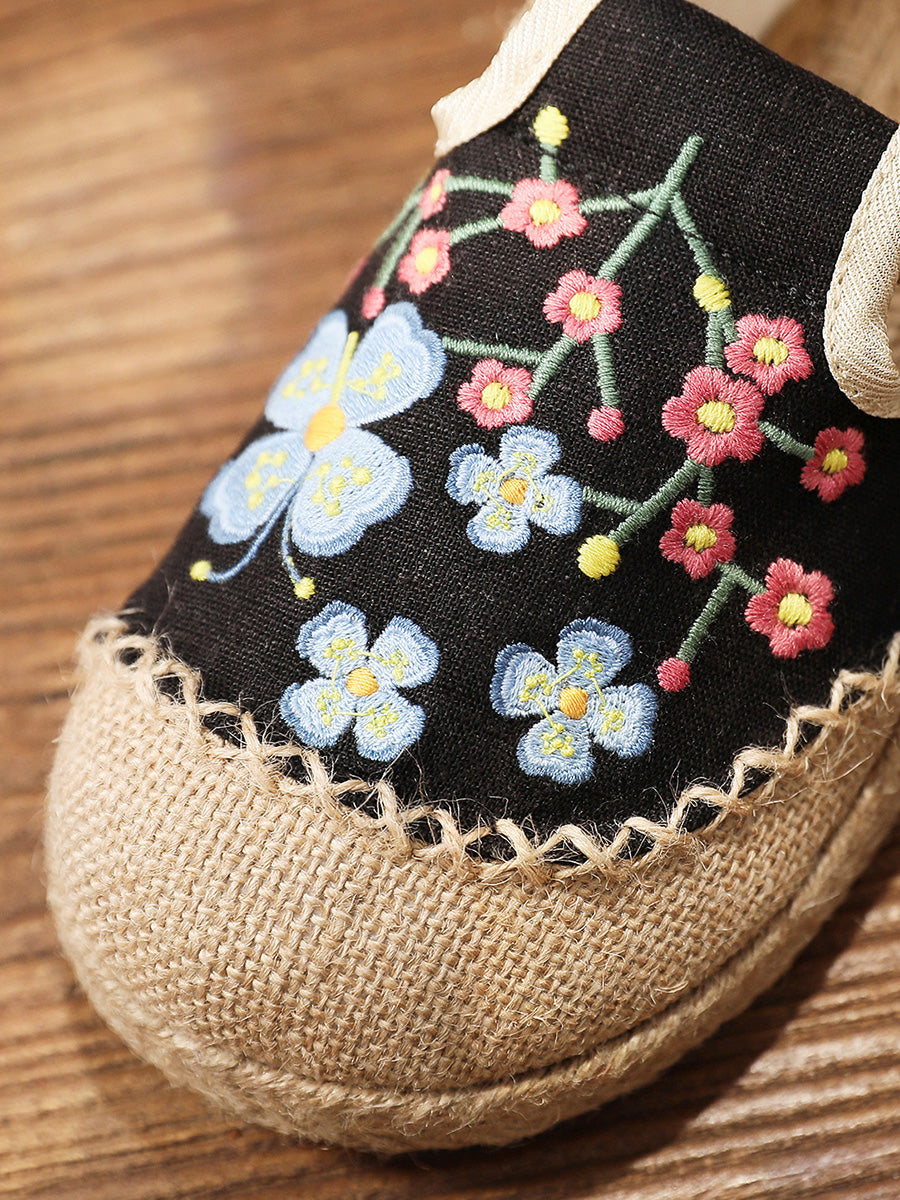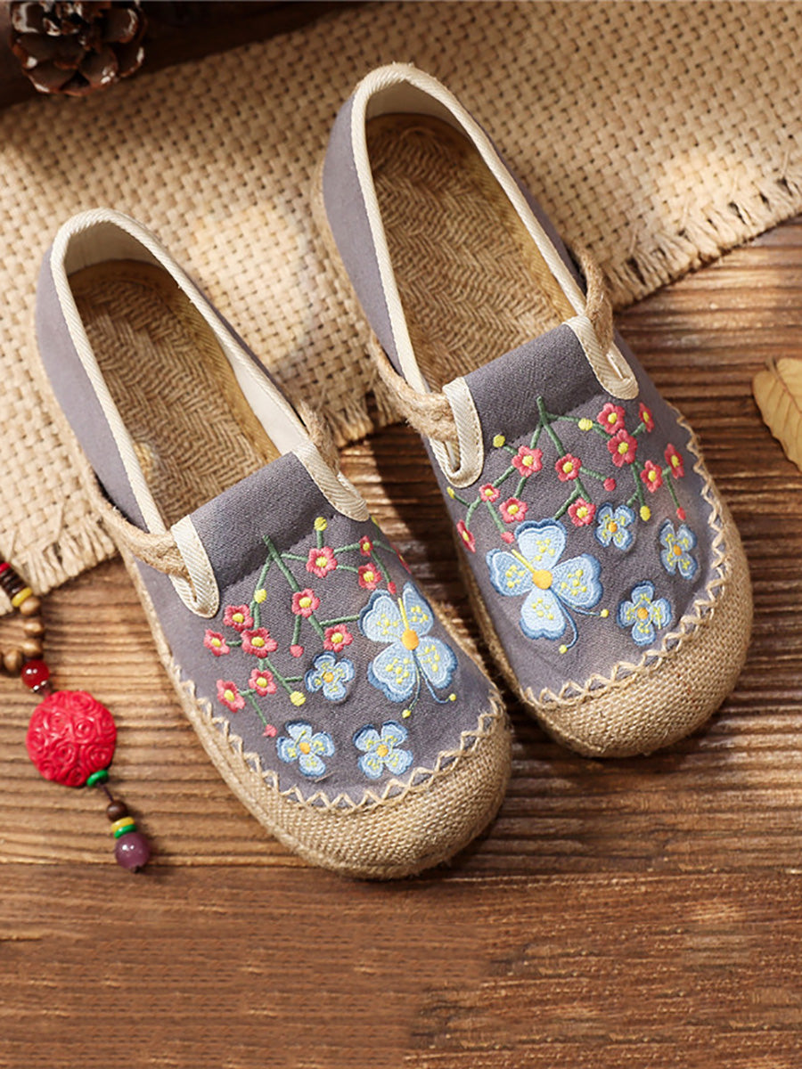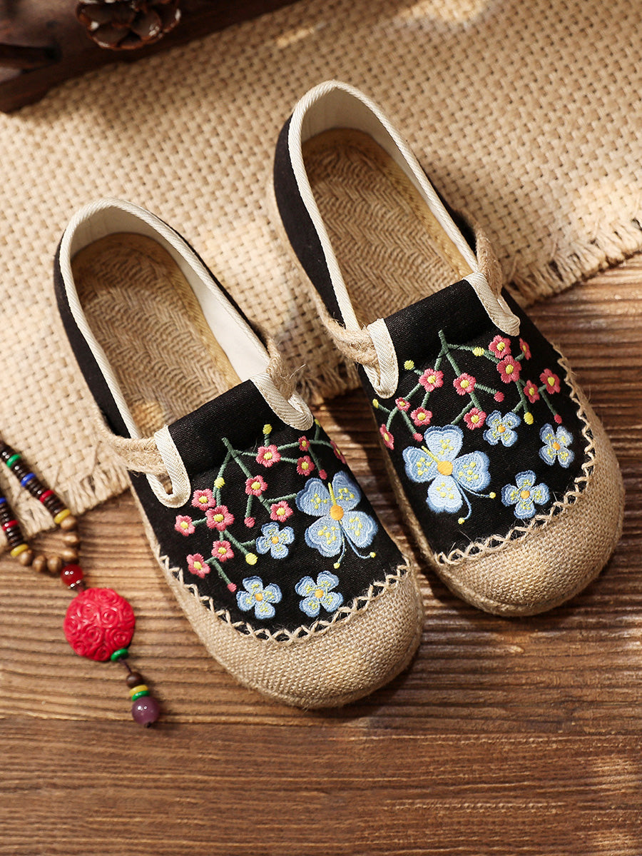 Women Summer Artsy Flower Embroidery Canvas Shoes