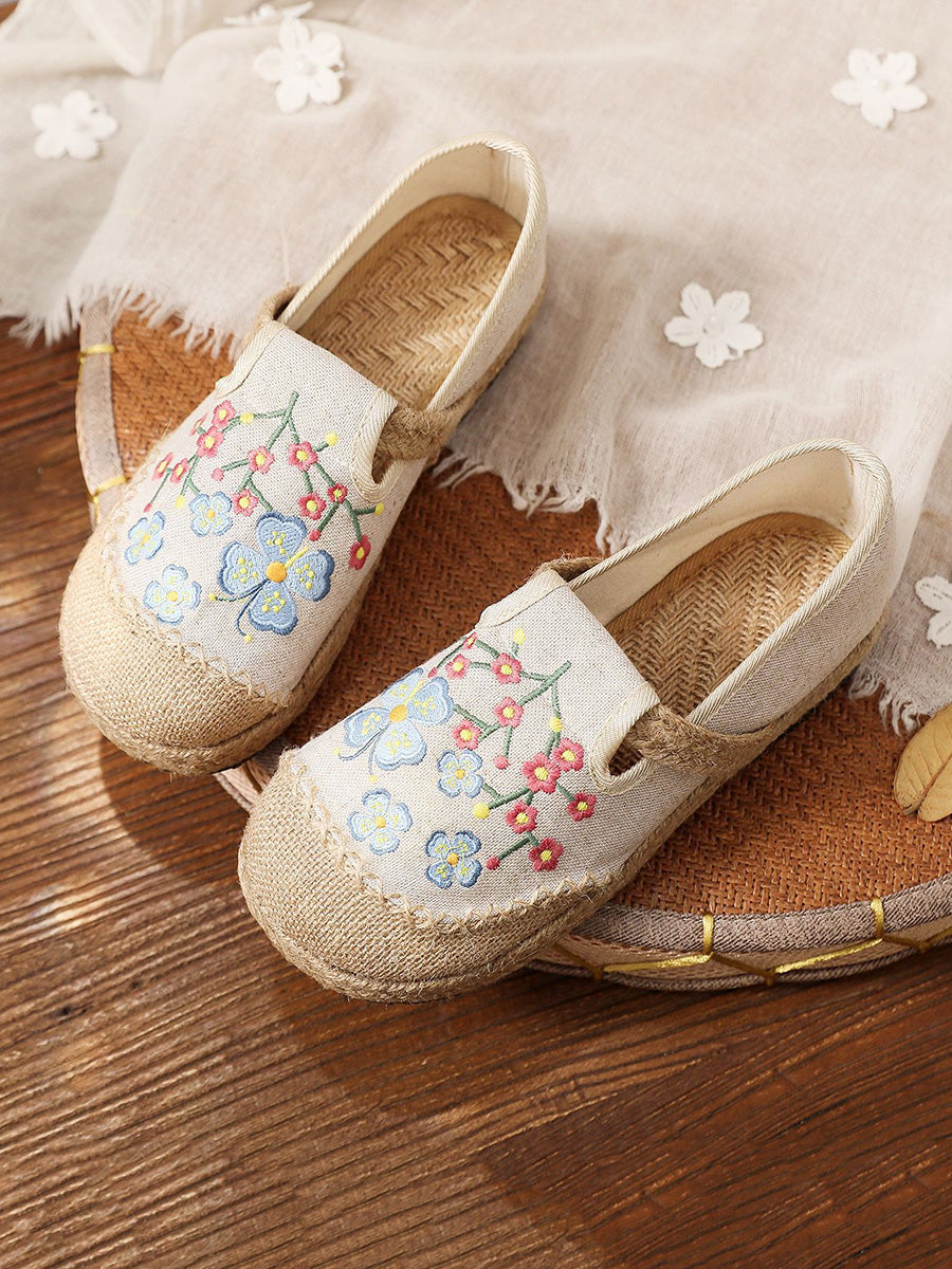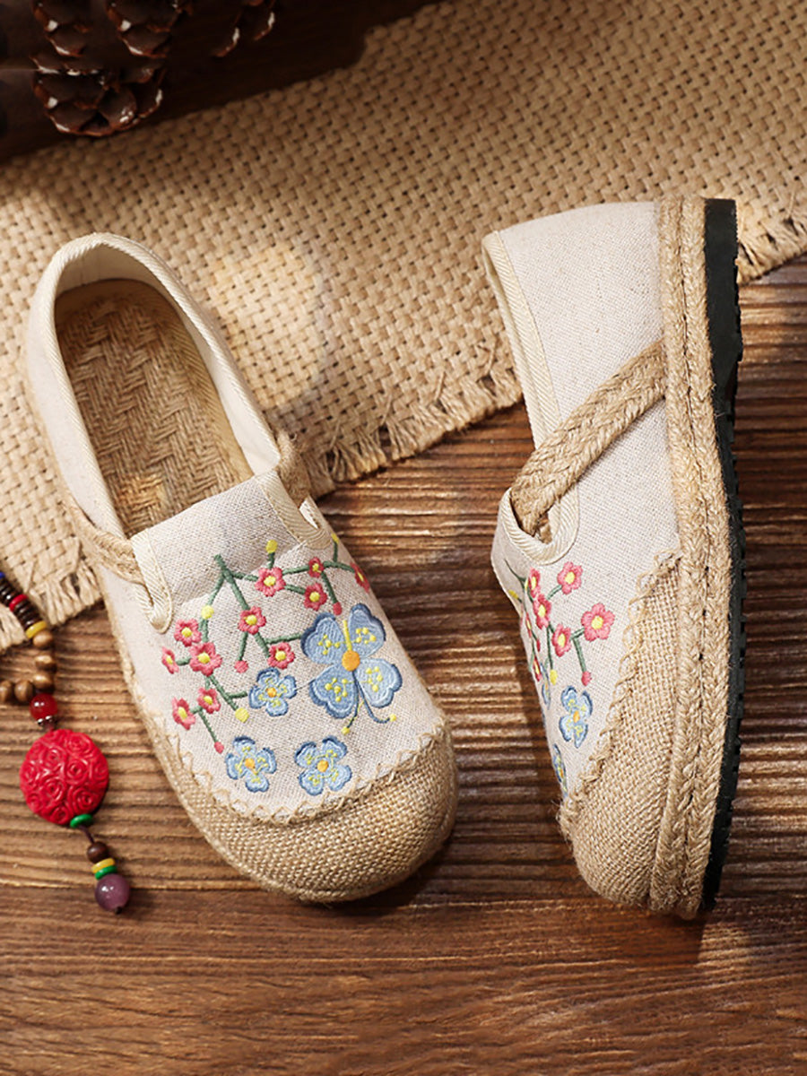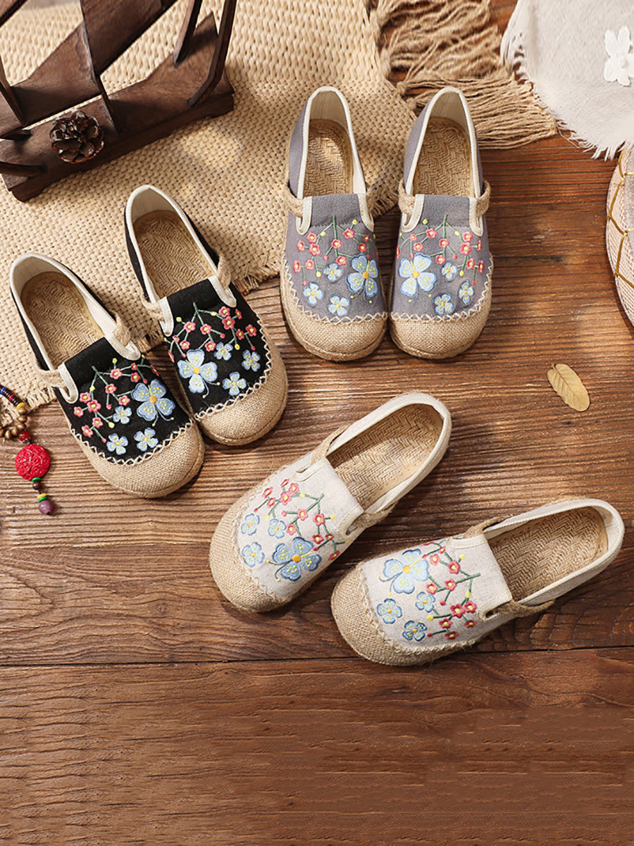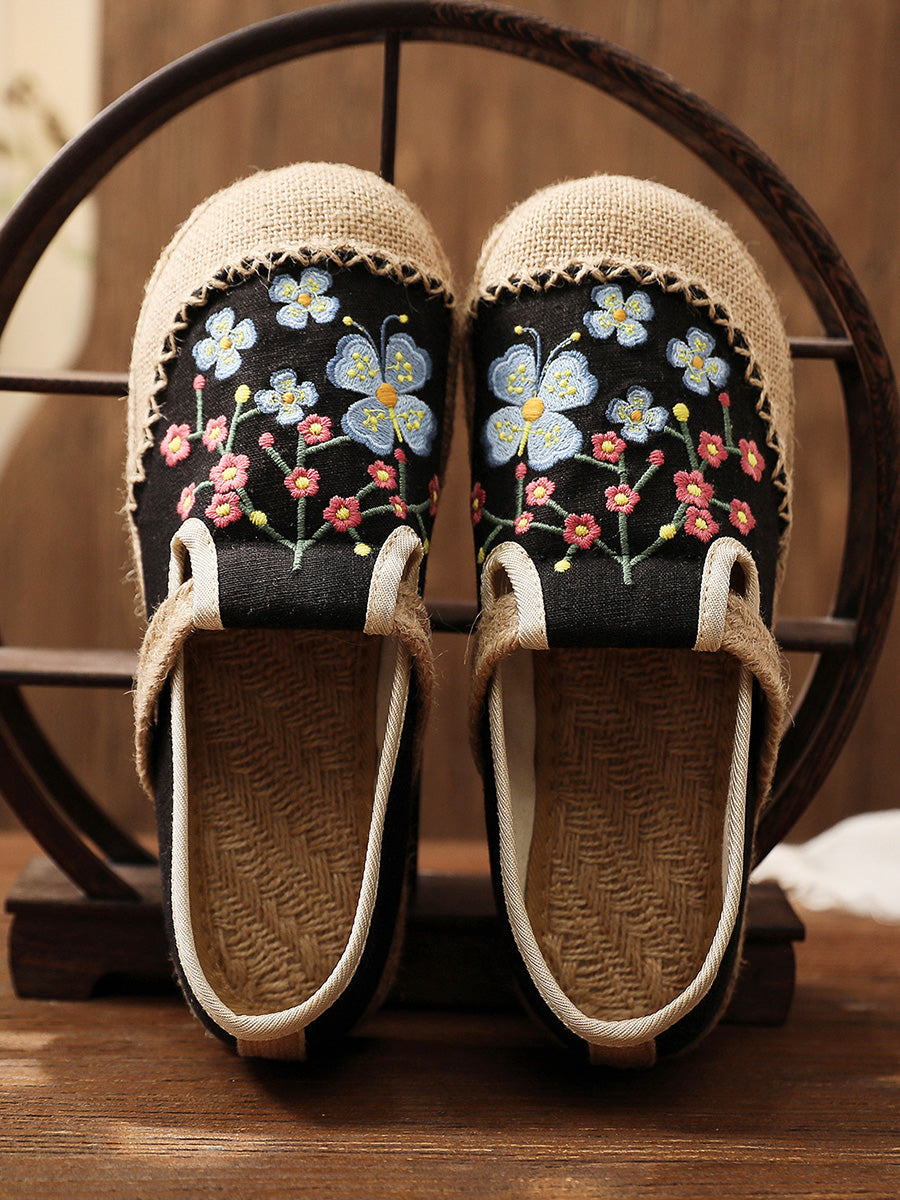 Women Summer Artsy Flower Embroidery Canvas Shoes
