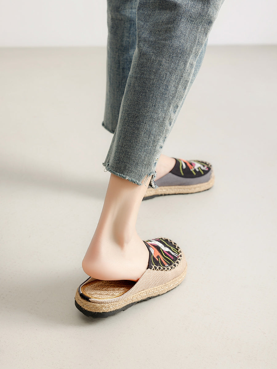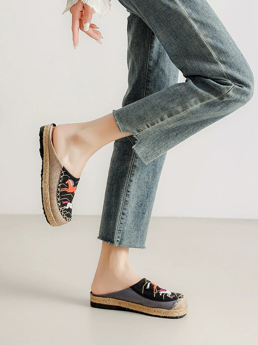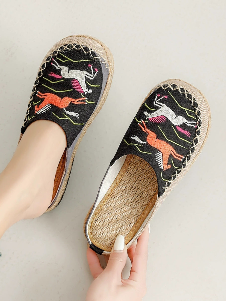Women Summer Artsy Horse Canvas Linen Slippers
