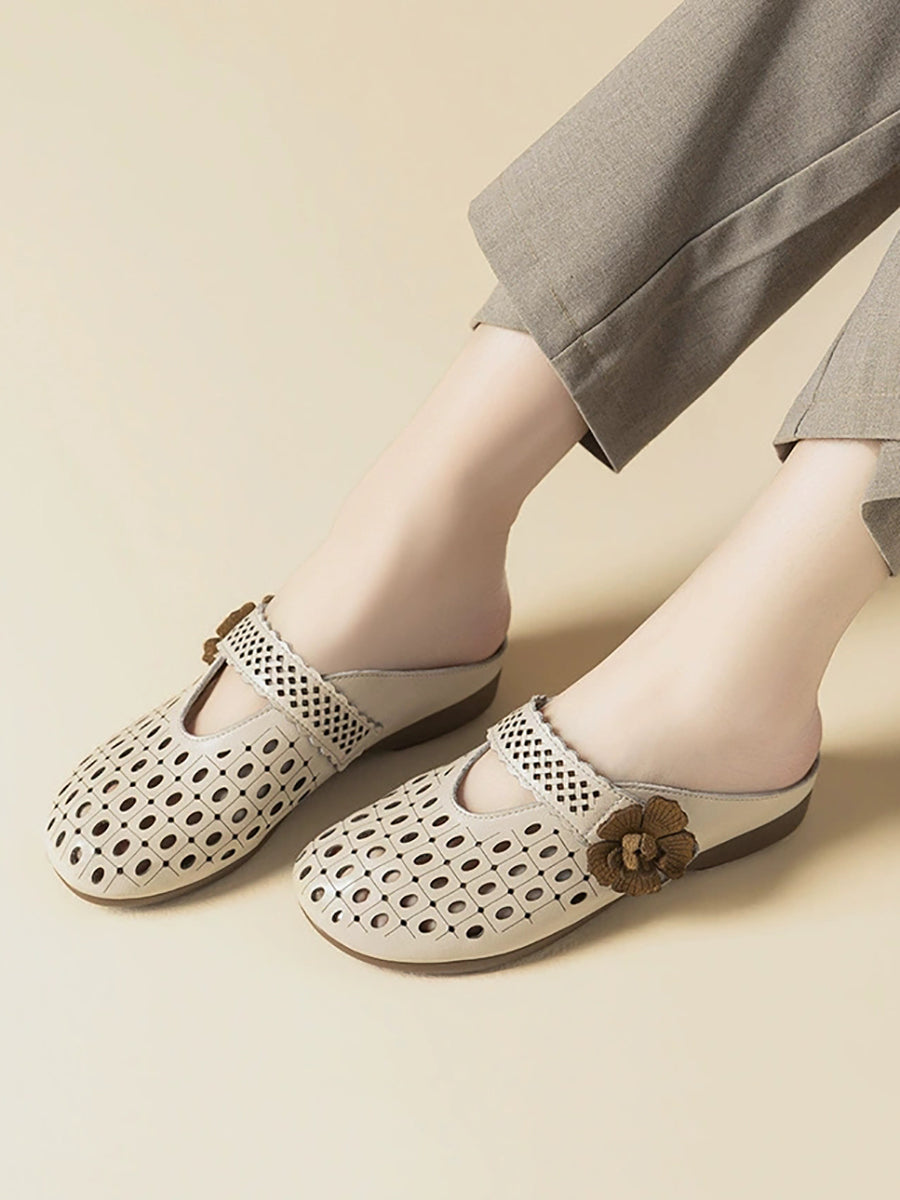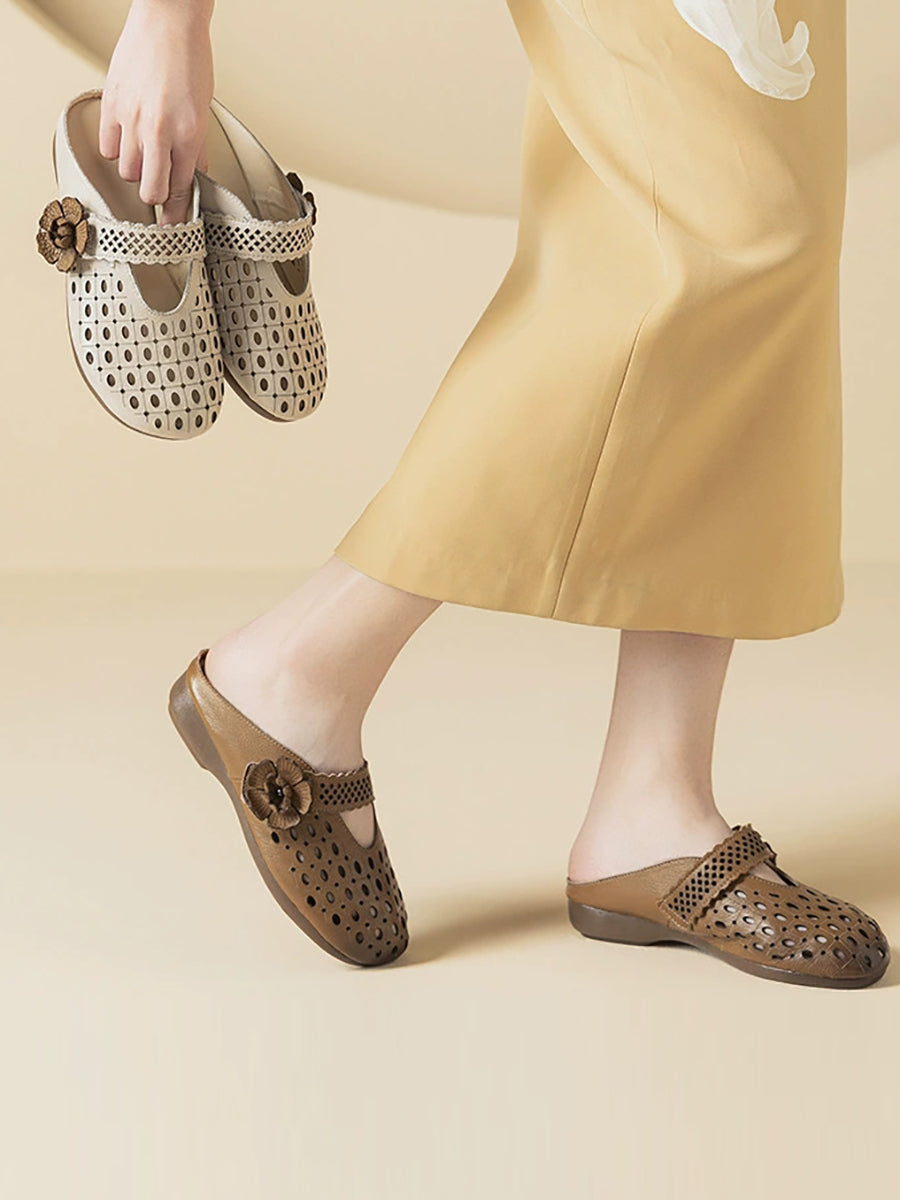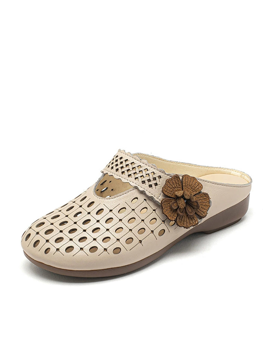 Women Summer Artsy Leather Flower Slippers