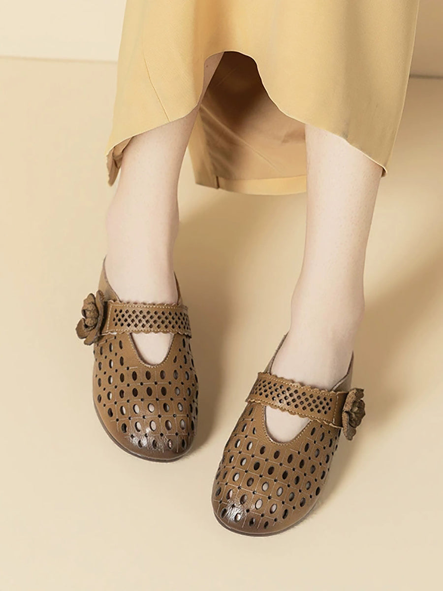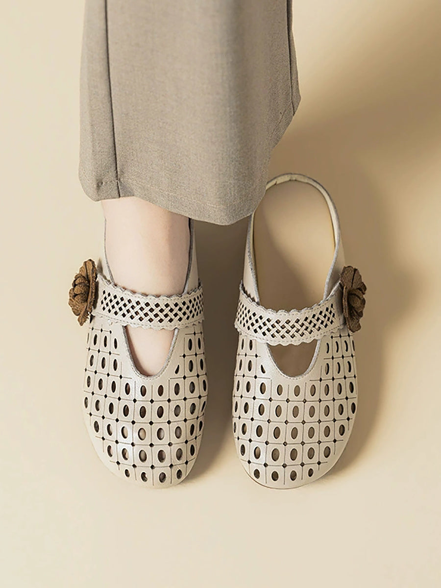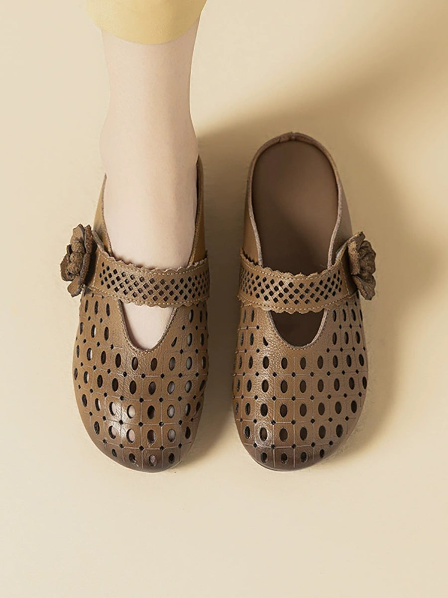Women Summer Artsy Leather Flower Slippers