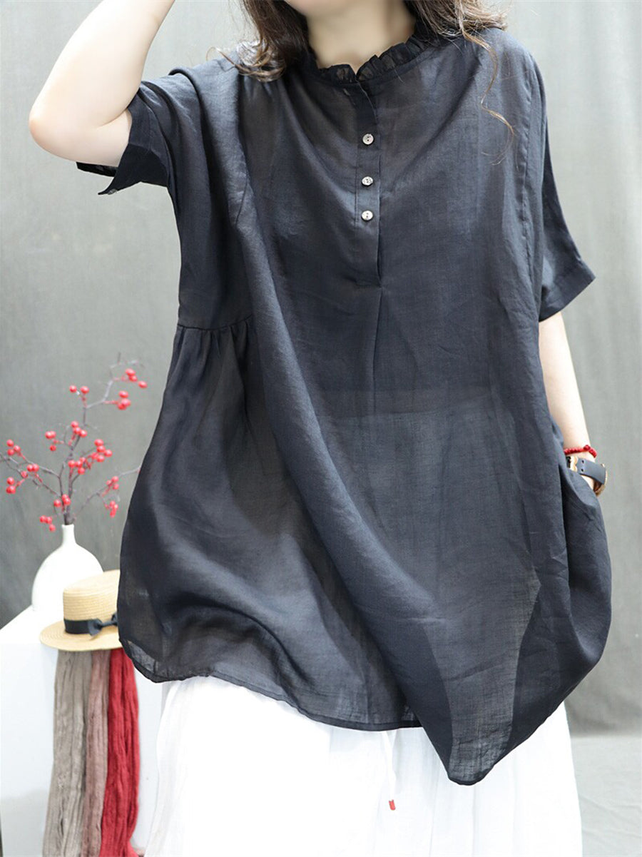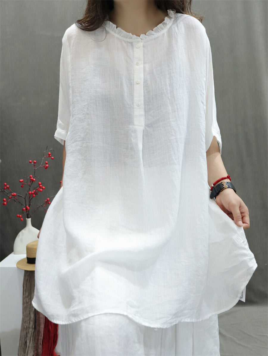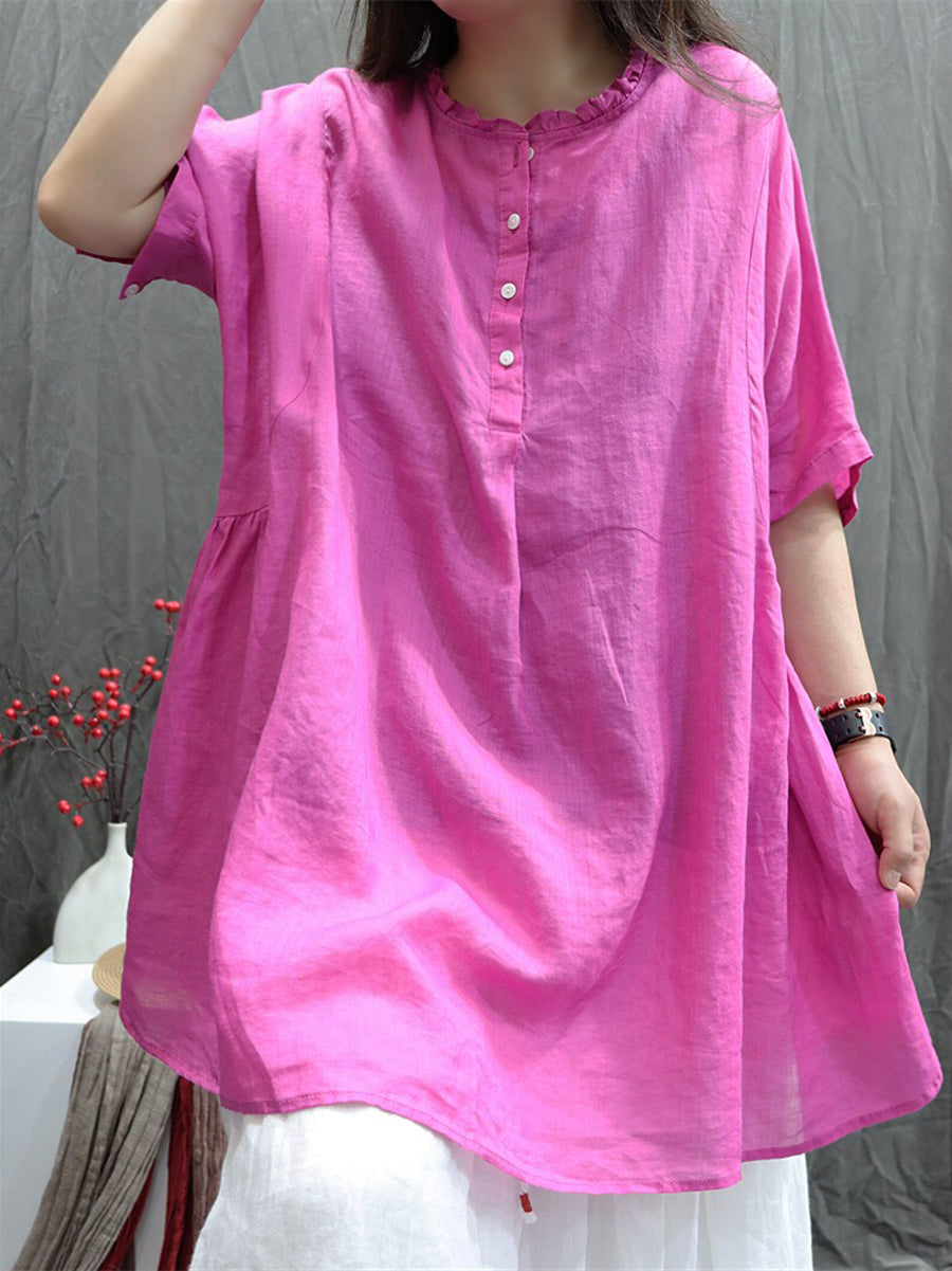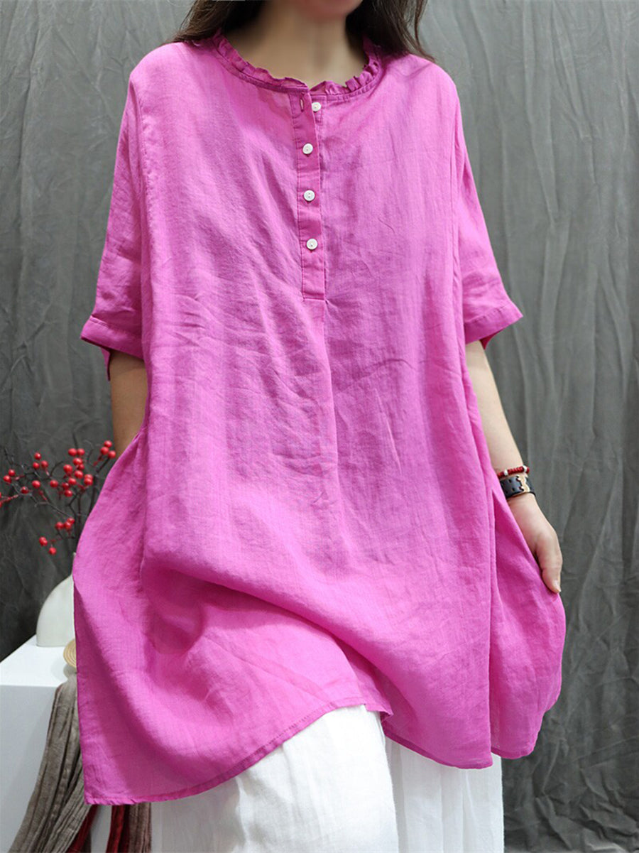 Women Summer Artsy O-Neck 100%Ramie Blouse