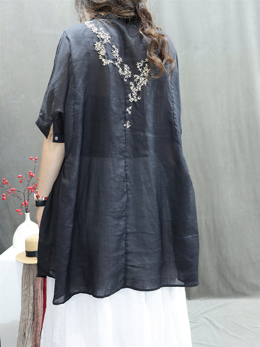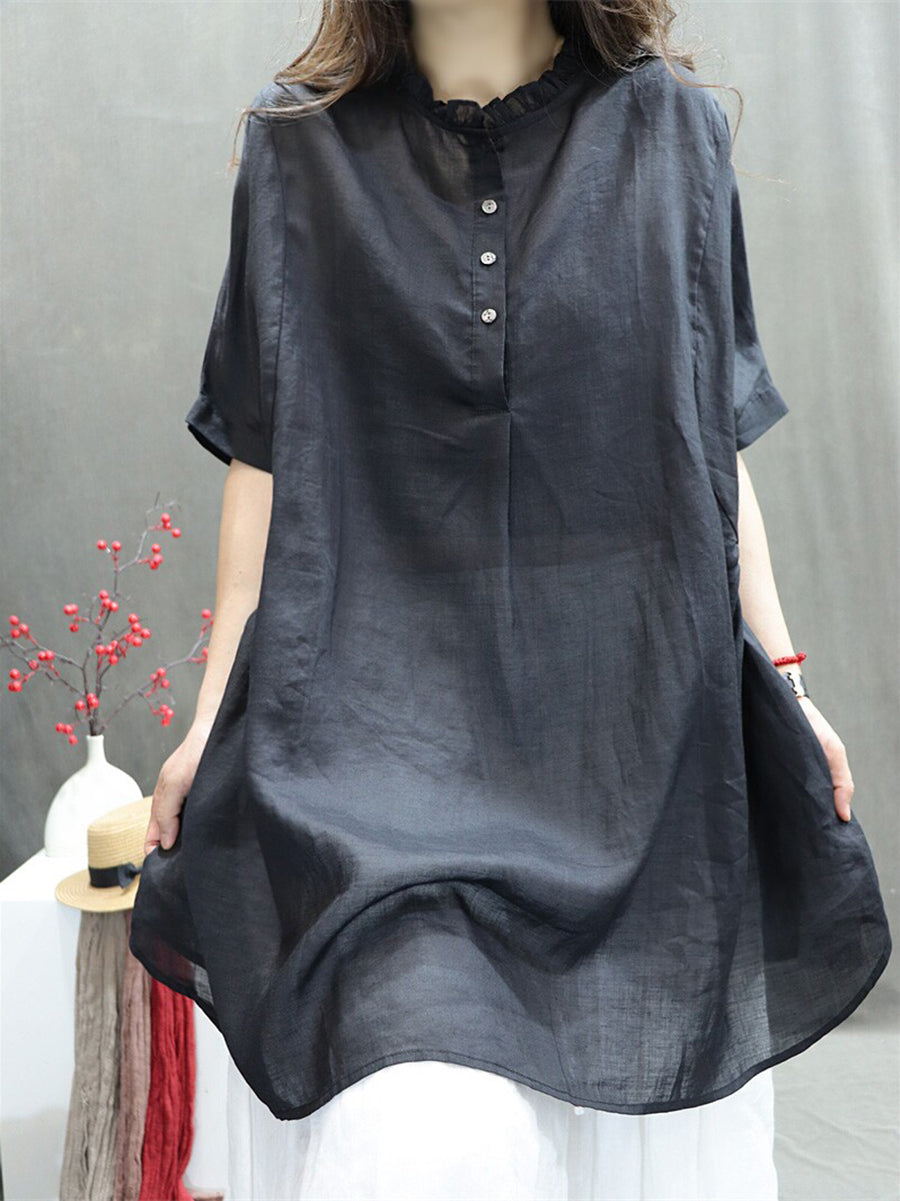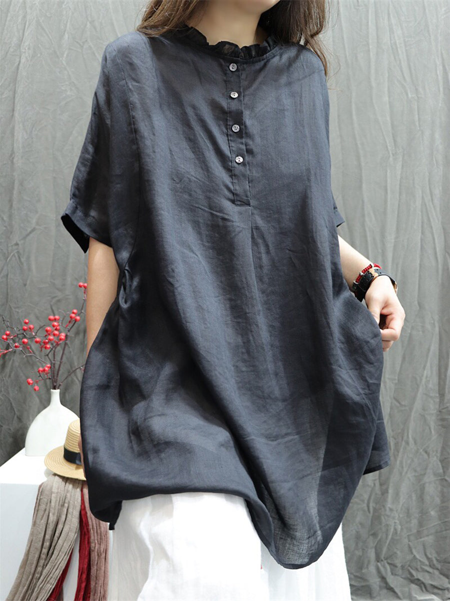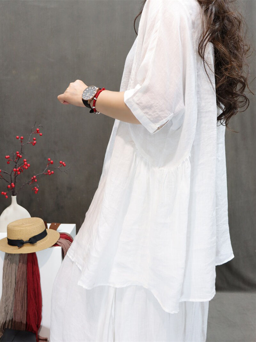 Women Summer Artsy O-Neck 100%Ramie Blouse