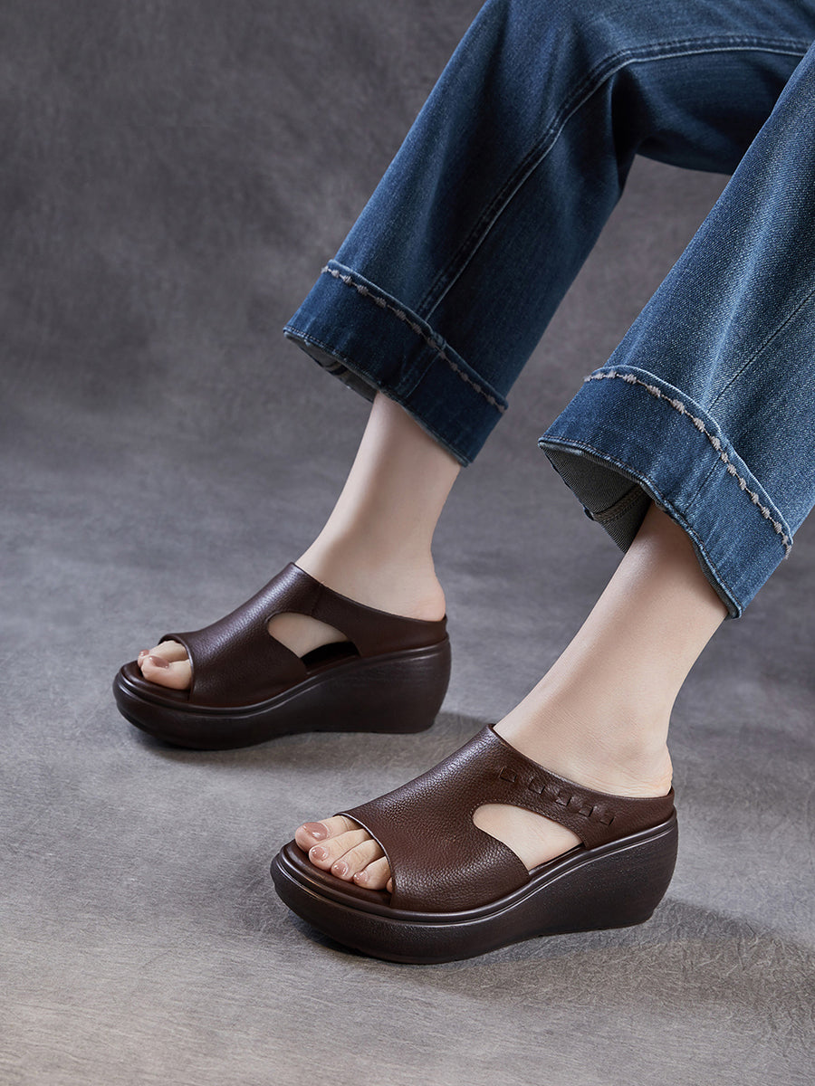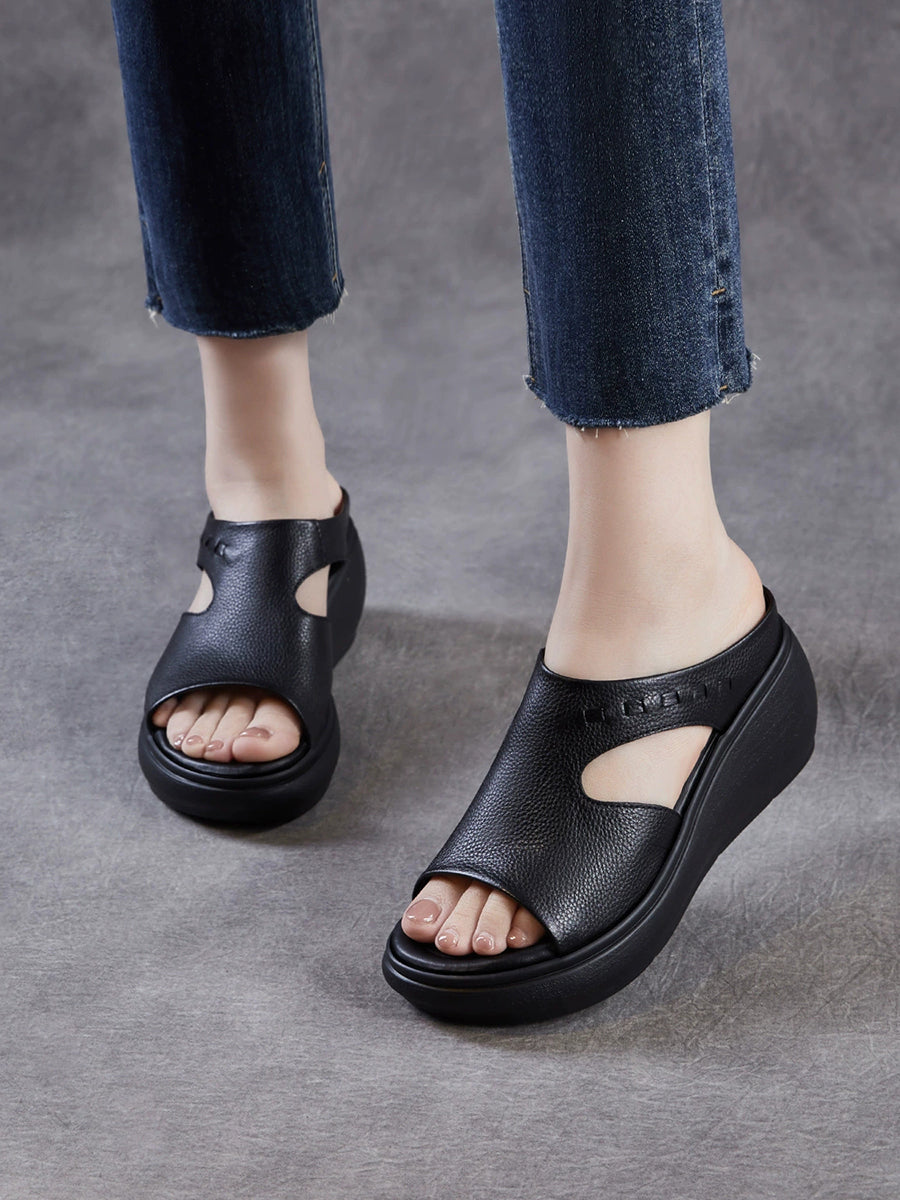 Women Summer Casual Genuine Leather Platform Sandals