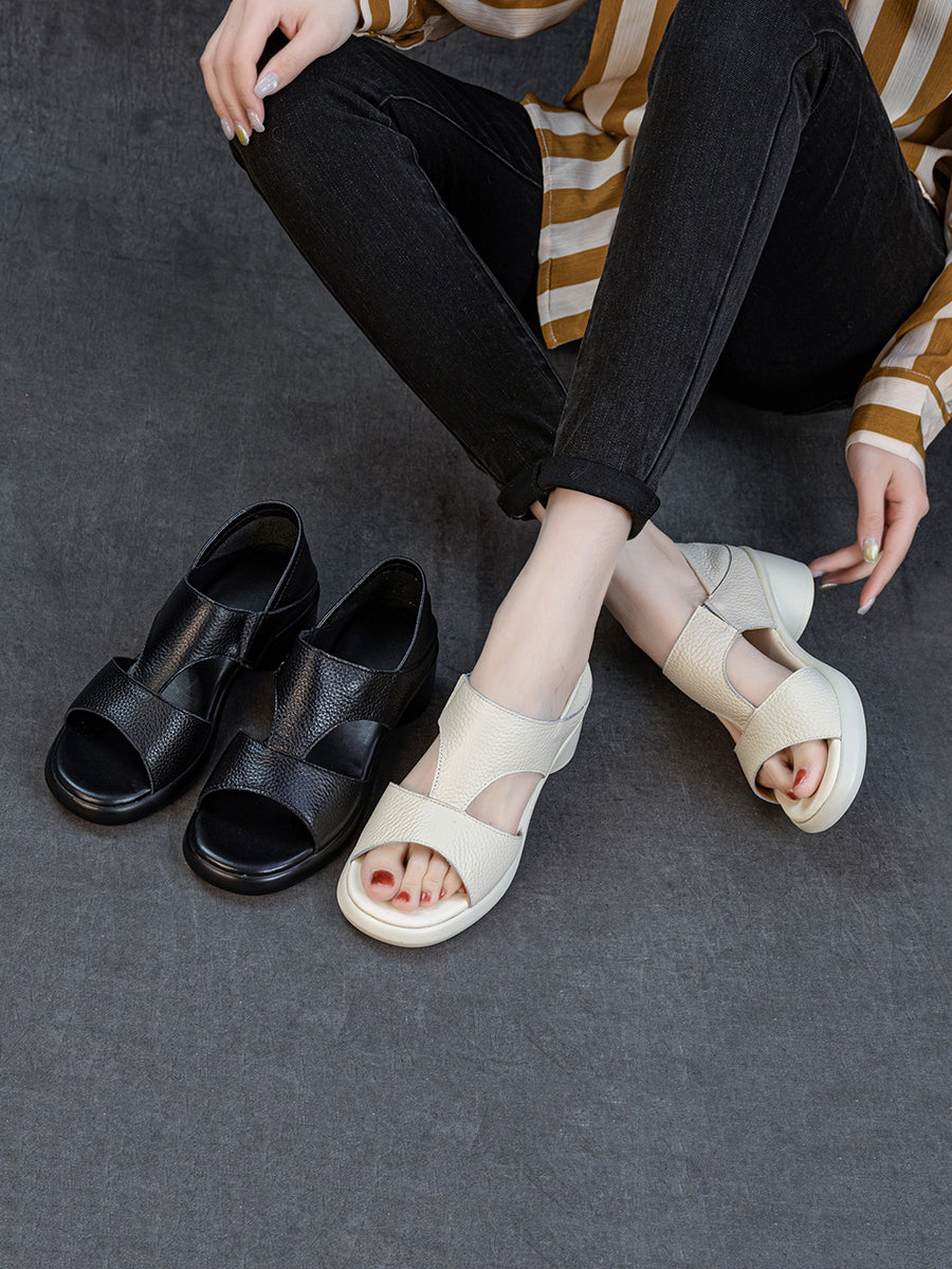 Women Summer Casual Genuine Leather Platform Sandals