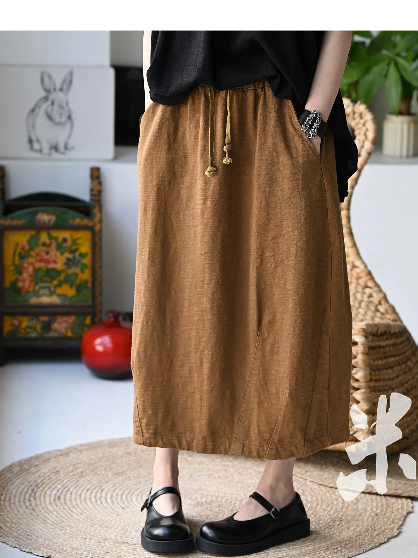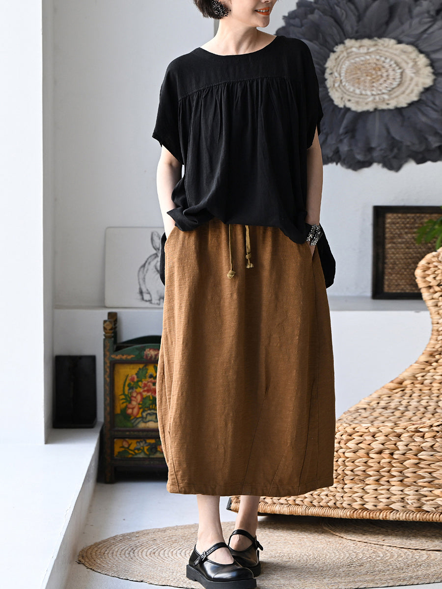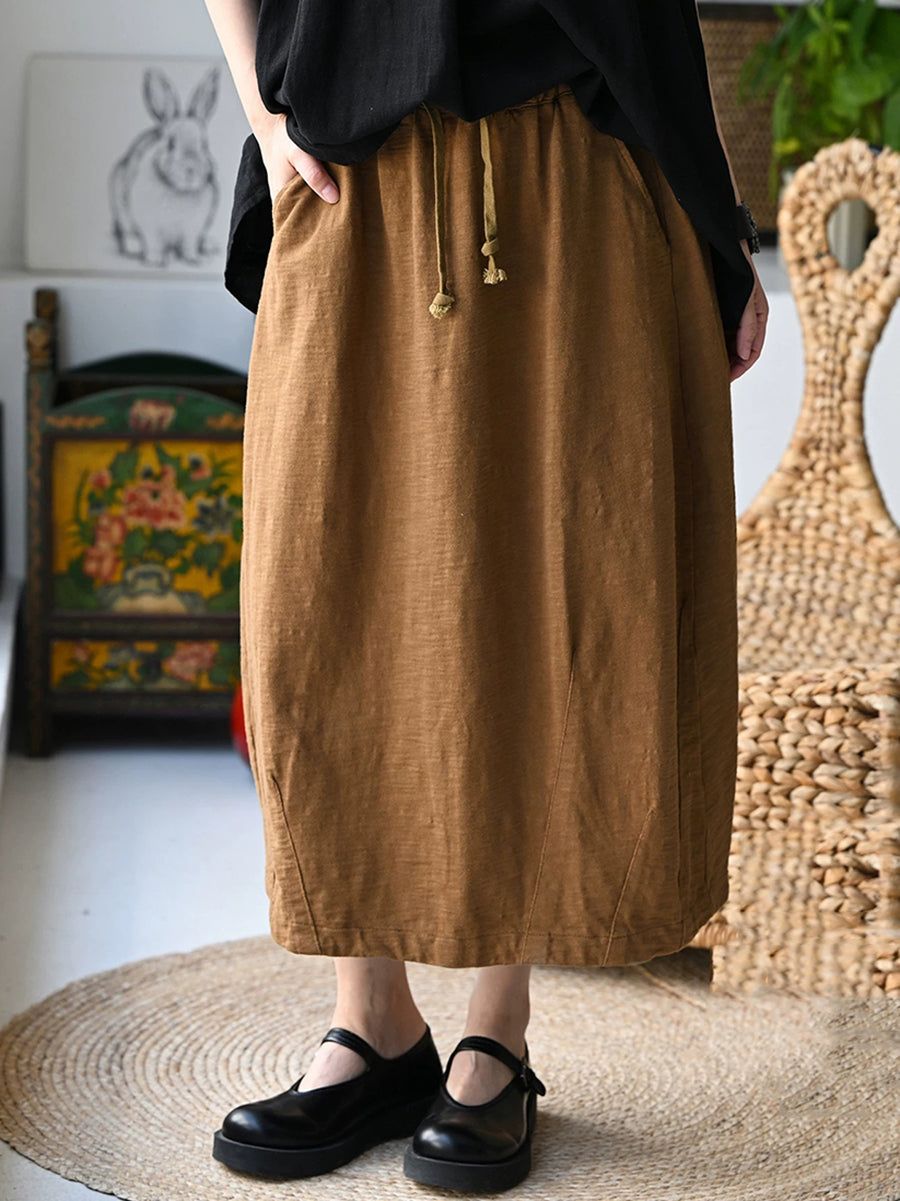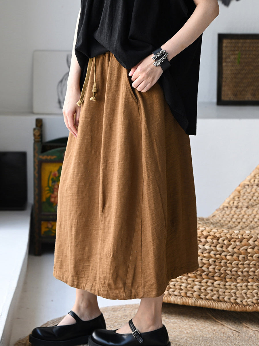 Women Summer Casual Pure Color 100%Cotton Skirt