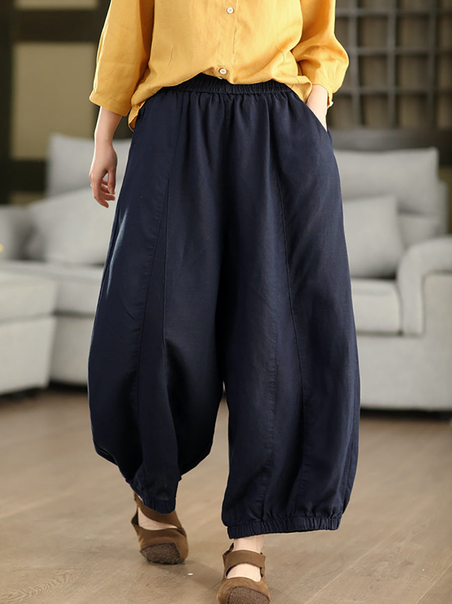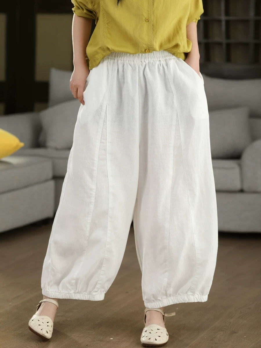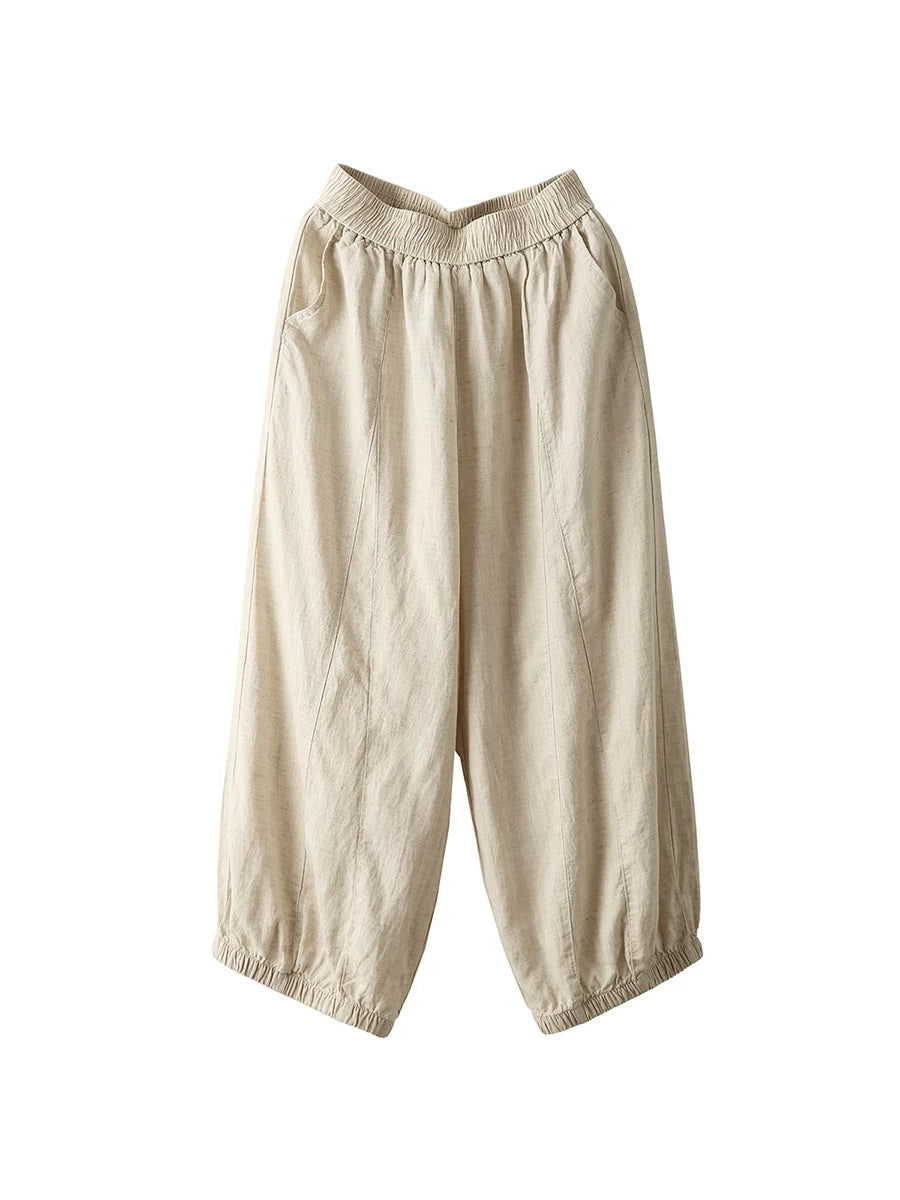 Women Summer Casual Pure Color 100%Linen Bloomers
