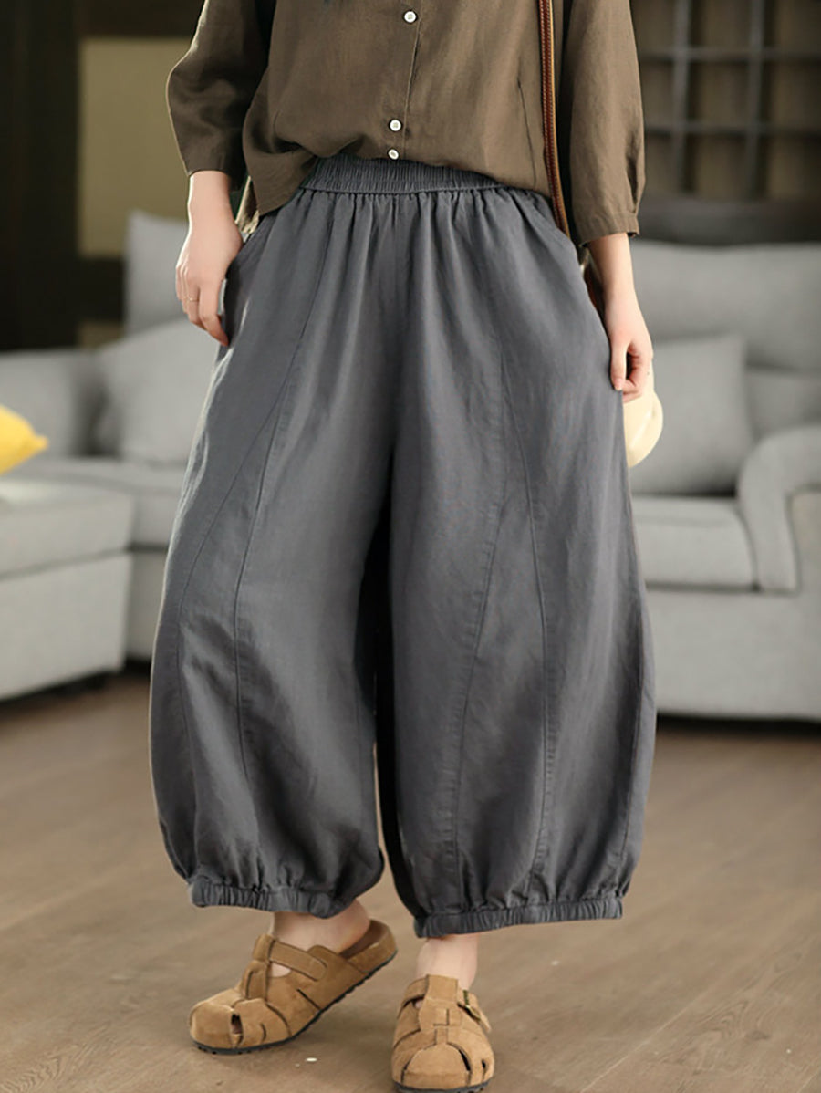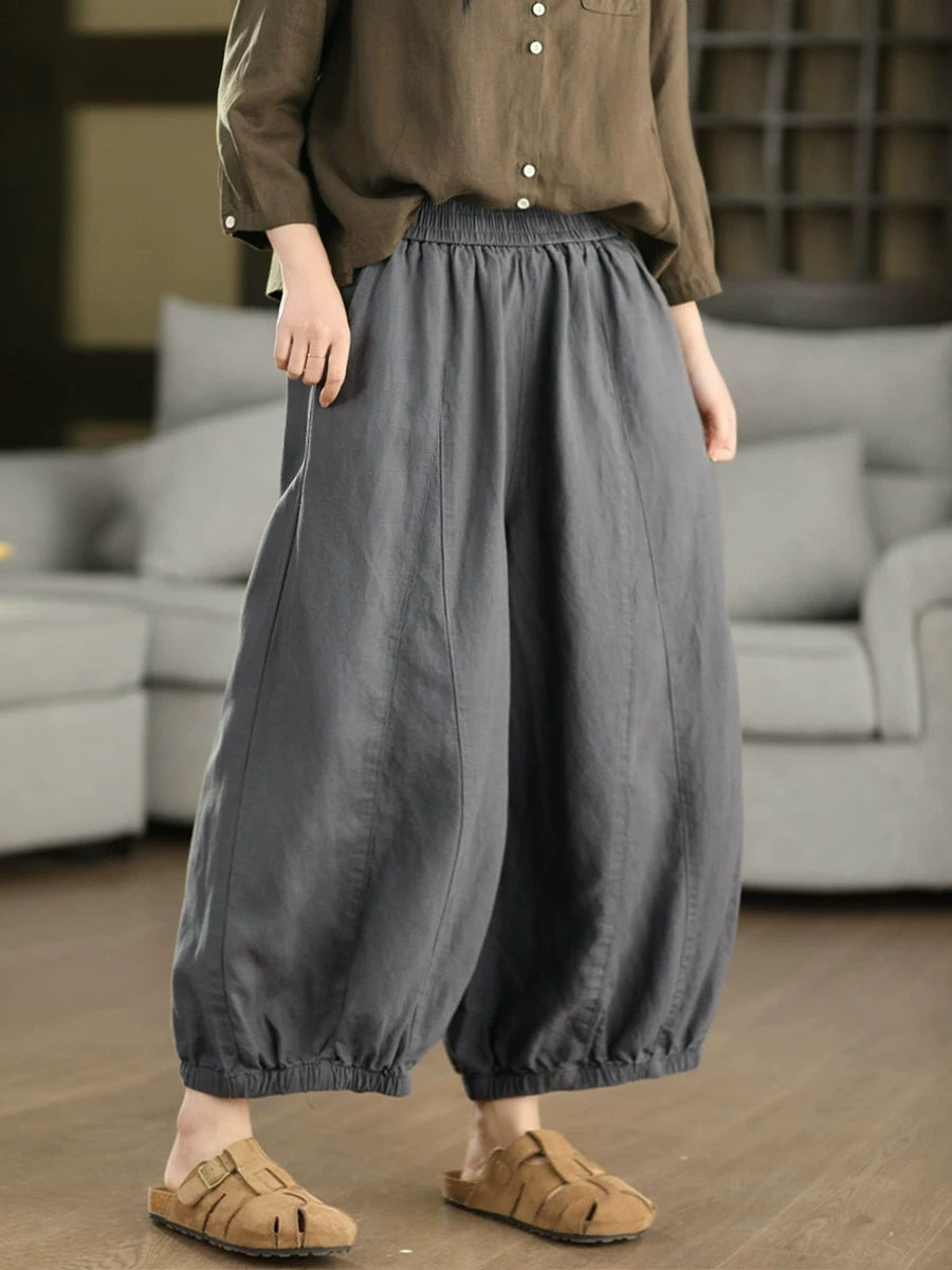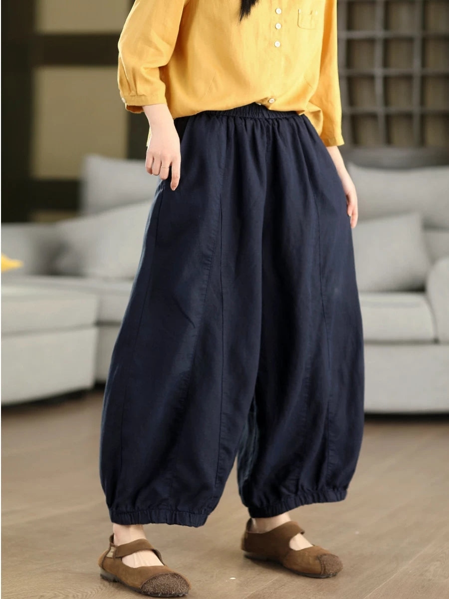 Women Summer Casual Pure Color 100%Linen Bloomers