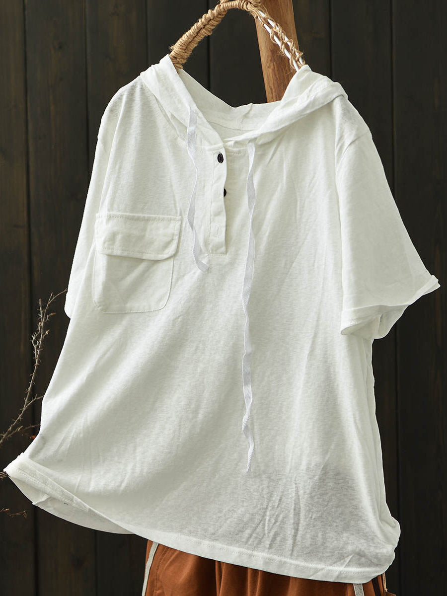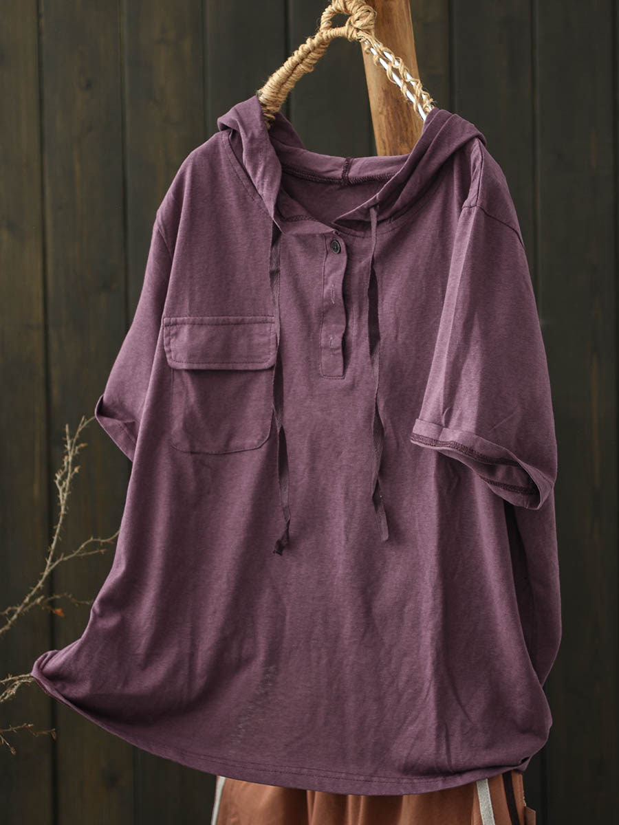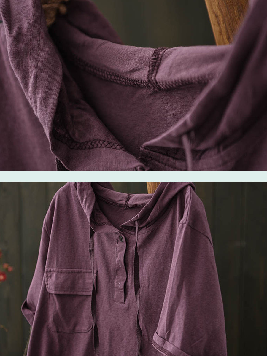 Women Summer Casual Pure Color Cotton Hoodie