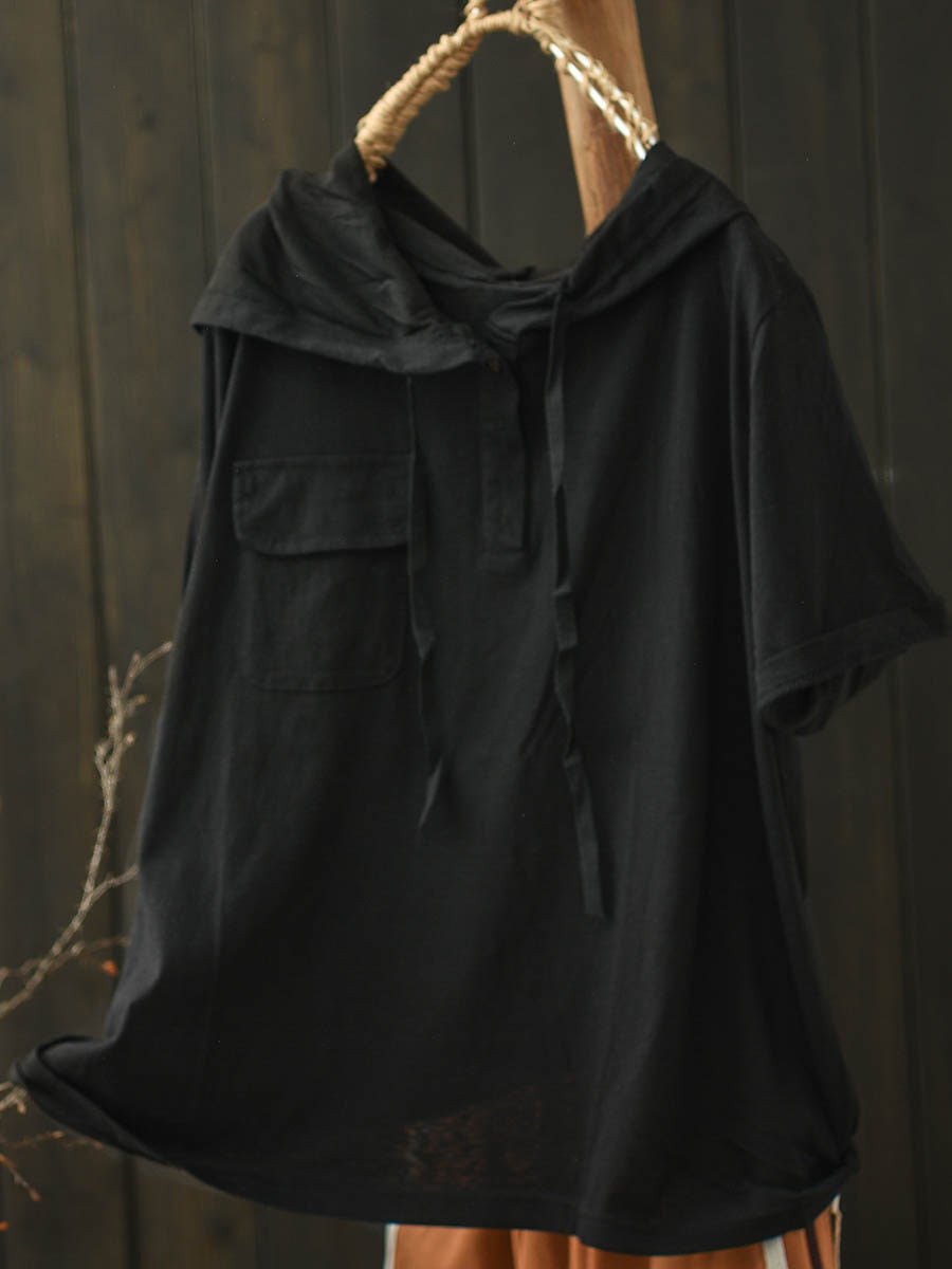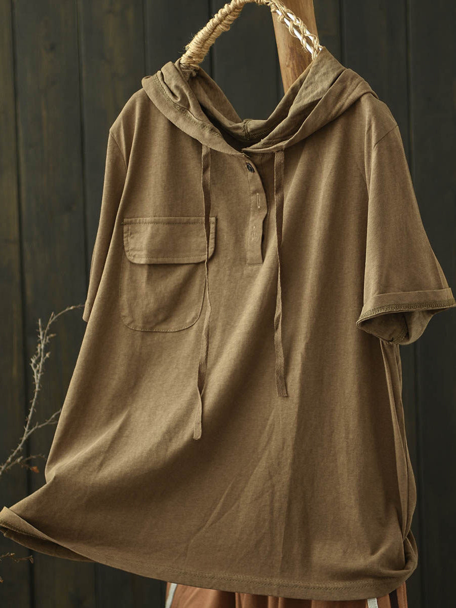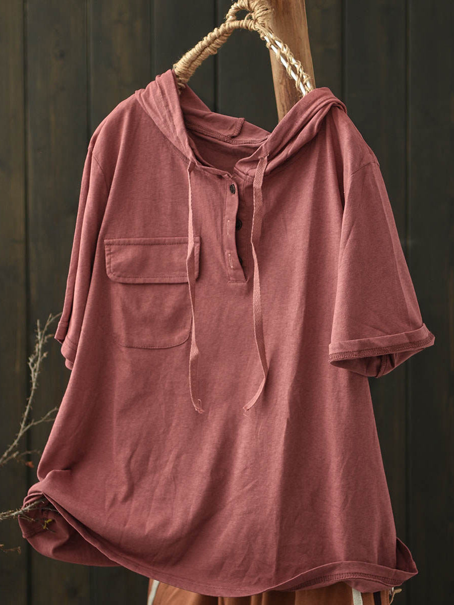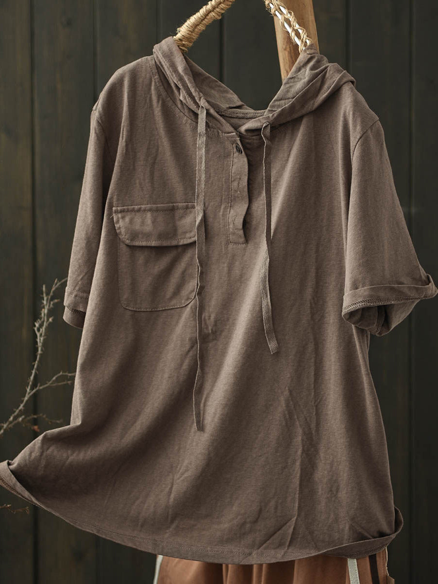 Women Summer Casual Pure Color Cotton Hoodie