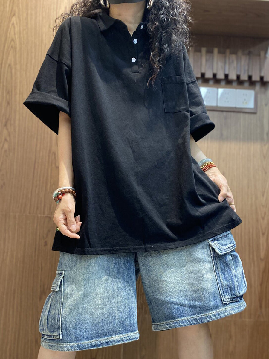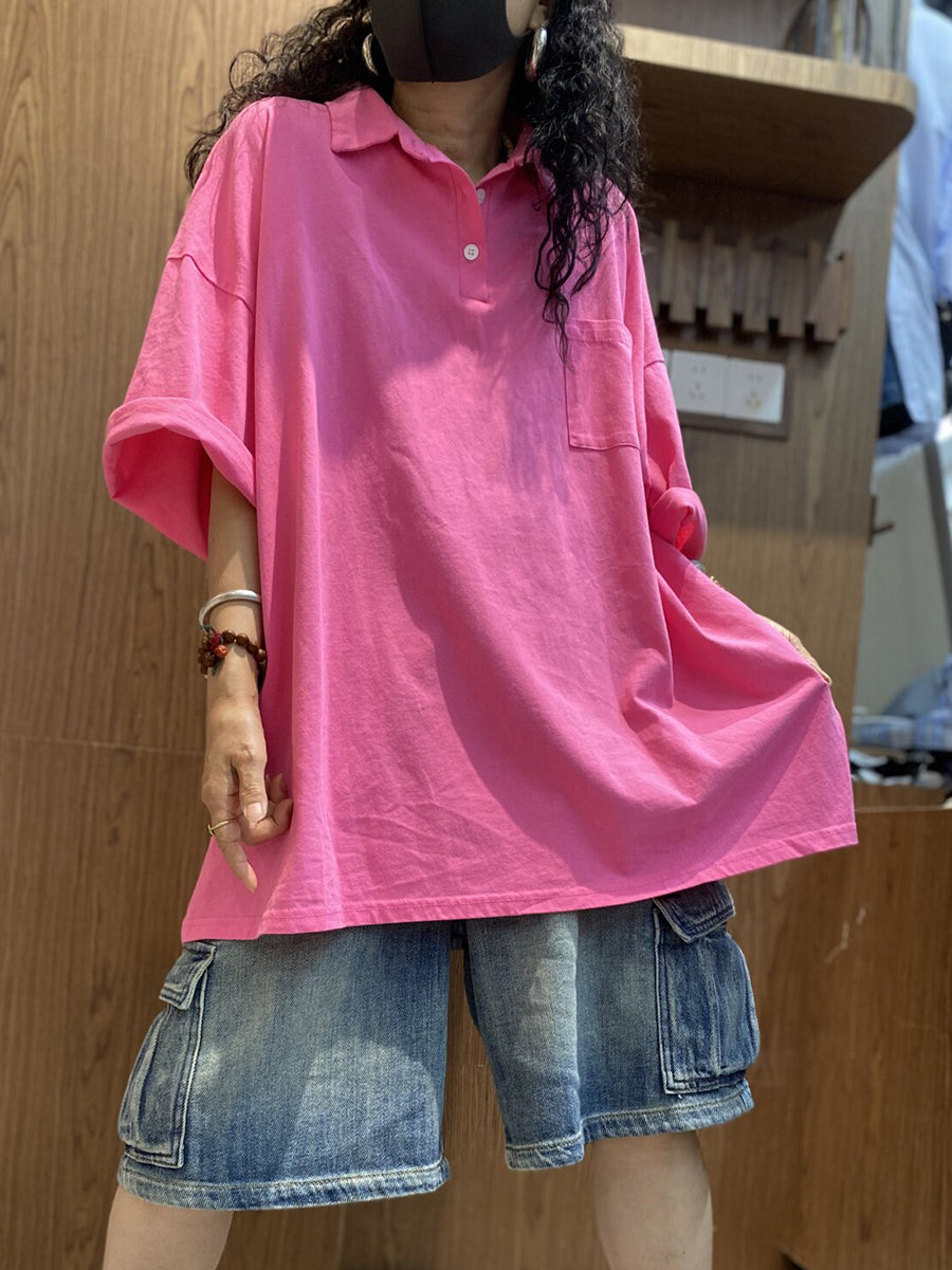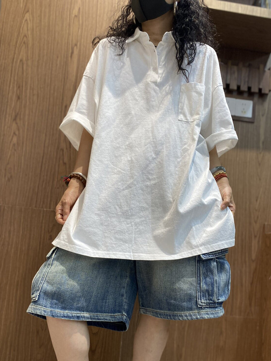 Women Summer Casual Pure Color Cotton Polo Shirt