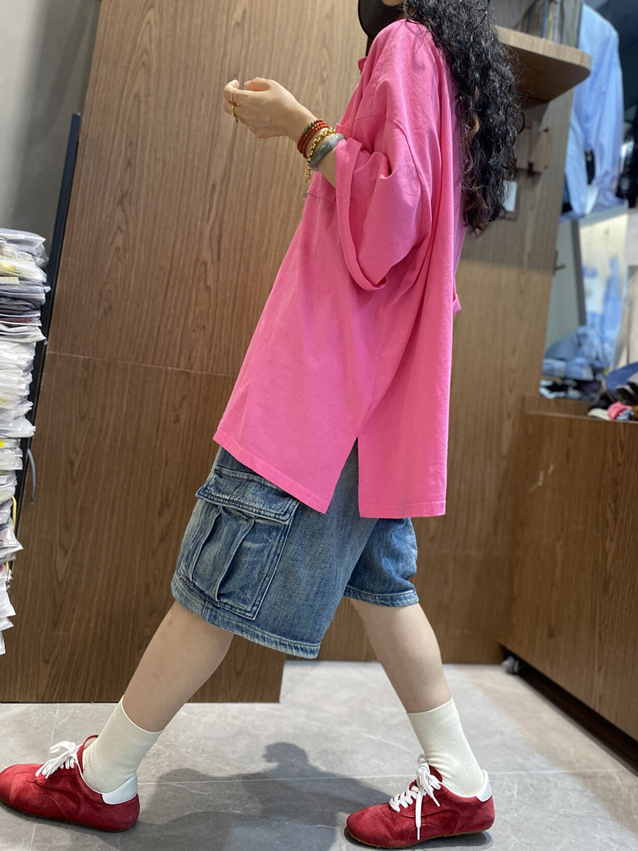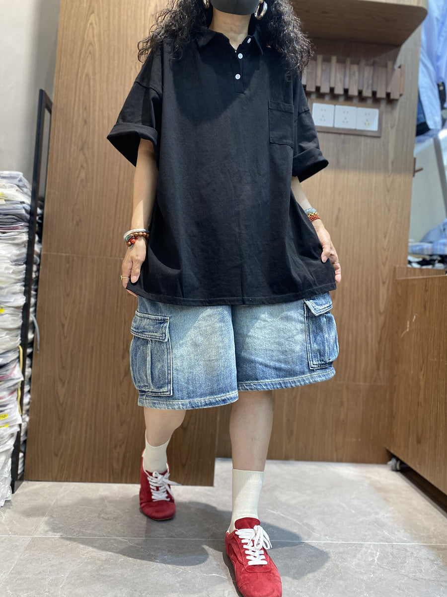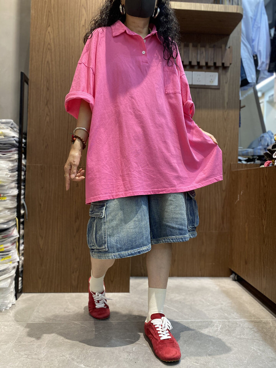Women Summer Casual Pure Color Cotton Polo Shirt