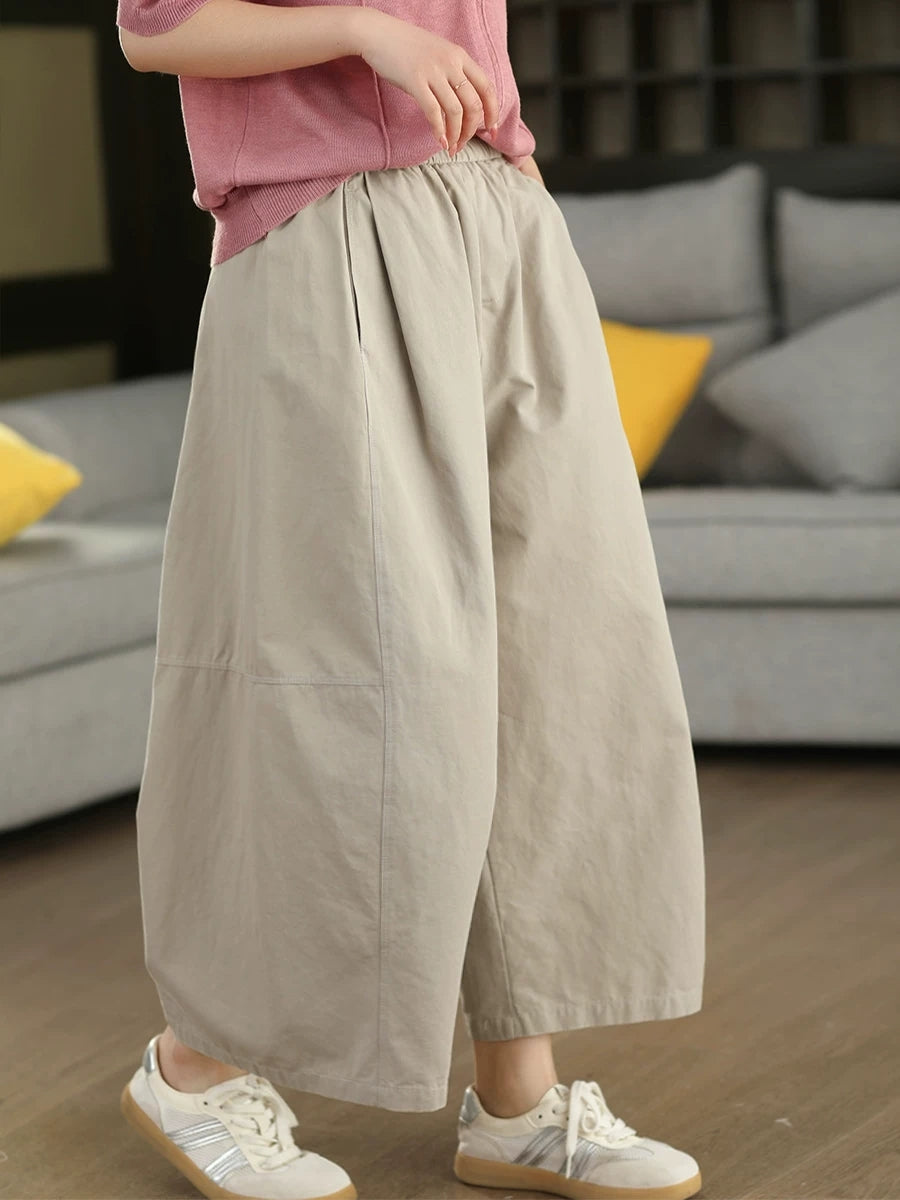 Women Summer Casual Pure Color Wide-leg 100%Cotton Pants
