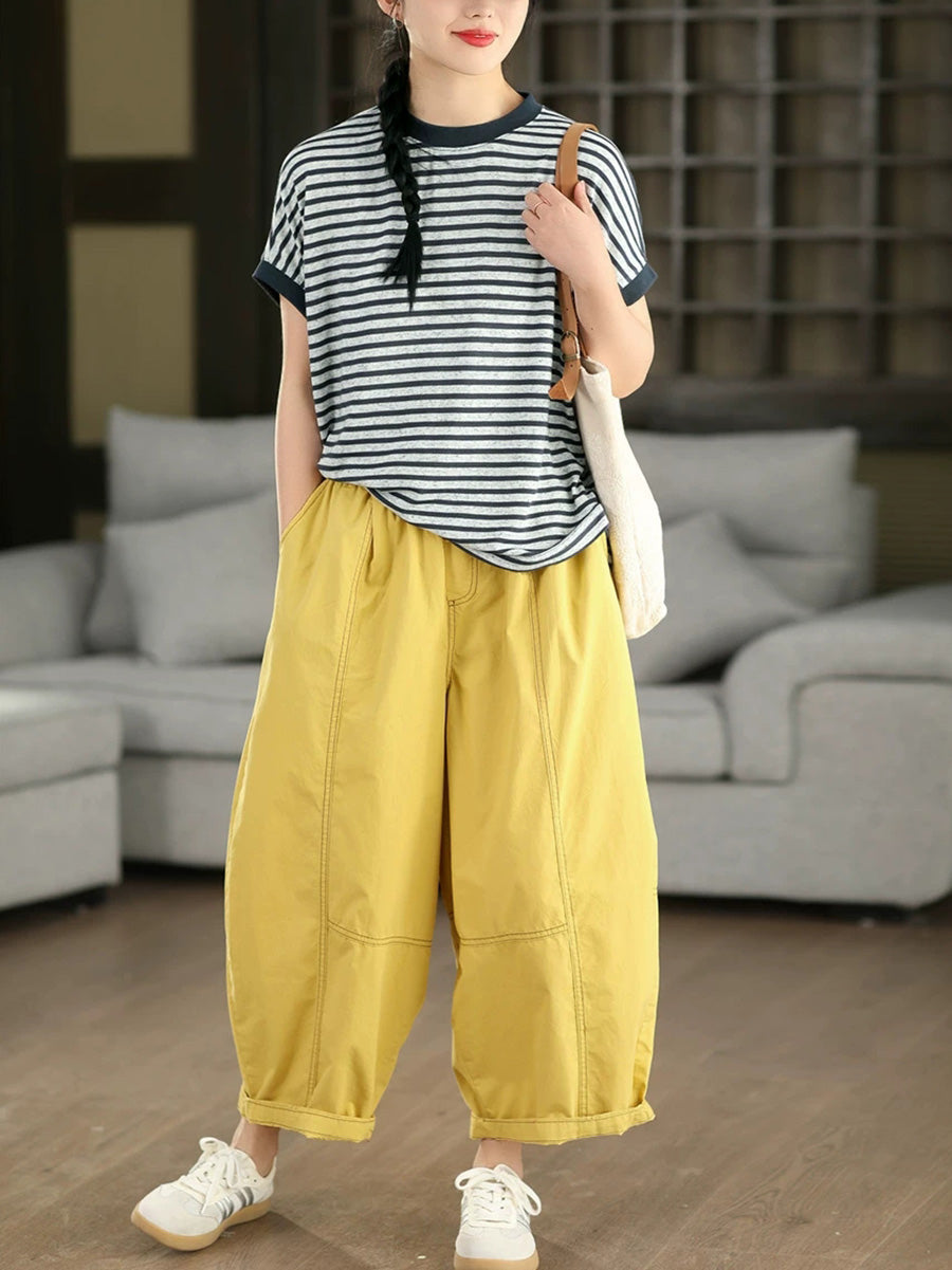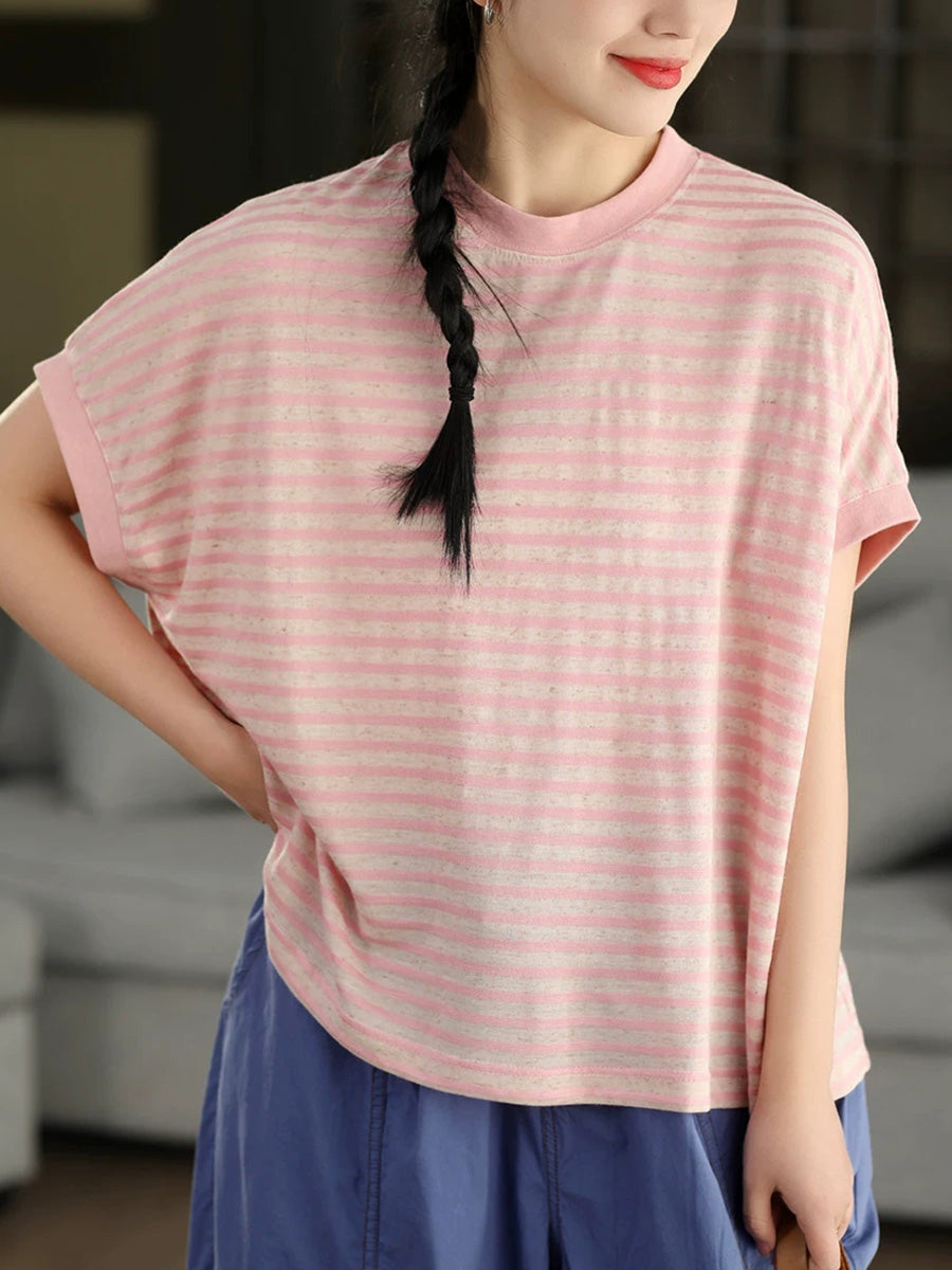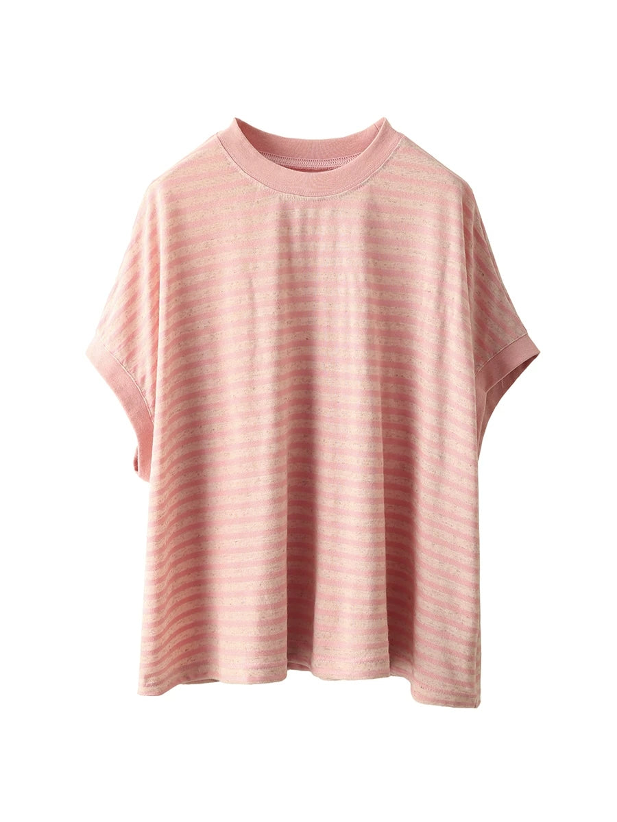 Women Summer Casual Stripe O-Neck Shirt