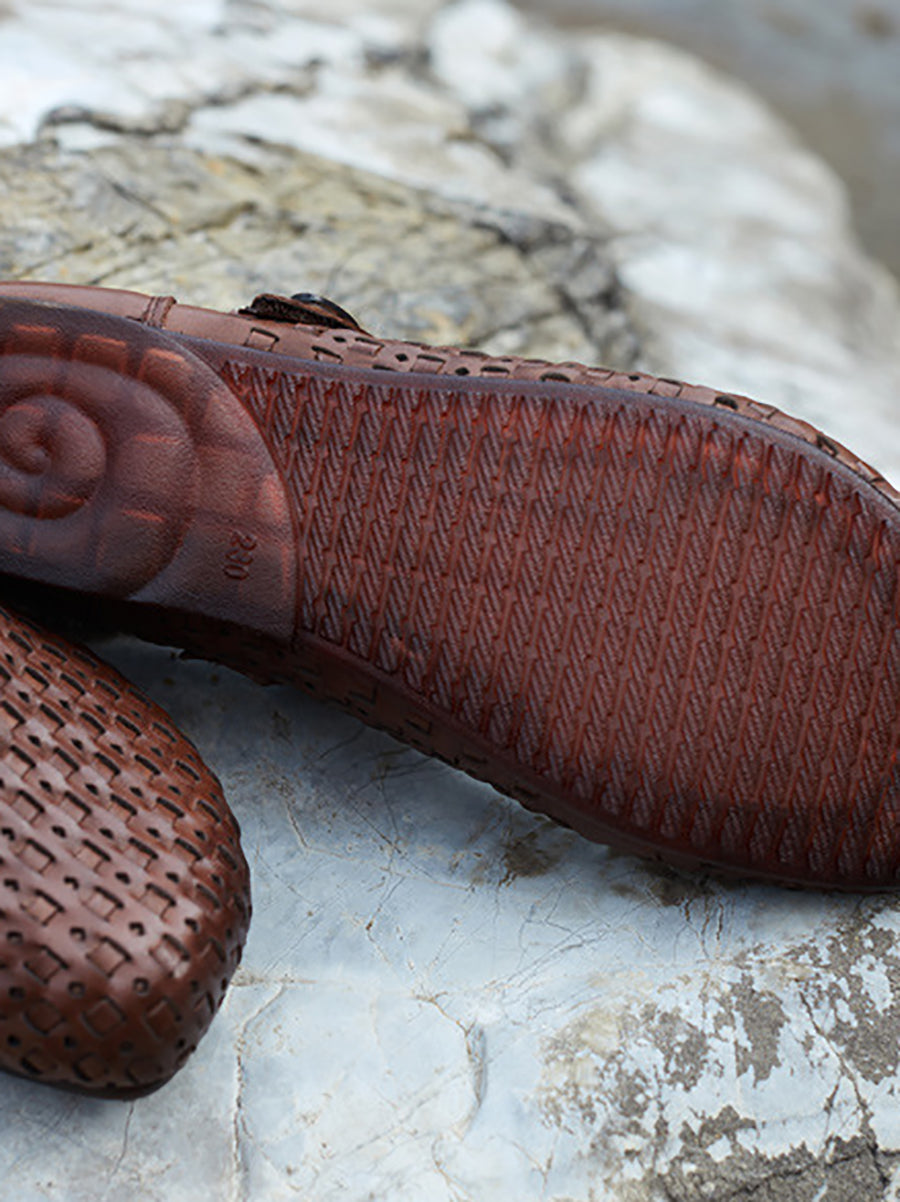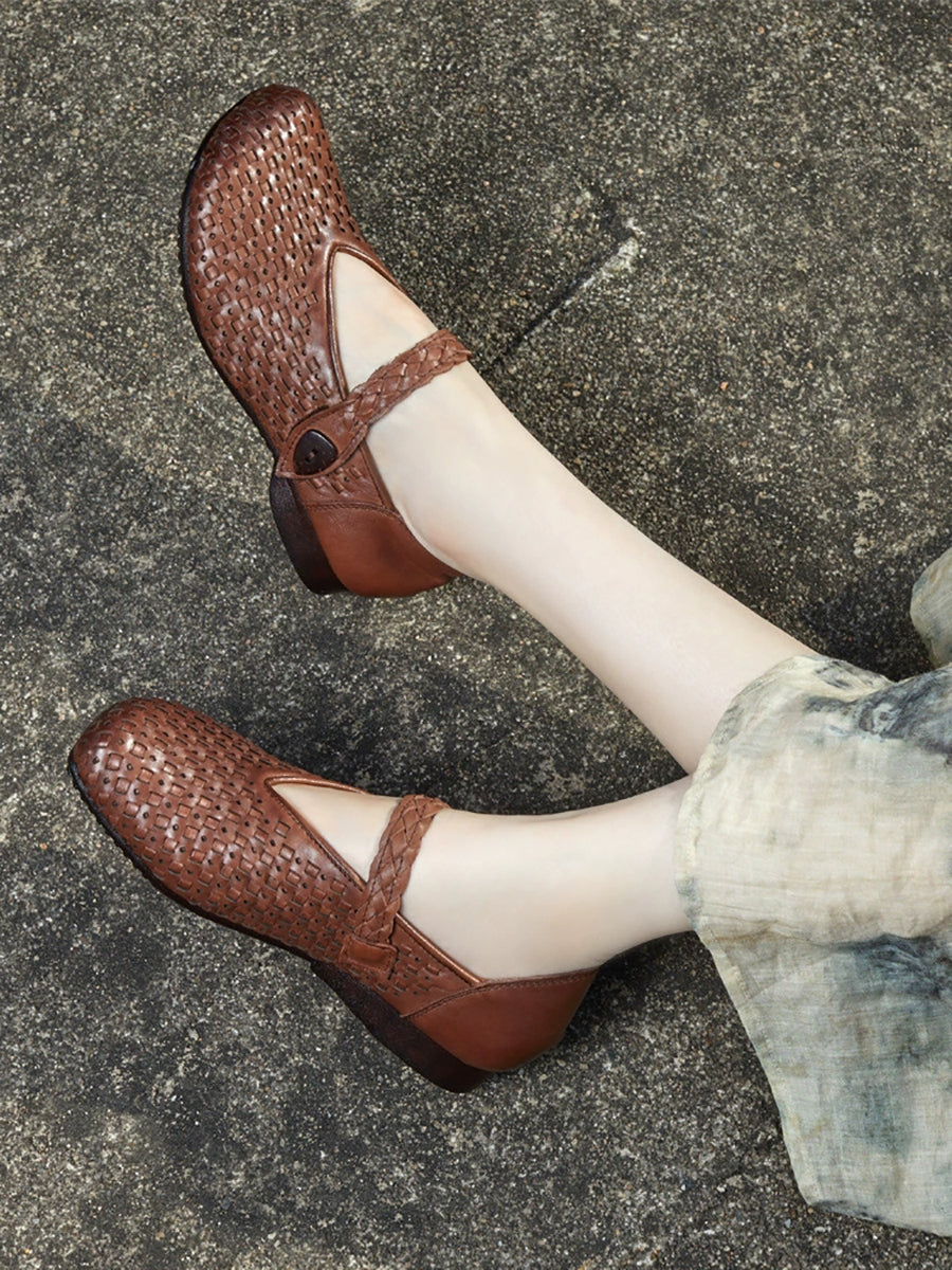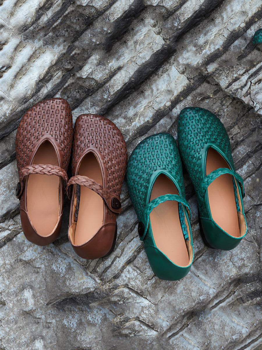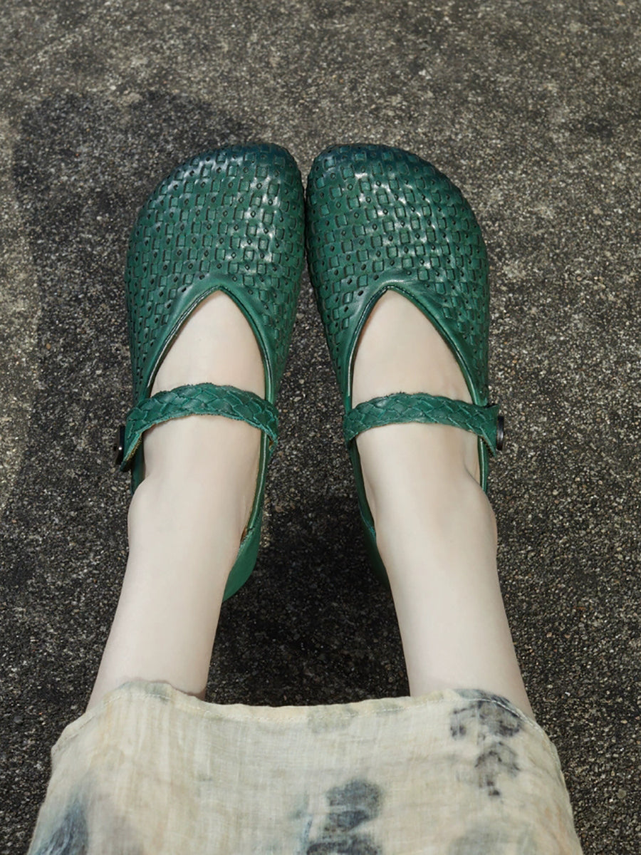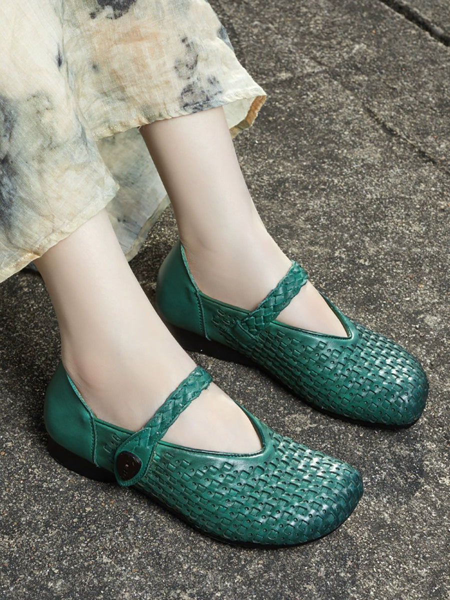 Women Summer Genuine Leather Weave Flat Shoes