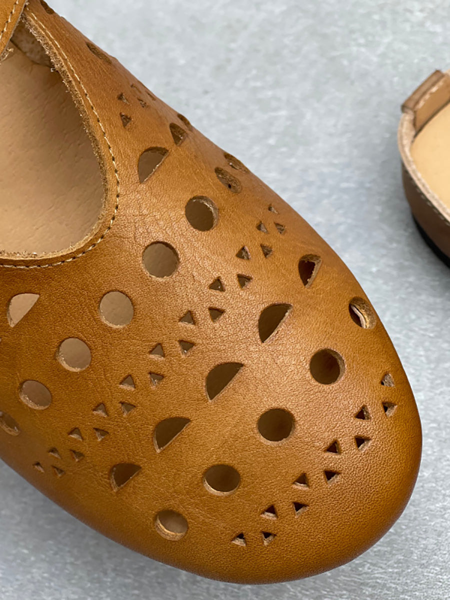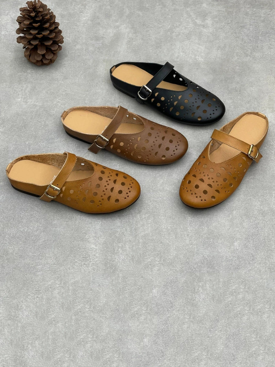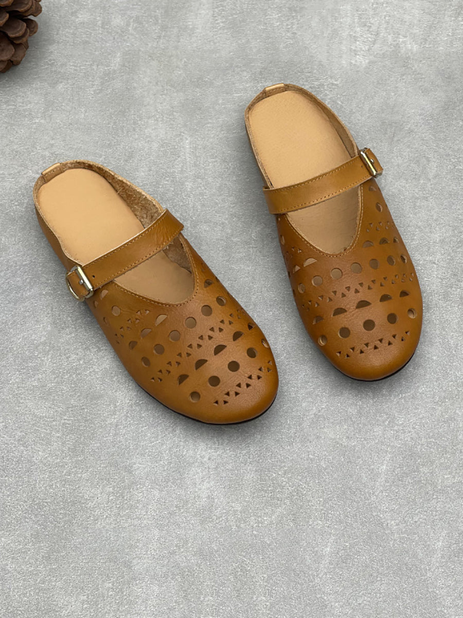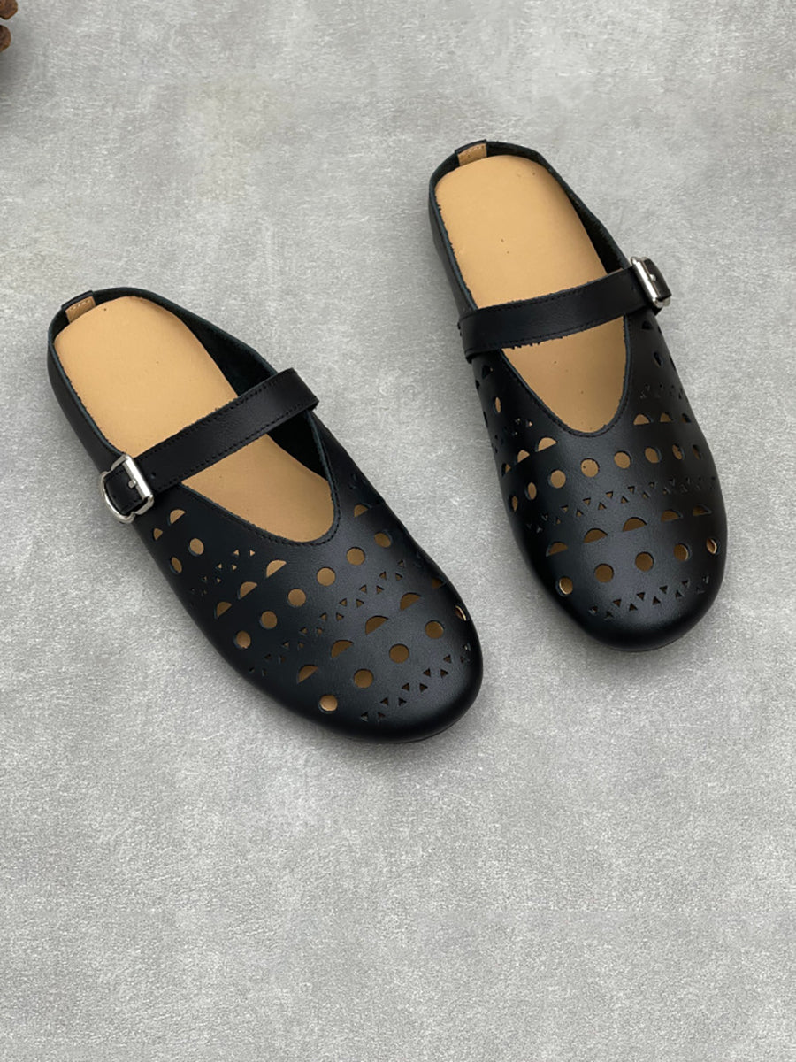 Women Summer Hollow Out Leather Flat Slippers