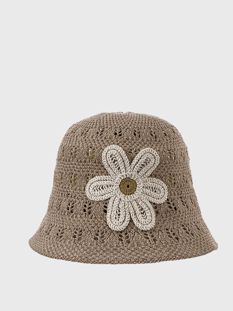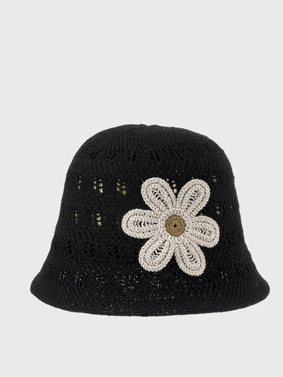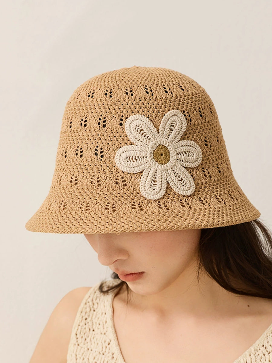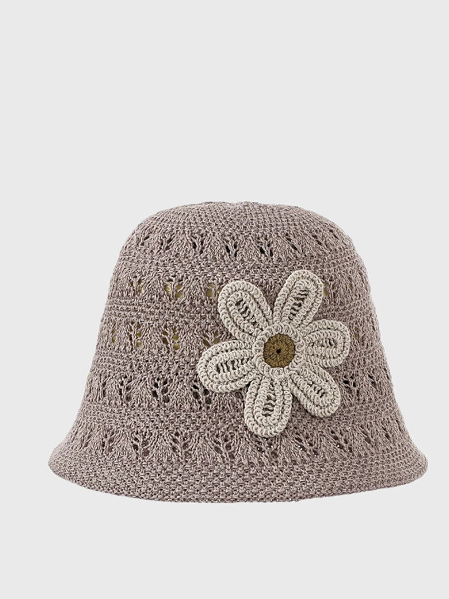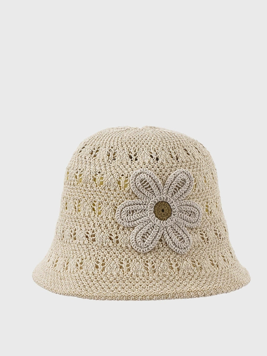 Women Summer Knitted Flower Bucket Hat