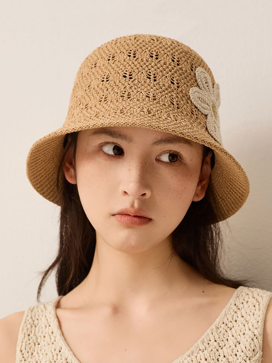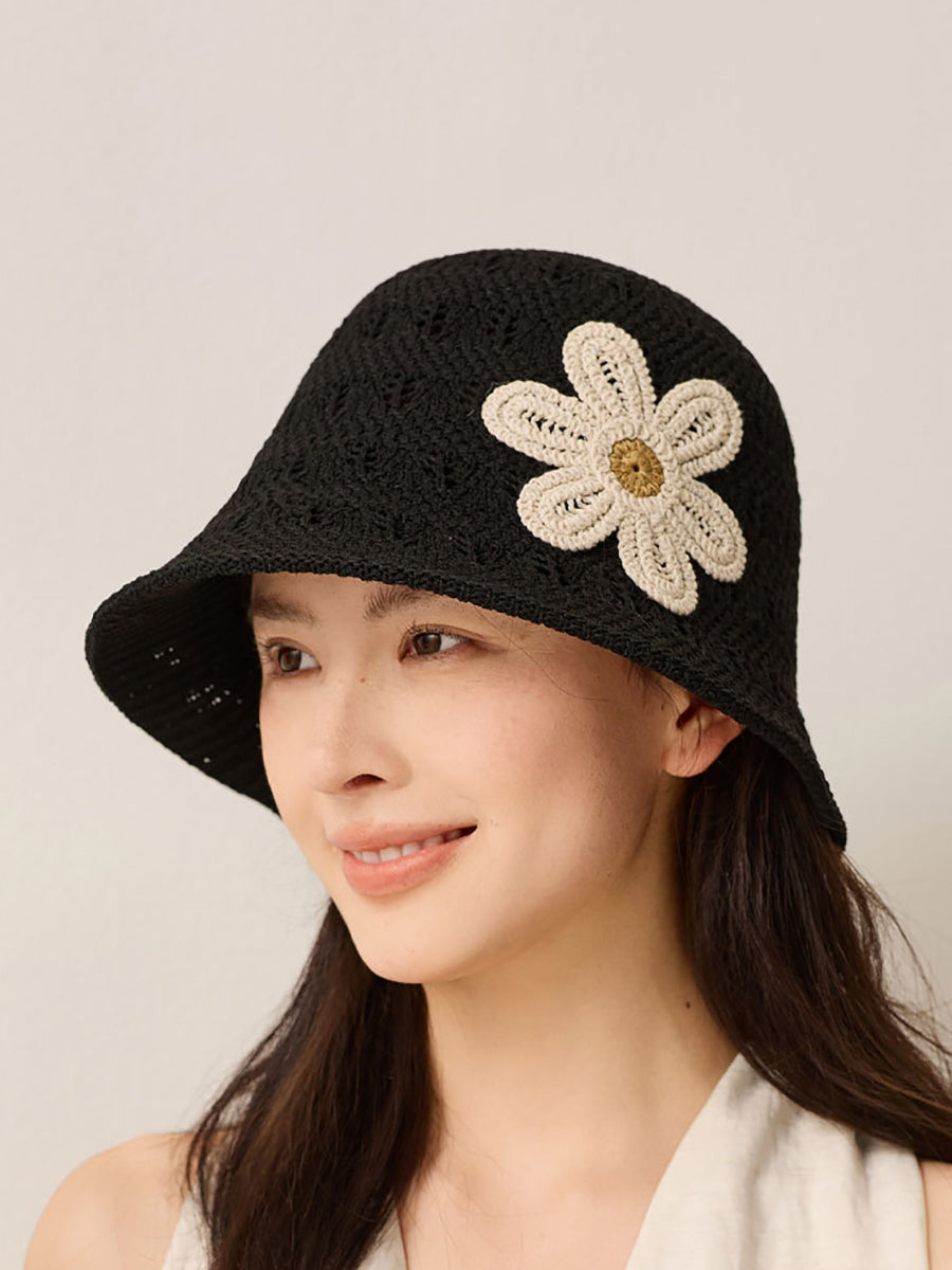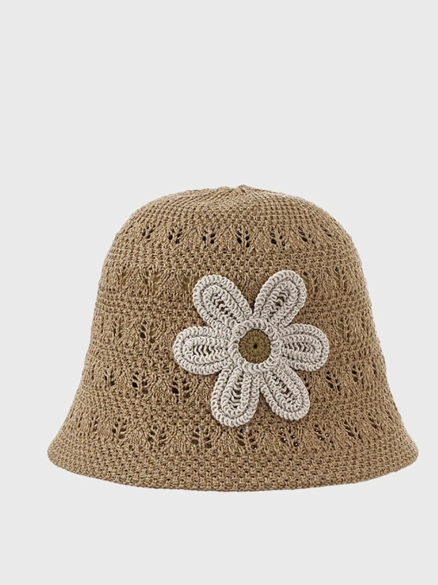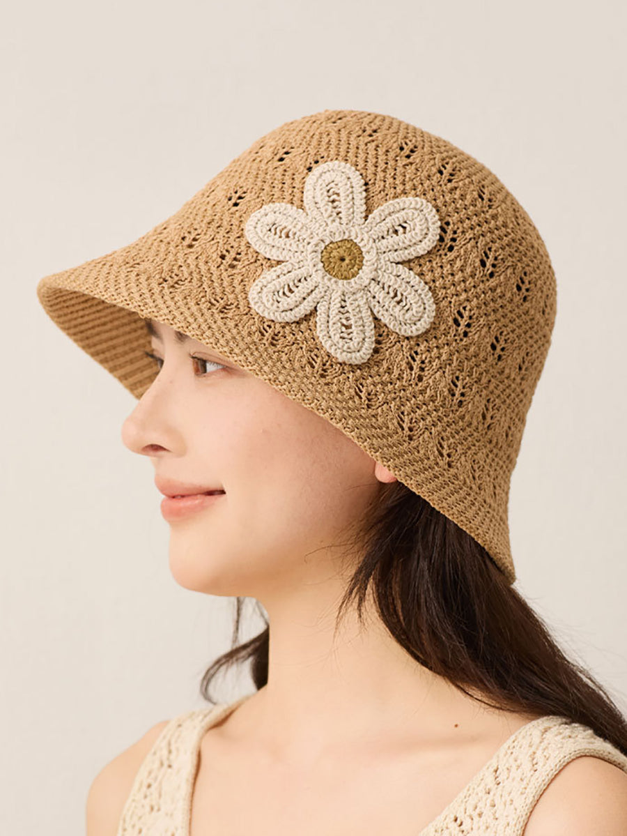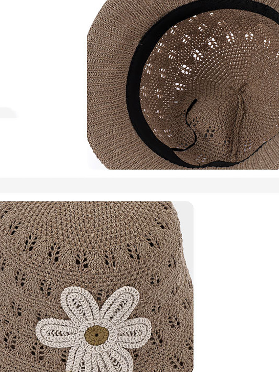 Women Summer Knitted Flower Bucket Hat