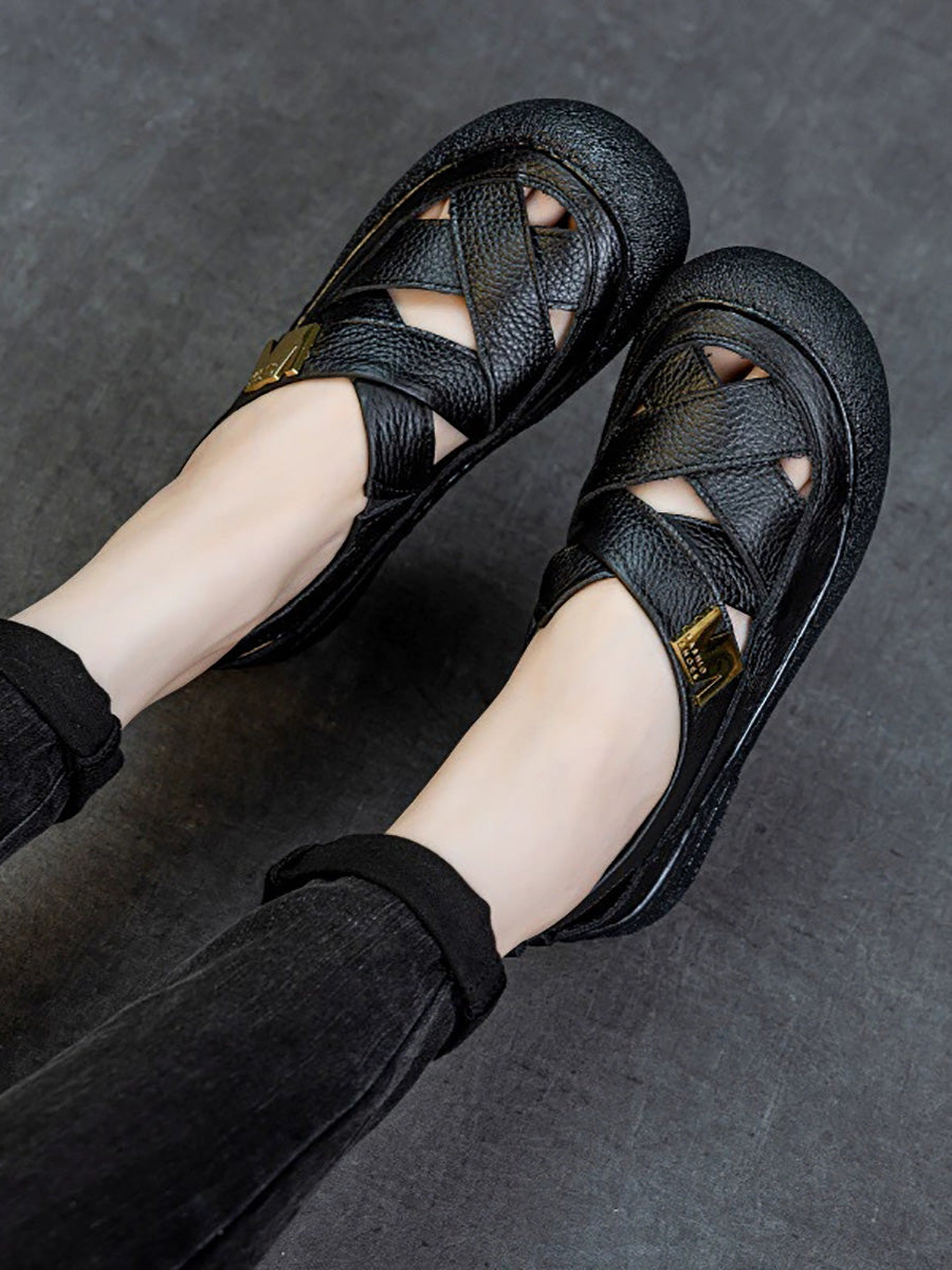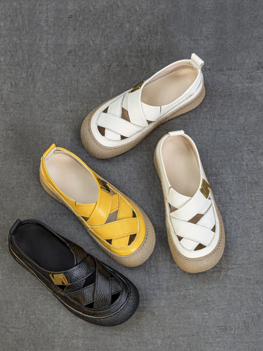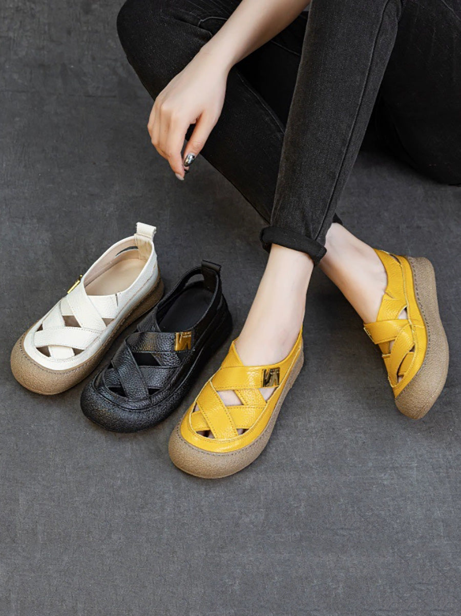 Women Summer Leather Weave Flat Shoes