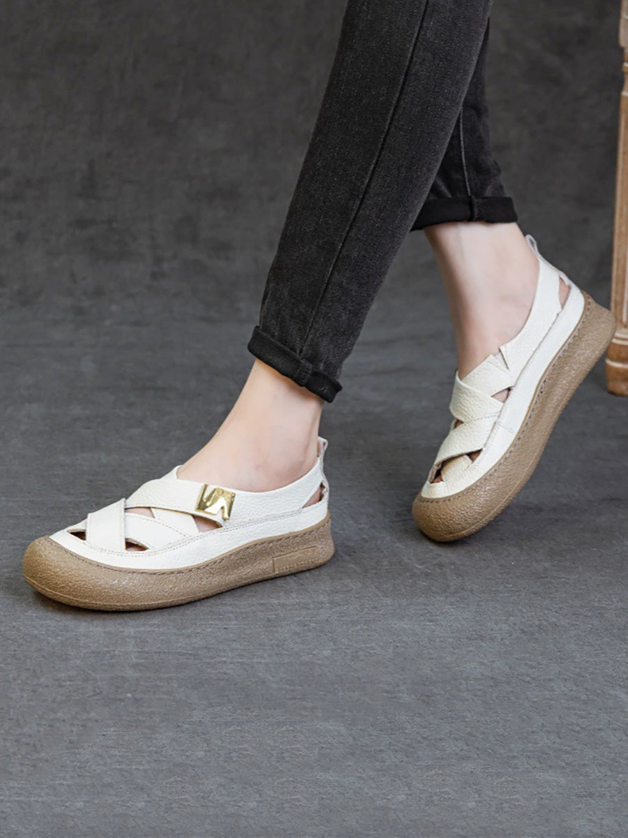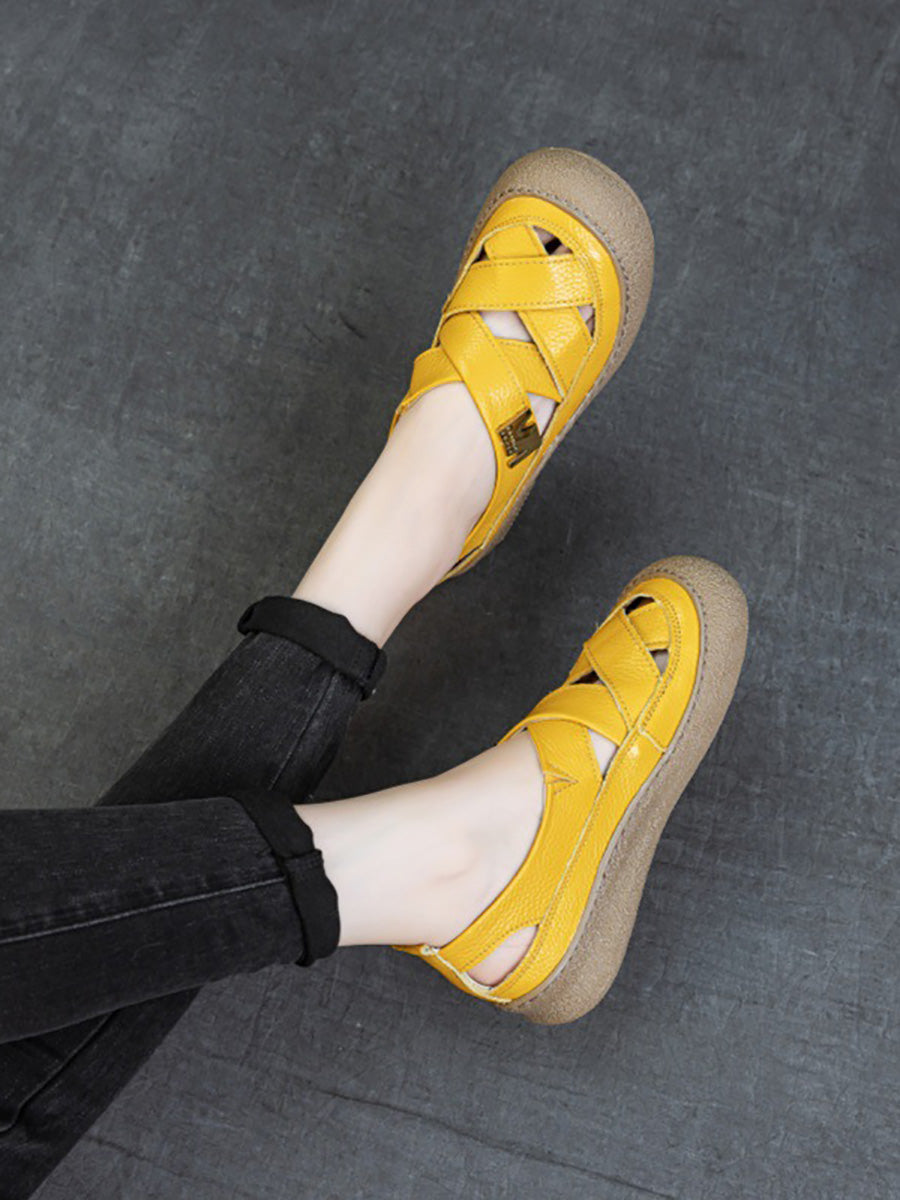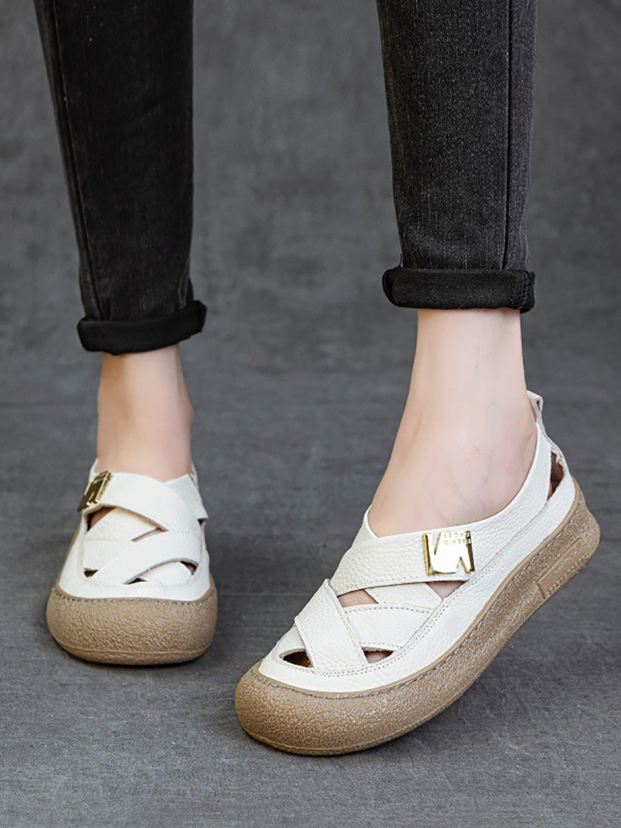 Women Summer Leather Weave Flat Shoes