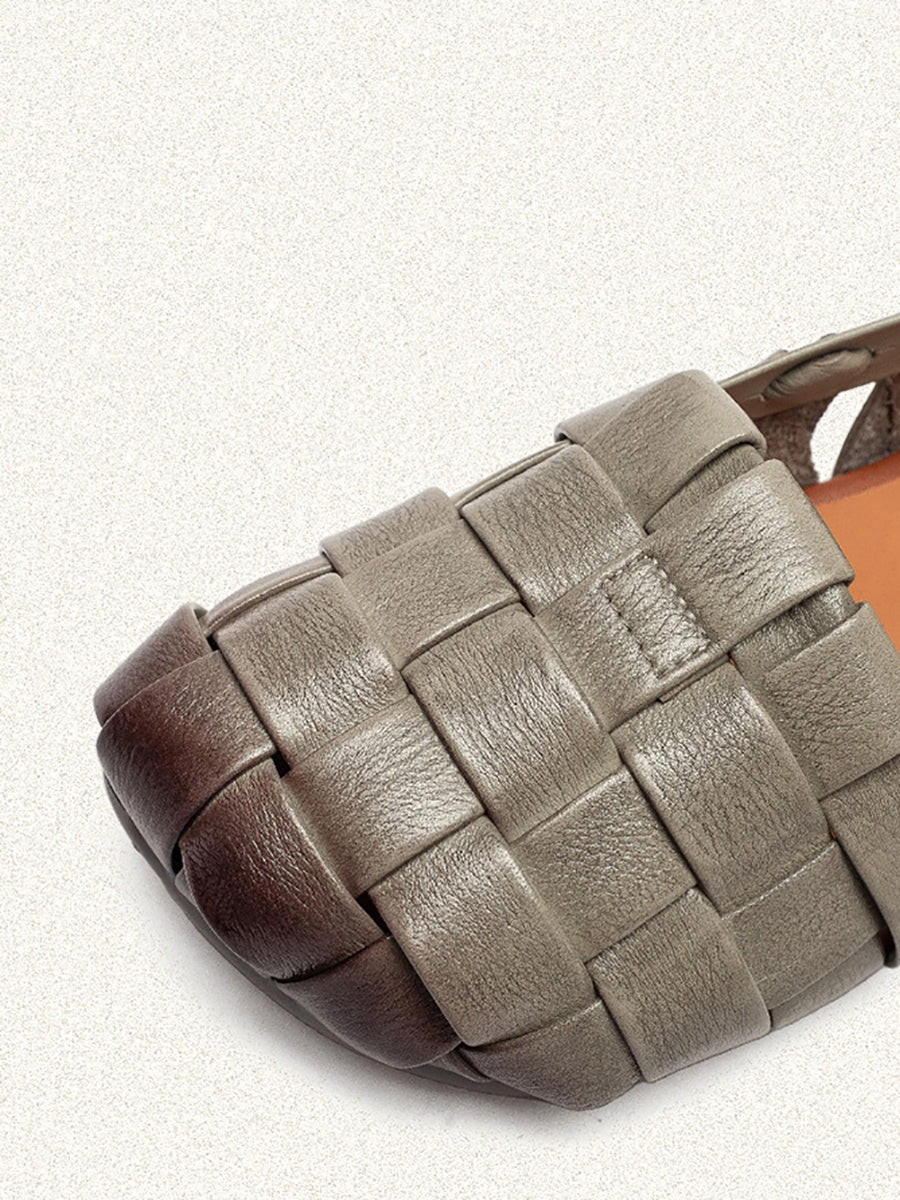 Women Summer Leather Weave Low Heel Sandals