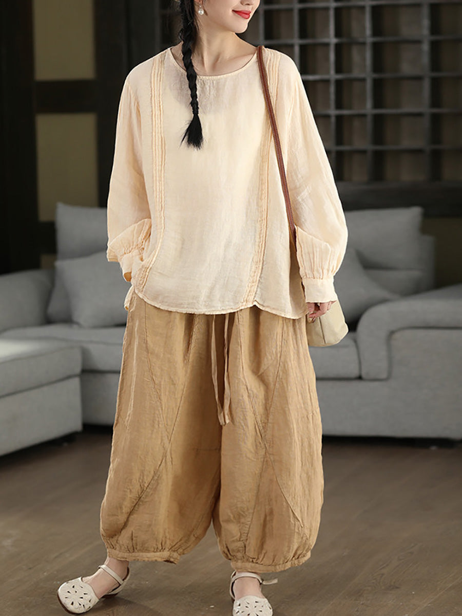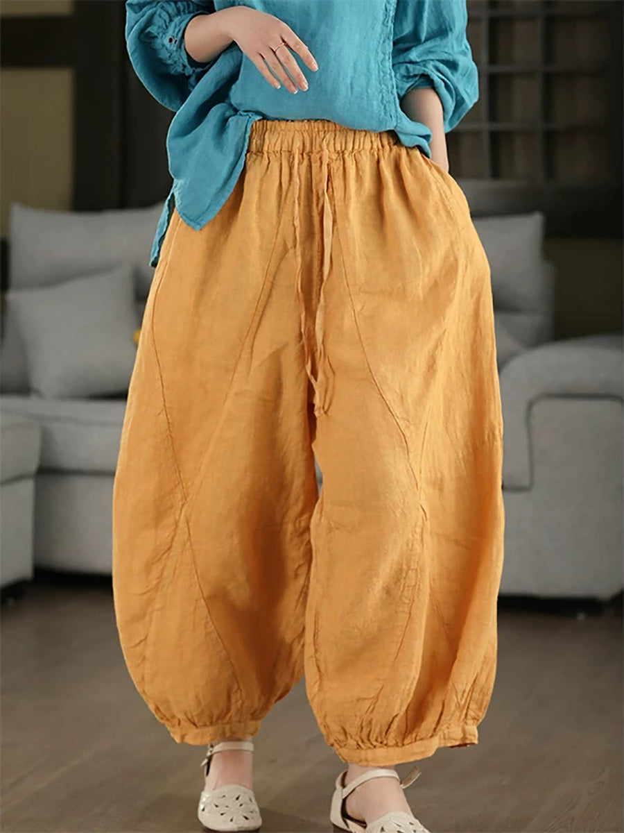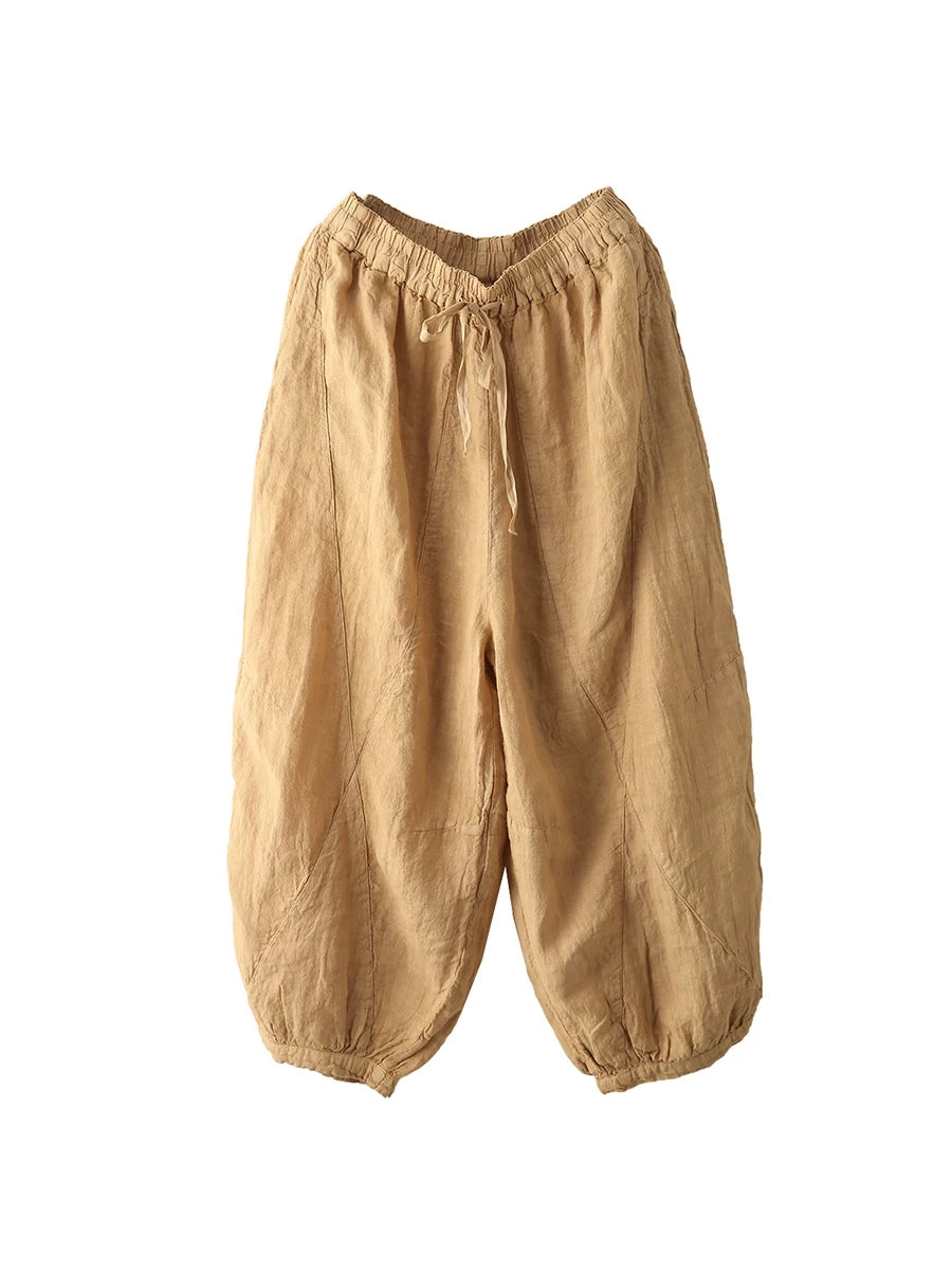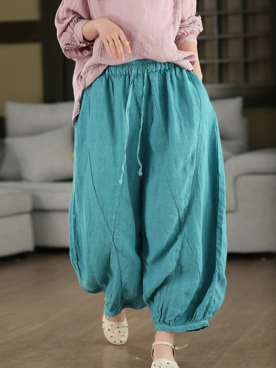 Women Summer Retro Pure Color 100%Linen Harem Pants