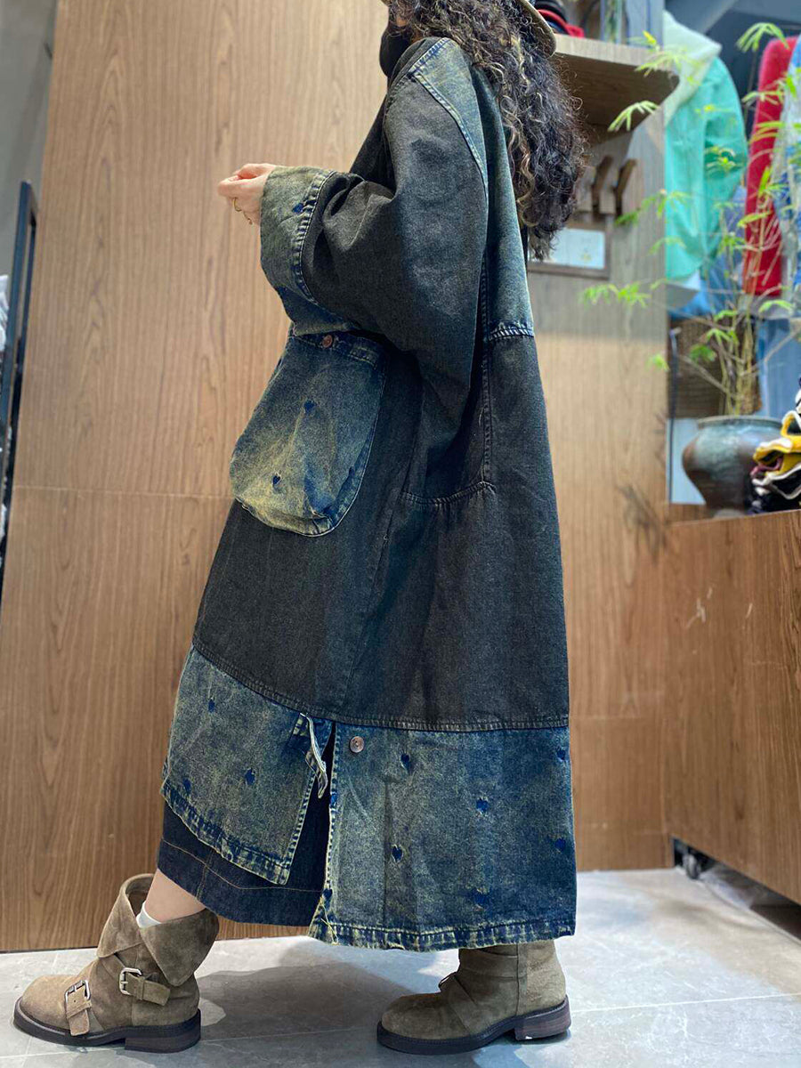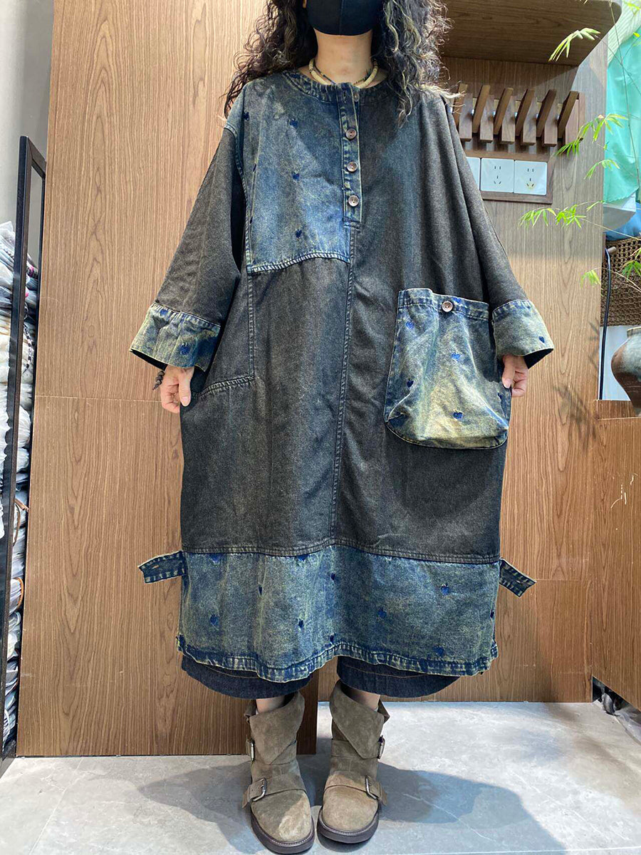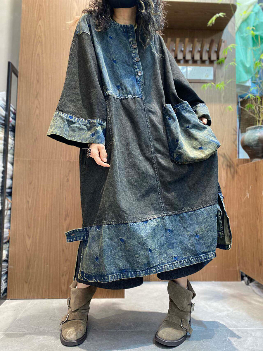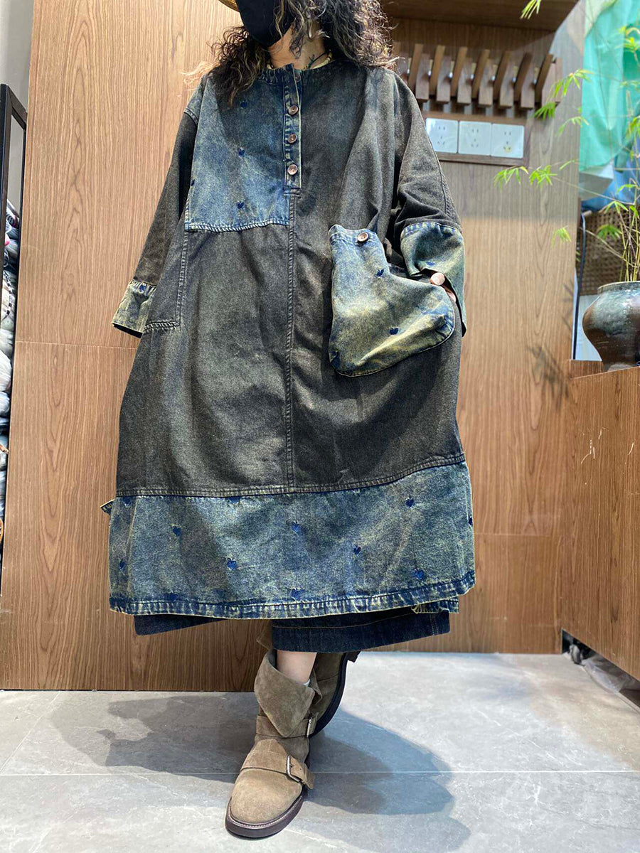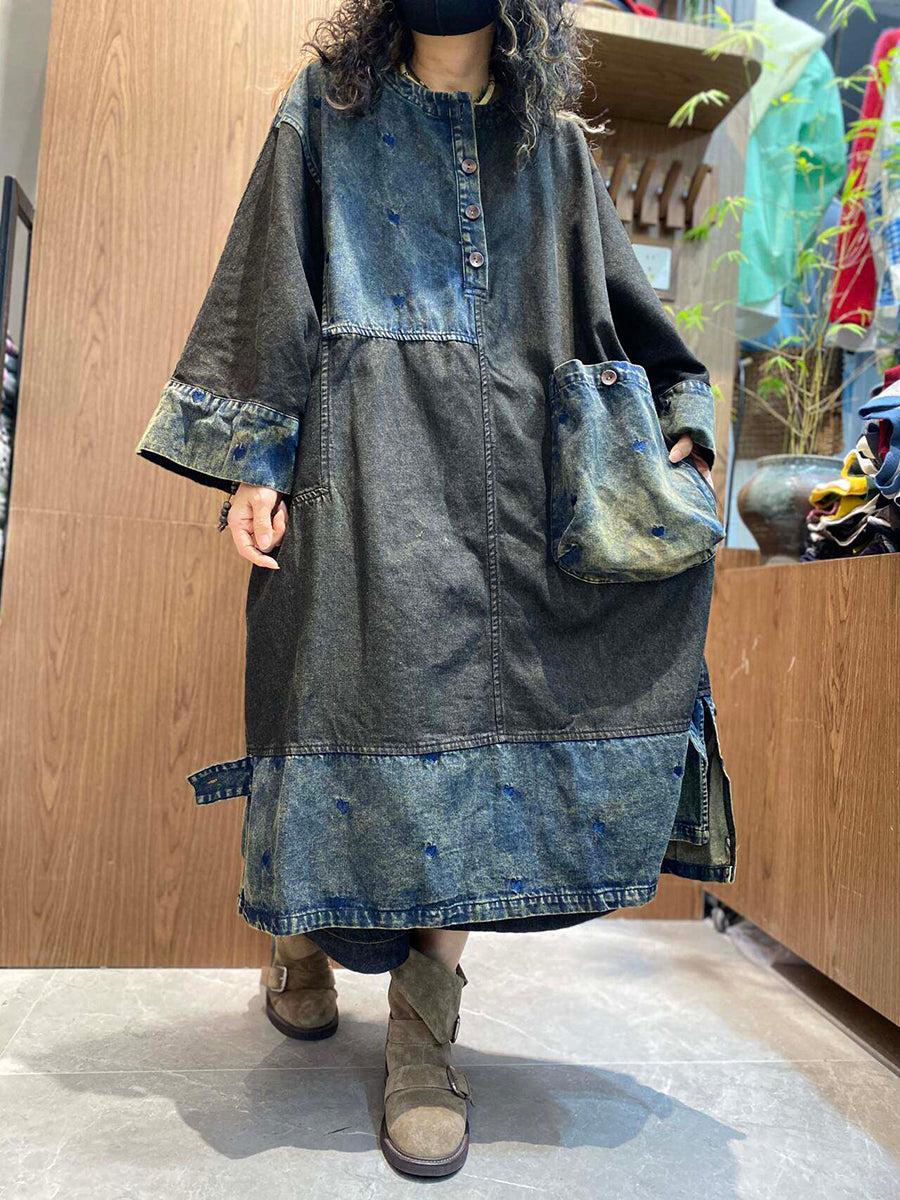 Women Summer Vintage Patchwork Denim O-Neck Dress