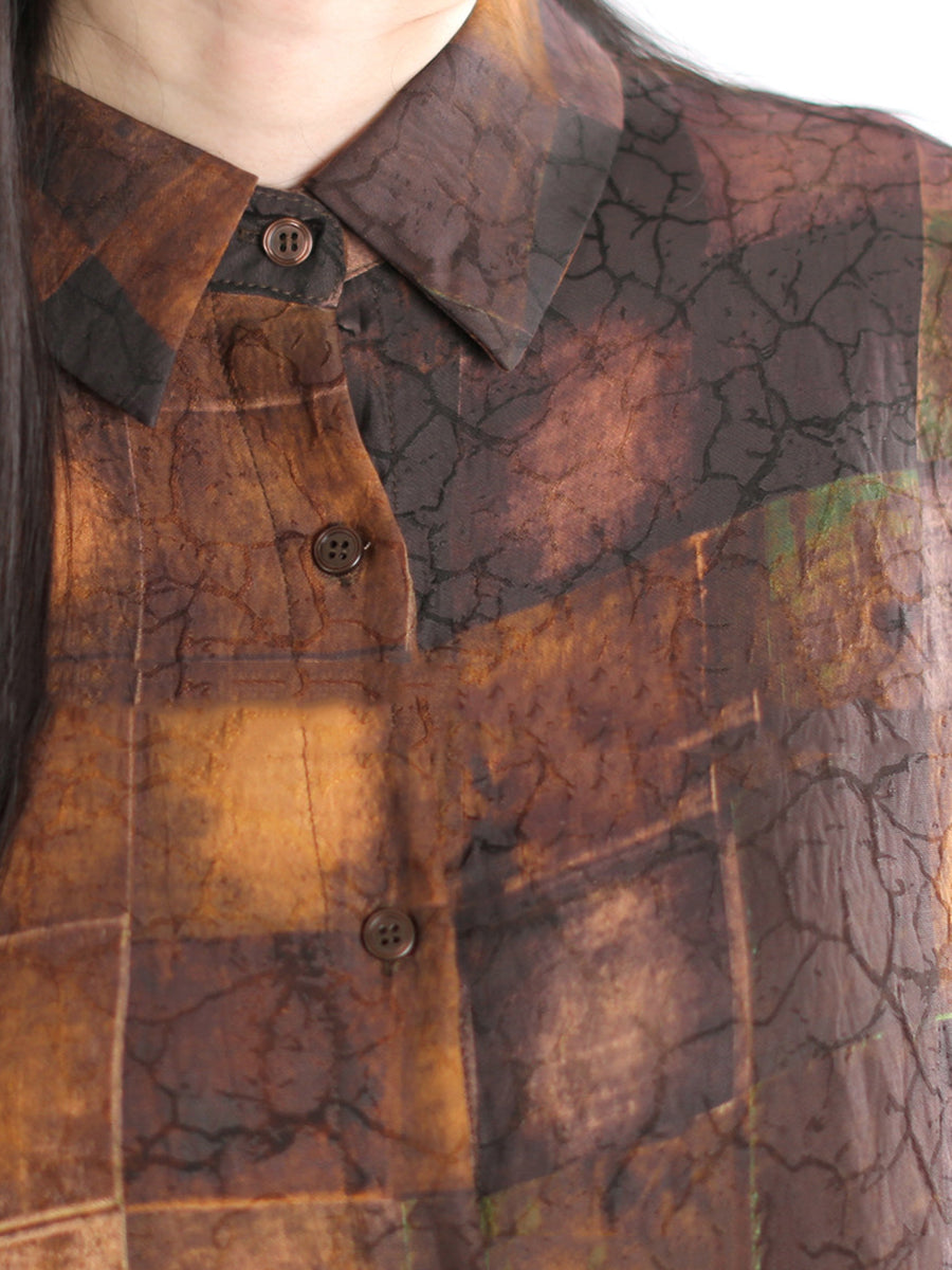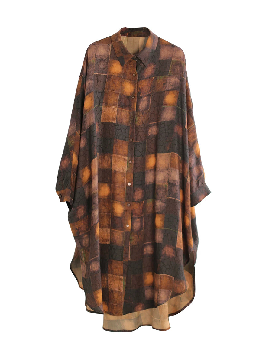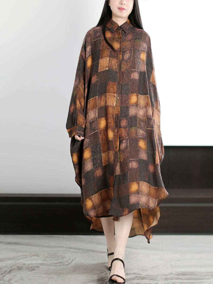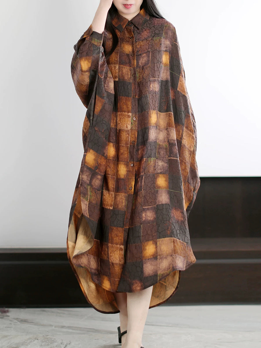 Women Summer Vintage Plaid Turn-down Collar Shirt Dress