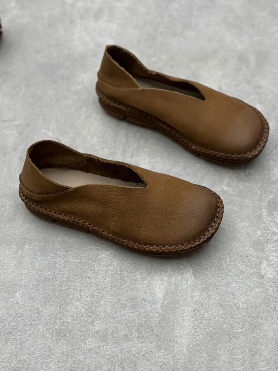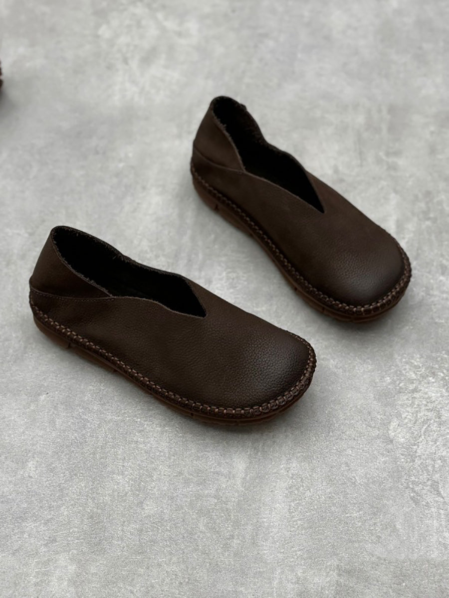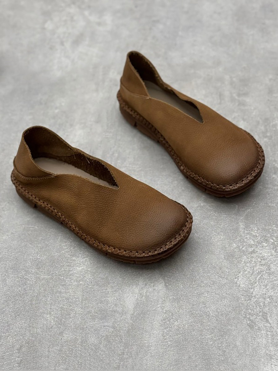 Women Summer Vintage Solid Leather Soft Flat Shoes